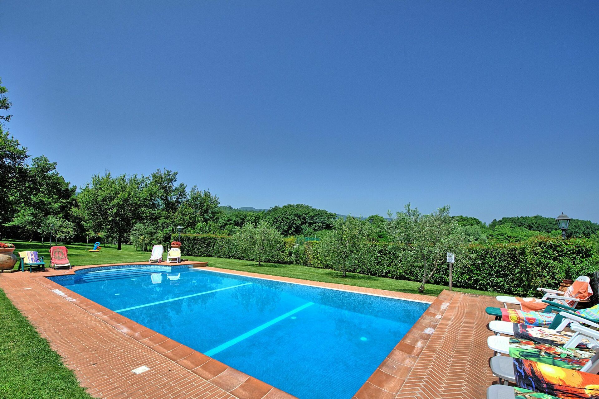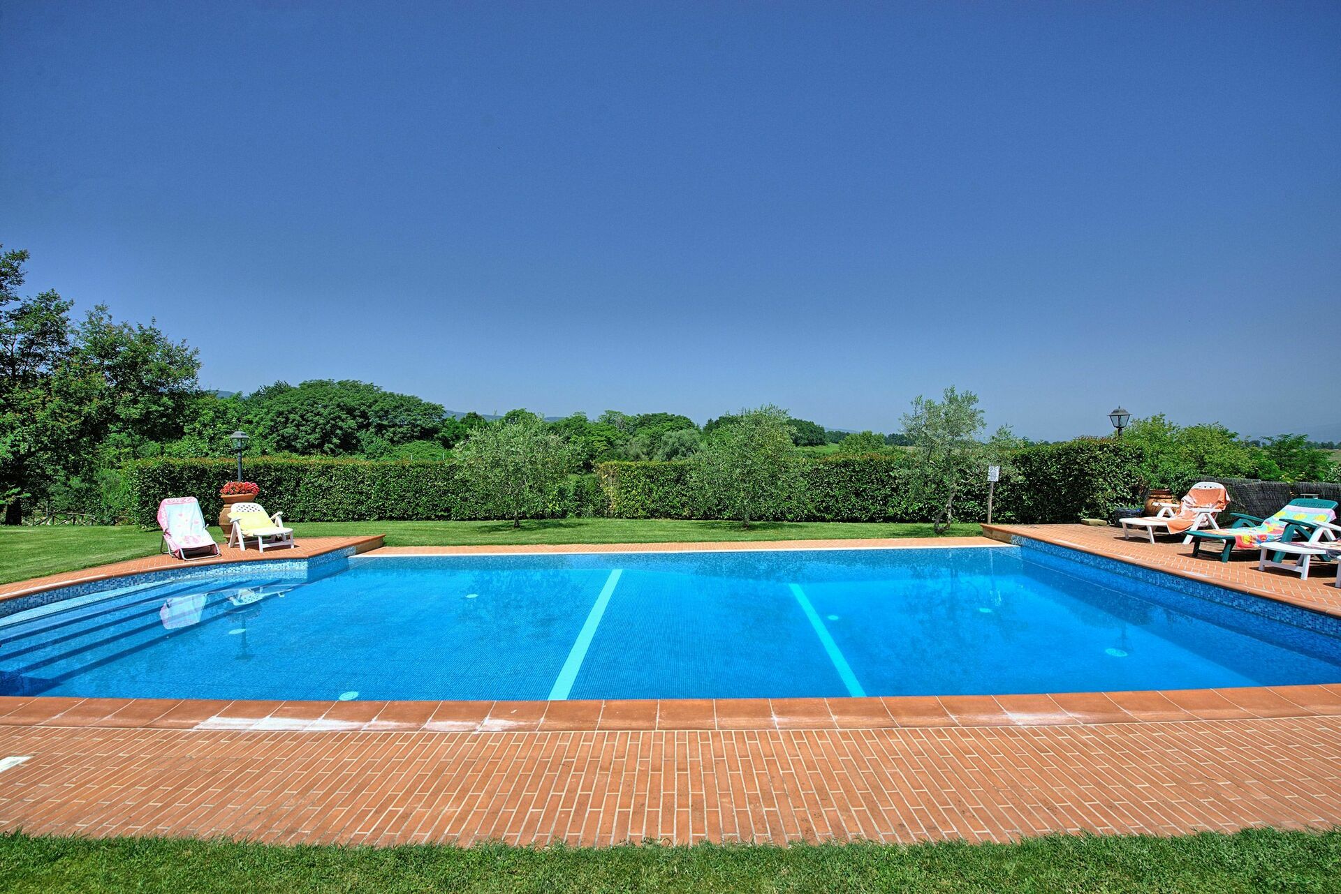 Am großen Swimmingpool (12 x 6 m, Mindesttiefe 1,1 m, Höchsttiefe 2,1 m) können die warmen Sommertage der Toskana in vollen Zügen genossen werden. Im Garten gibt es zudem einen Bereich für Tennis, Basketball oder Volleyball, der ausschließlich den Gästen zur Verfügung steht.