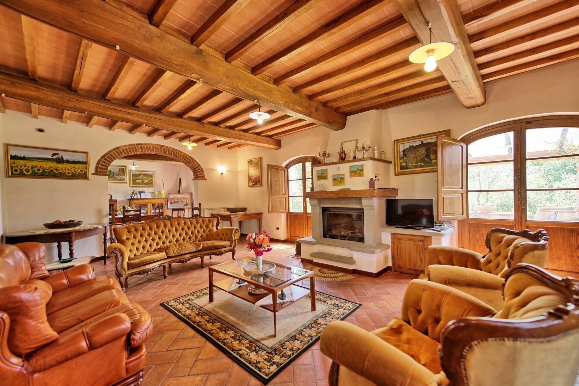 IIm Herzen der Toskana, am Rande des Chianti, befindet sich dieses wunderschöne, sorgfältig renovierte Landhaus. Geschmackvoll eingerichtet und praktisch ausgestattet, bietet es höchsten Wohnkomfort. Das Haus thront auf einer Anhöhe, umgeben von grüner Natur, und ermöglicht einen atemberaubenden Blick über das Arnotal. Es ist zu jeder Jahreszeit das ideale Feriendomizil für kurze oder längere Aufenthalte.
