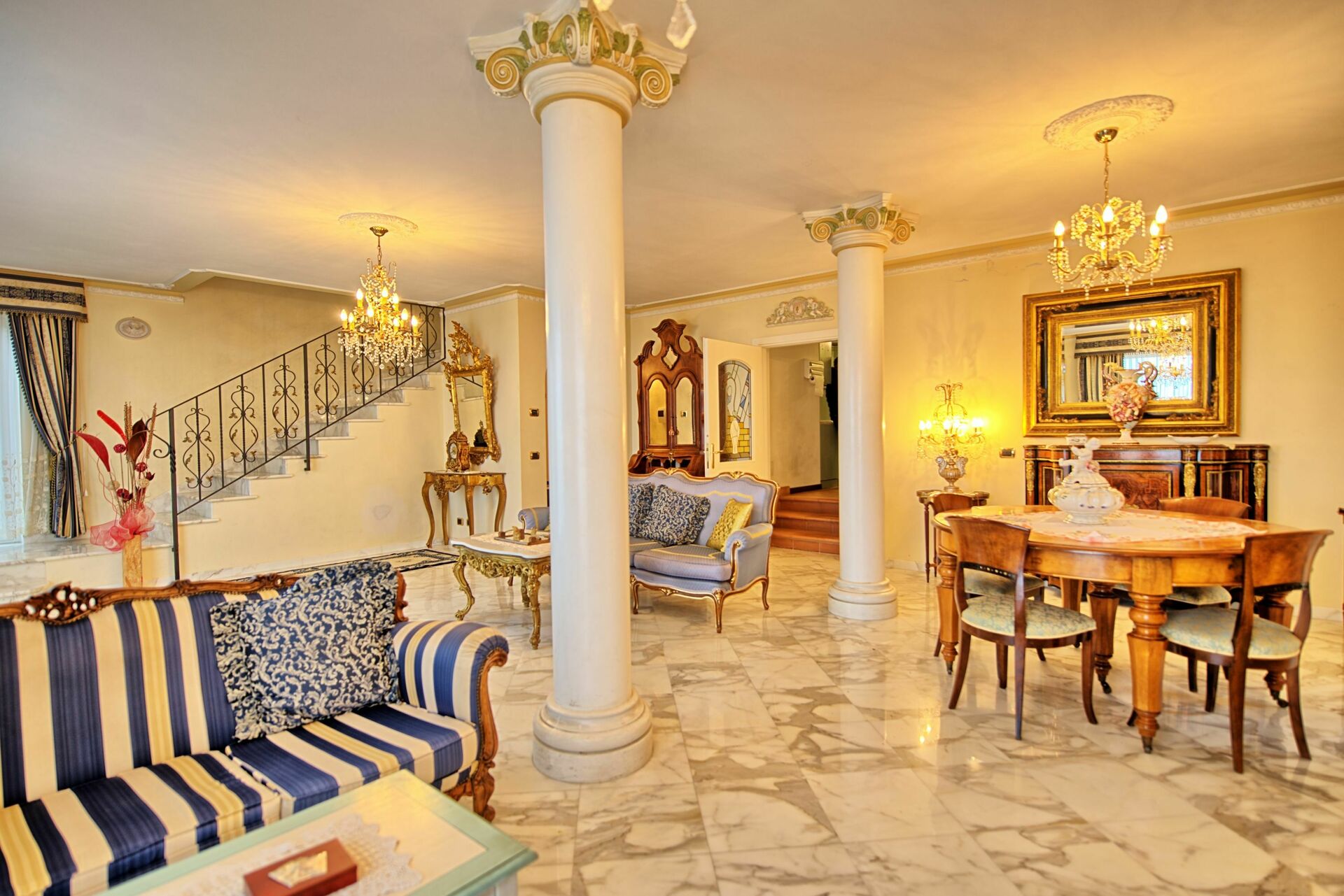 Der Innenbereich ist luxeriös ausgestattet mit Mormorböden und grossen Panorama- Fenstern, teilweise mit antiken Möbeln und allem modernen Komfort versehen (Klimaanlage).
