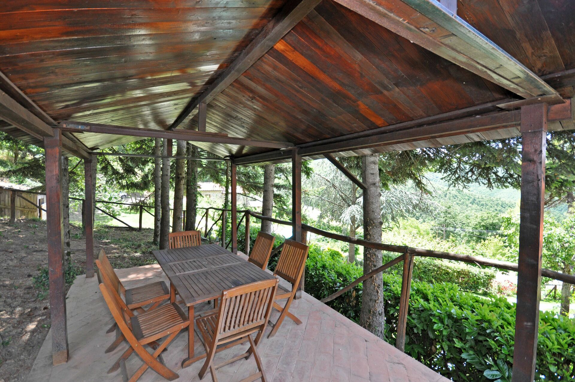 - Garten und eine Veranda, die zum draussen essen ausgestattet ist
