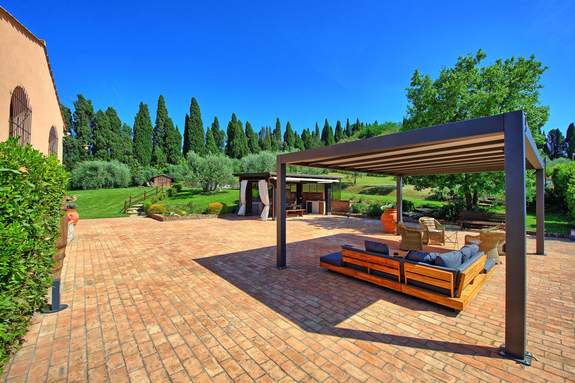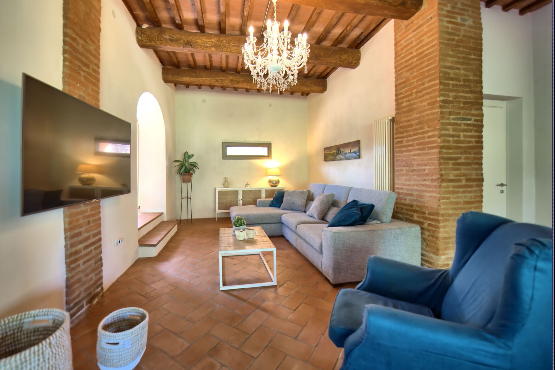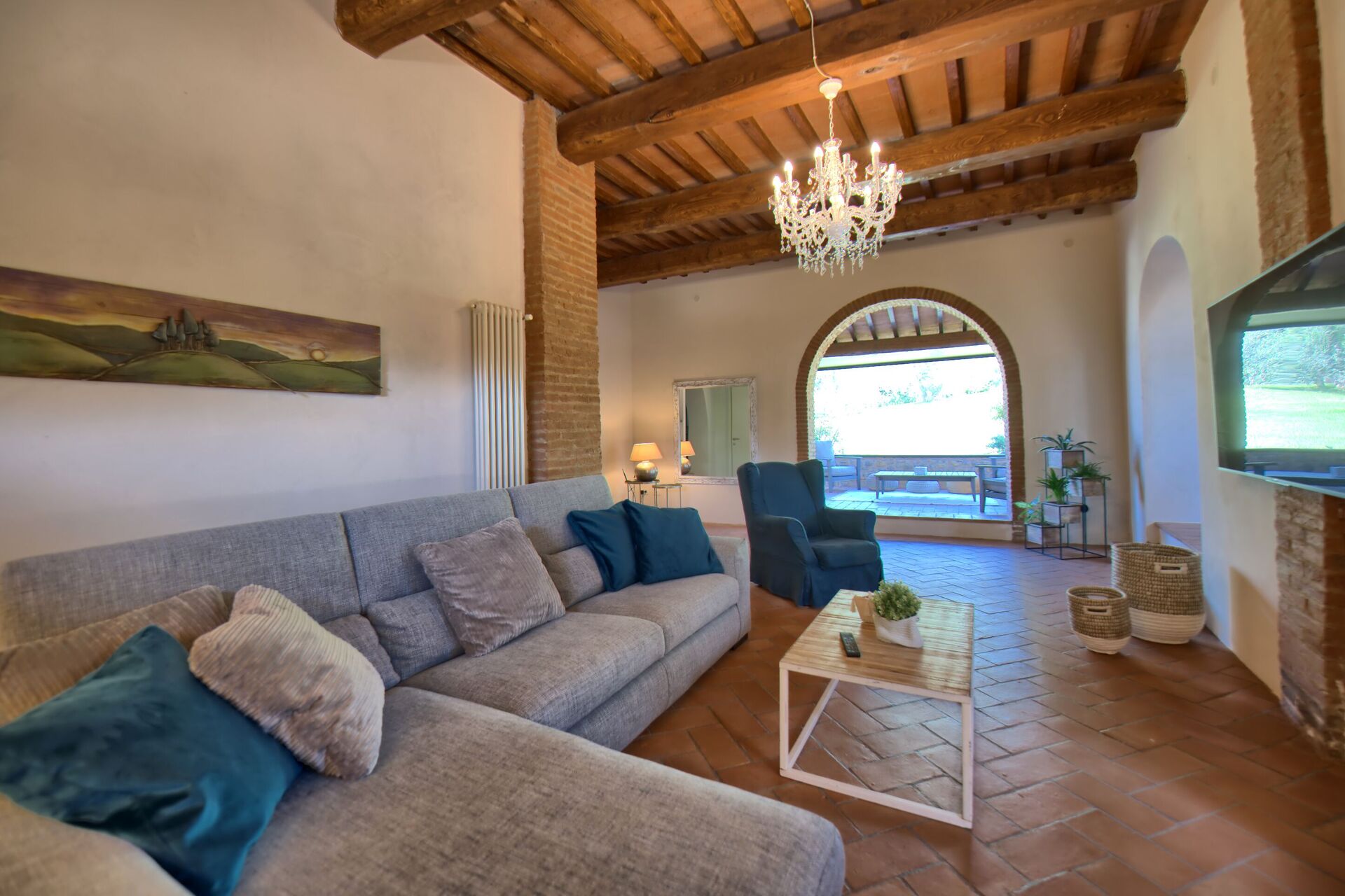 Im Inneren ist diese Villa in einem modernen Stil eingerichtet, aber auch die charakteristischen Elemente der Landhäuser dieser Gegend in der Toskana wurden beibehalten , wie der Terrakottaboden, die Ziegelwände und das Holz, die die Räume stimmungsvoll machen und so den Gästen einen authentischen Urlaub in der Toskana garantieren . Das auf mehreren Ebenen angelegte Ferienhaus bietet Platz für bis zu 10/12 Personen in 5 großen und einladenden Schlafzimmern.