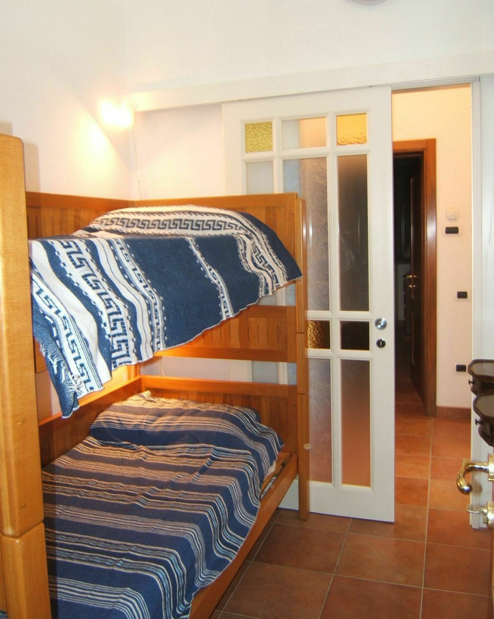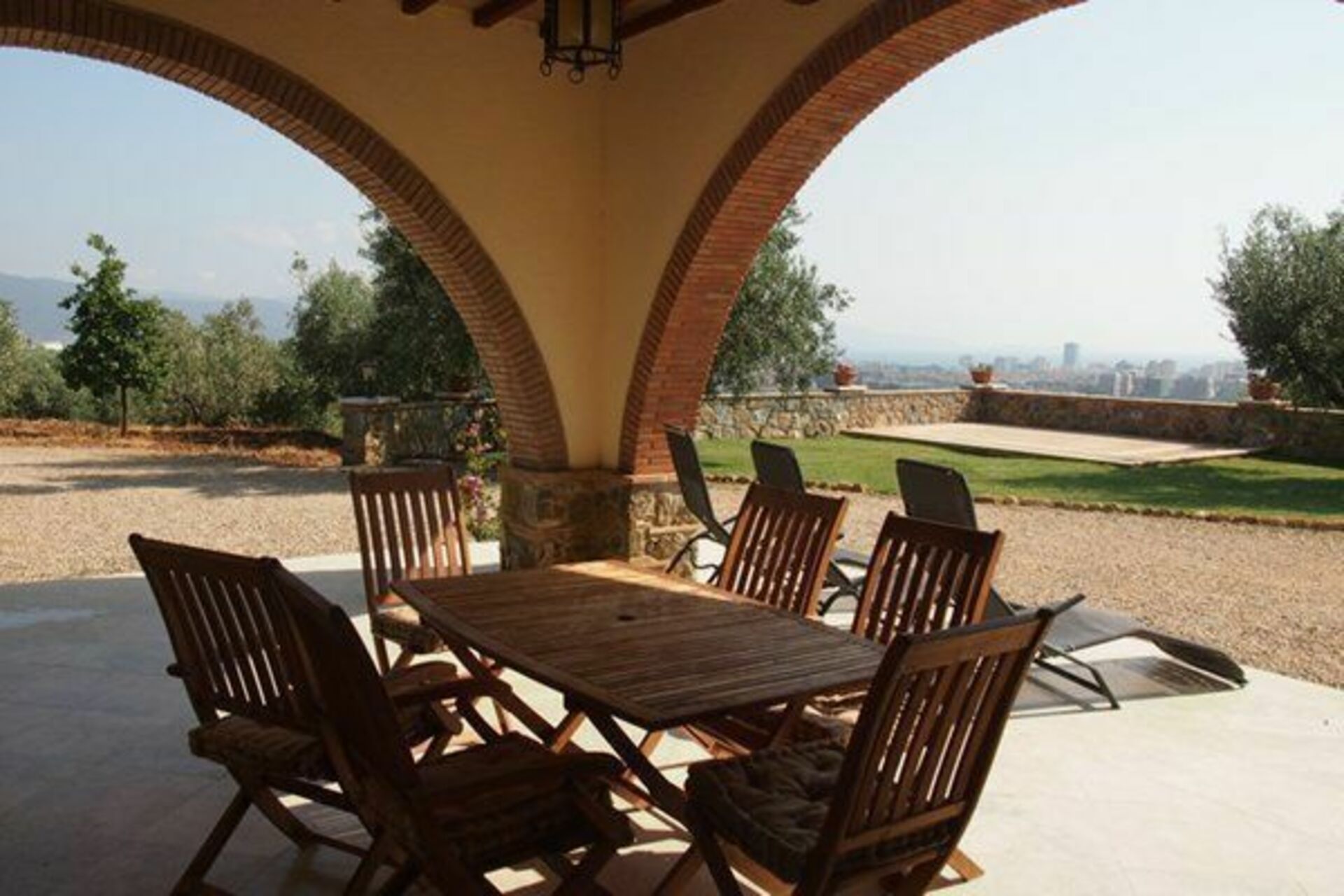 Erdgeschoss: Küche, Doppelzimmer mit Ehebett, Zweibettzimmer mit Etagenbetten, Badmit Dusche, großes Wohnzimmer mit Schlafcouch mit Zugang zu einer Loggia, die ausgestattet ist um draussen Essen zu können, kleiner angrenzender Platz zum entspannen und sonnen mit einem weiten Panoramablick auf den Golf.