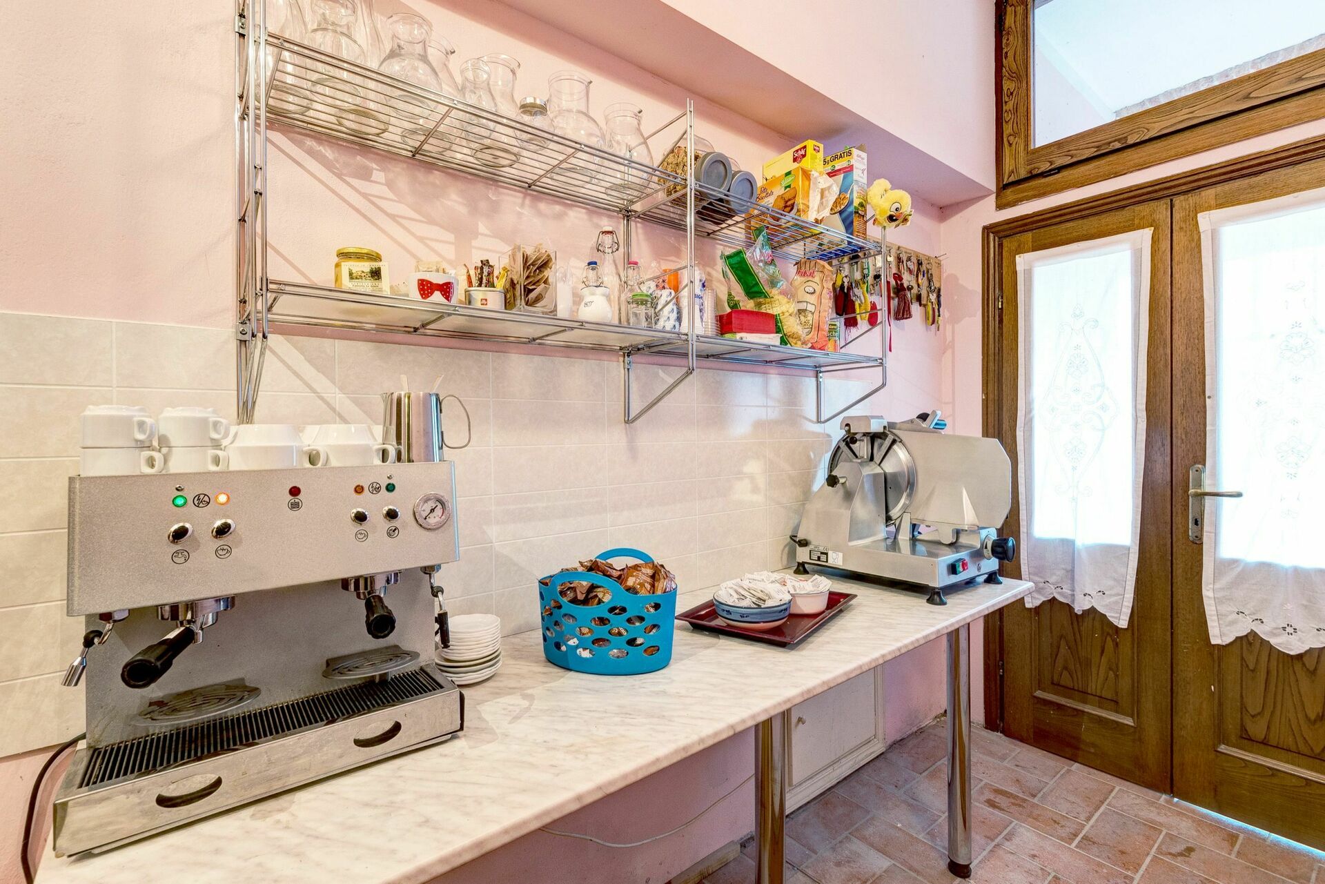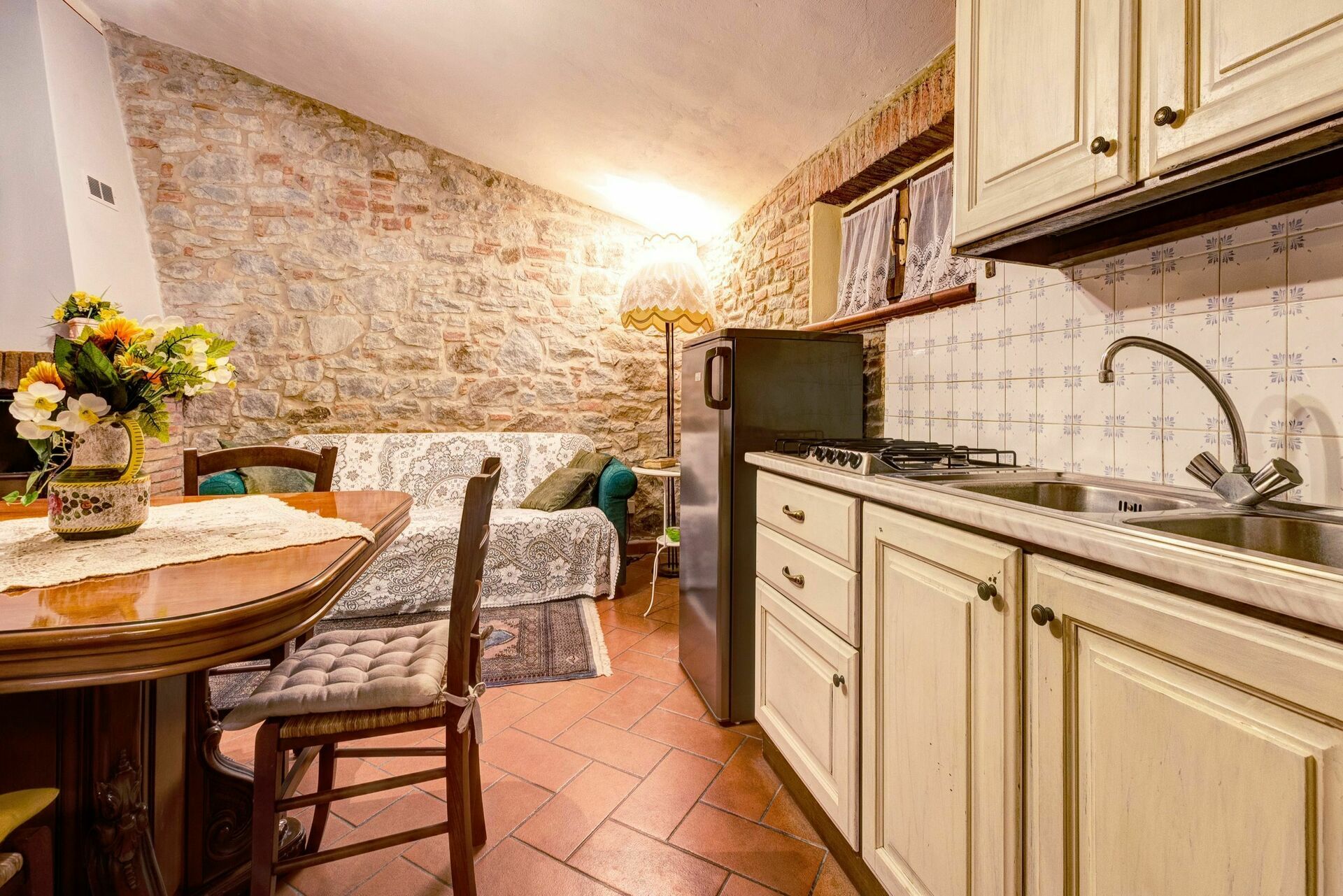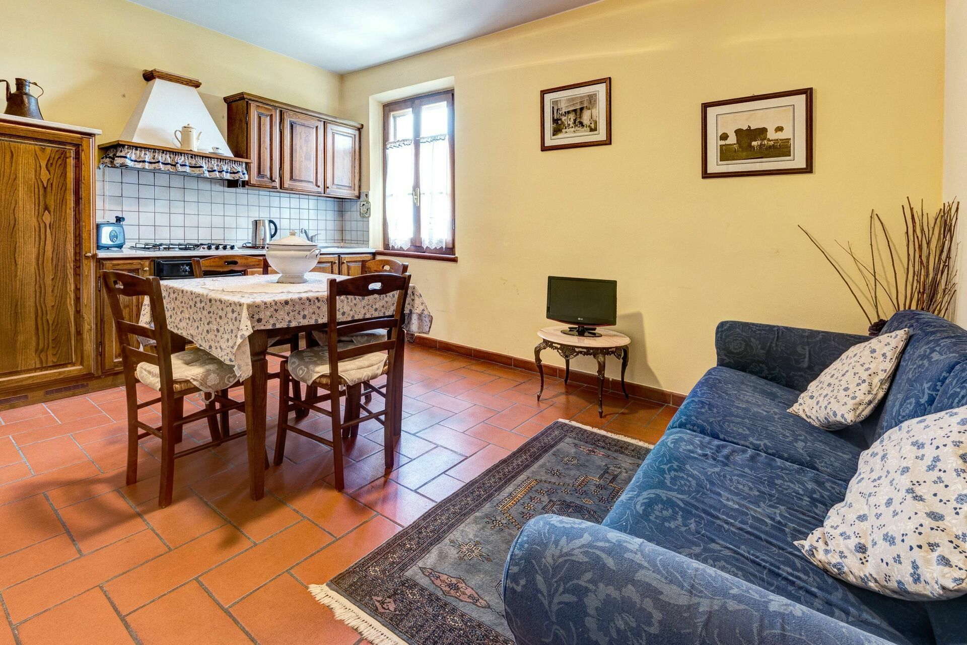 Die Panorama-Lage über der typischen toskanischen Landschaft, umgeben von goldenen Feldern, sowie der hohe Komfort und die ansprechende Innenausstattung machen diese Villa zu einem einzigartigen Rückzugsort, an dem moderne Architektur und traditionelle Bauweise harmonisch verschmelzen. Das Landhaus wurde nach originalen Vorgaben renoviert, um den historischen Charme zu bewahren, und ist in acht geschmackvolle Apartments unterteilt, die jeweils über eine Küchenecke verfügen. Ein großer Wohnsaal mit Kamin und eine voll ausgestattete Küche stehen den Gästen ebenfalls zur Verfügung.