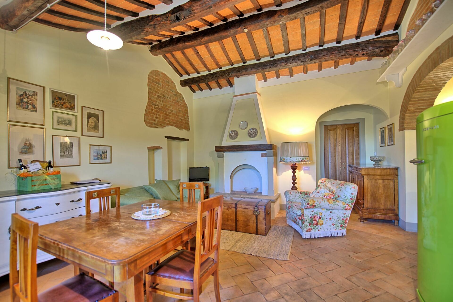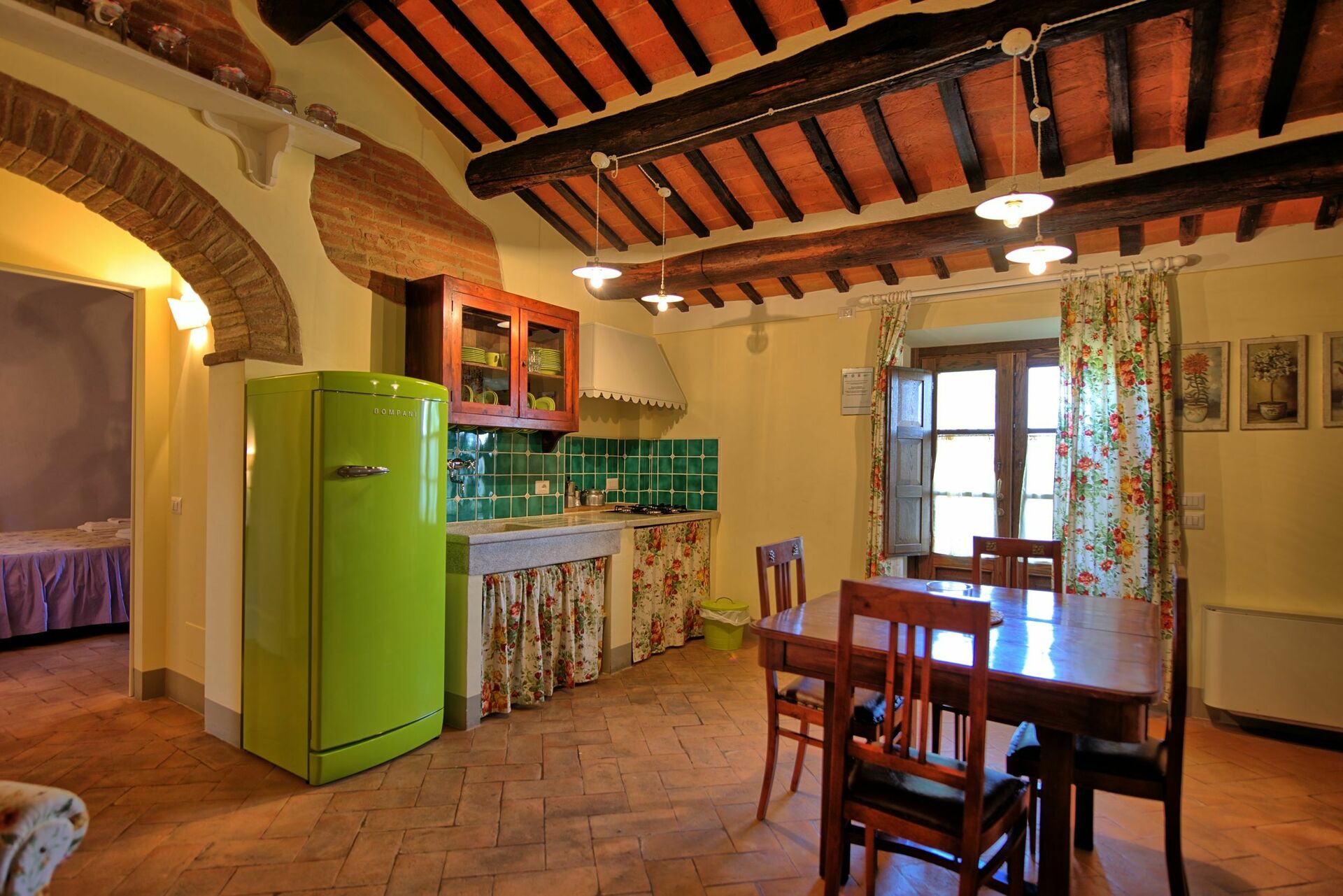 This is a great place for afamily holiday in Tuscany. The apartment was one of 4 or 5 within a converted farmhouse. There was a large shared pool with plenty of room and loungers for everyone. Each apartment has its own area with table and chairs for dining outside so you can have some privacy if you wish. The apartments are well appointed with all you need to cook meals and eat in. Wi-fi and air con worked well. The surroundinga area is lovely with beautfiful hill top Cortoan about 5-10 km away and plenty restaurants, bars and supermakets there. It;s also an easy day trip to Sienna etc. All in all I would recommend this villa for anyone travelling to Tuscany.
