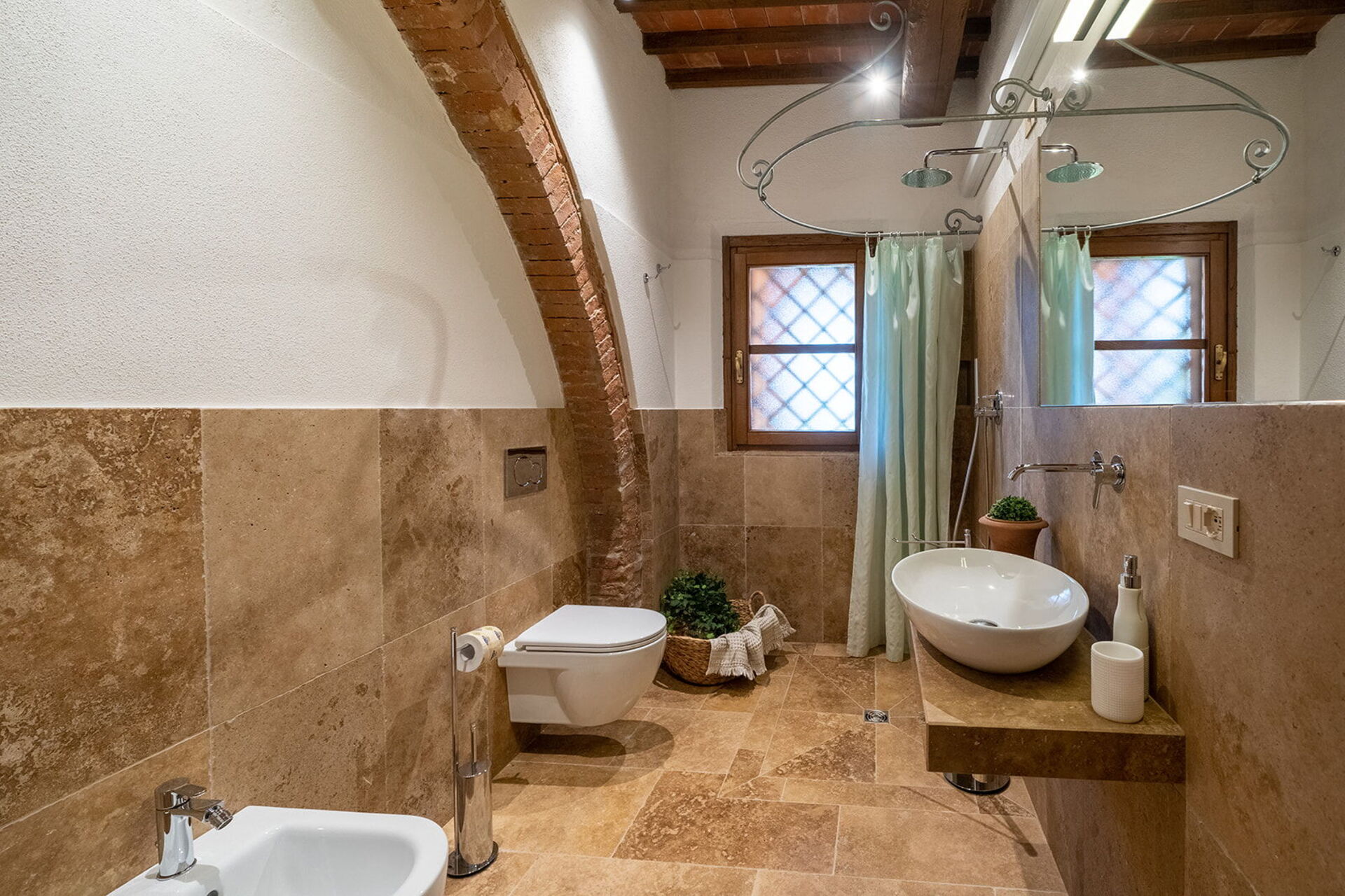 The holiday was excellent. We particularly asked for a wheelchair accessible apartment and our's was up to our requirements. Sadly the beds were too high for my husband to transfer onto but with the help of the manager we were able to use the bedsettee. Other than this the apartments, pool and surrounding area was absolutely wonderful. We had a superb meal at the restaurant down the lane and we enjoyed sightseeing in not only the nearby hilltop villages but also San Gimignarno, Pisa and Florence. One week really wasn't long enough and we all hope to visit our apartment at this lovely complex again but next time for longer! Our thanks to the management for our Italian idyll!