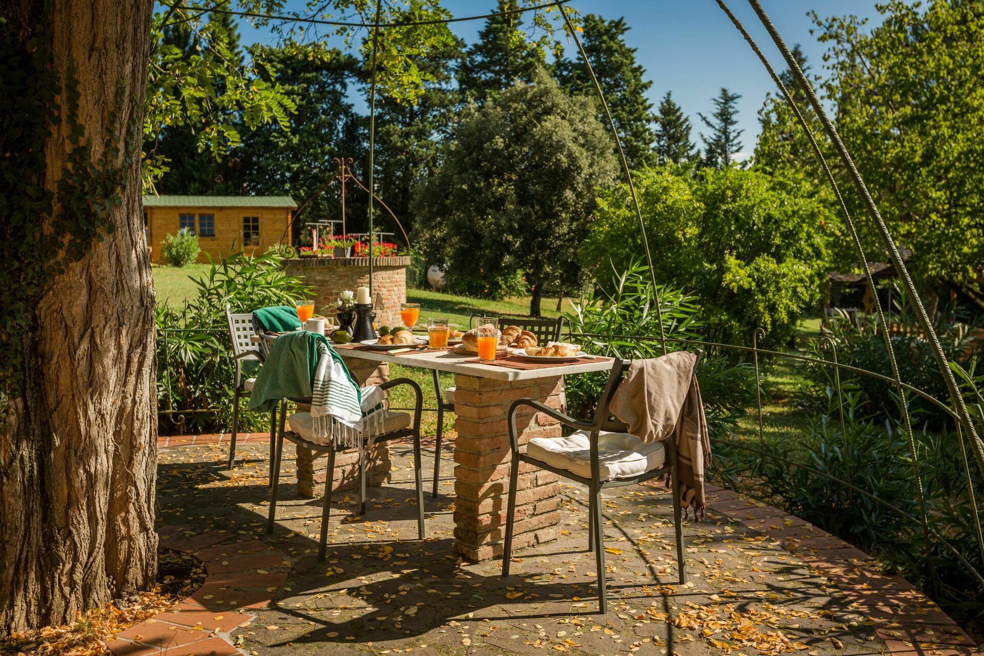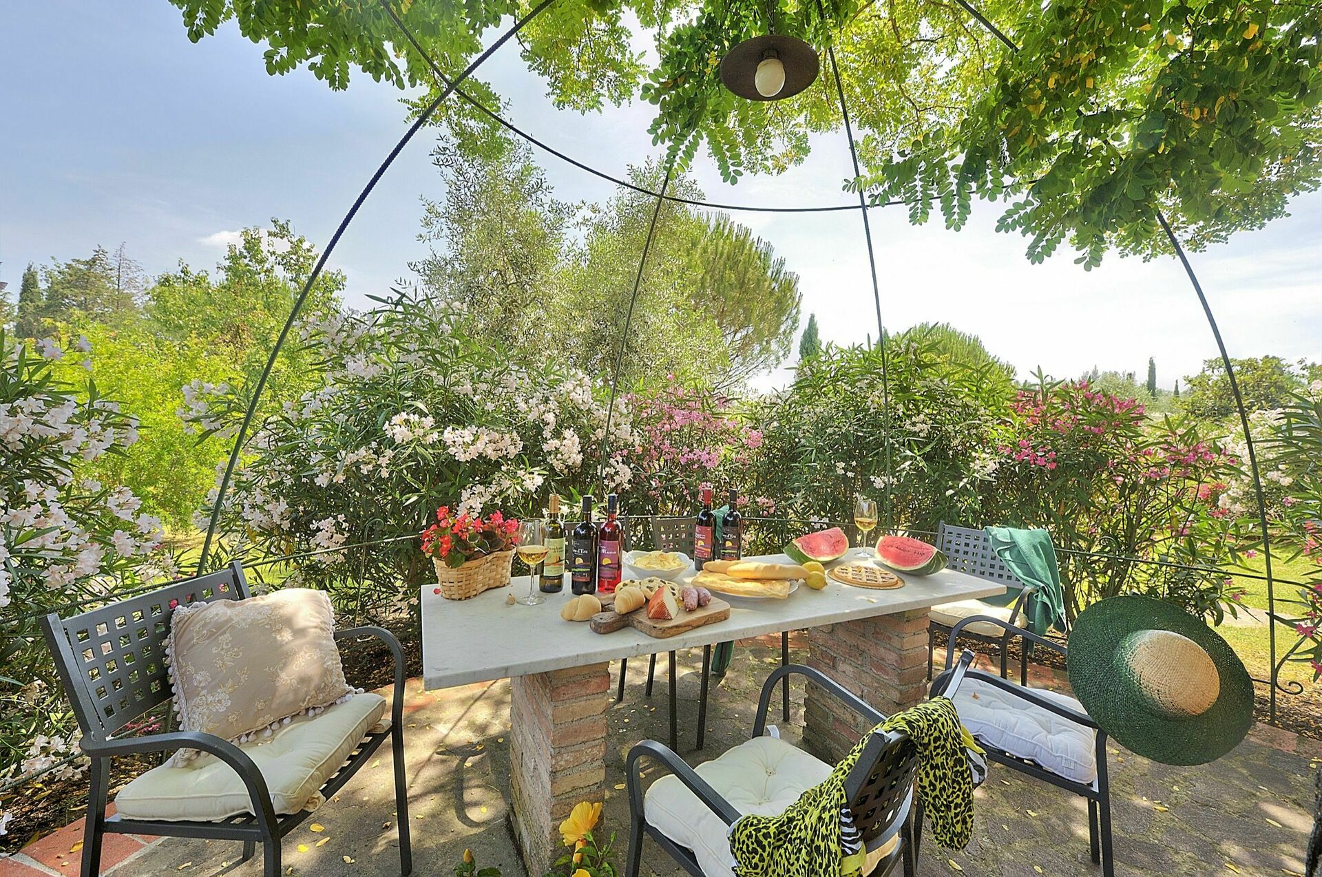 Private mit Stühlen und Tisch ausgerüstete Gartenlaube.