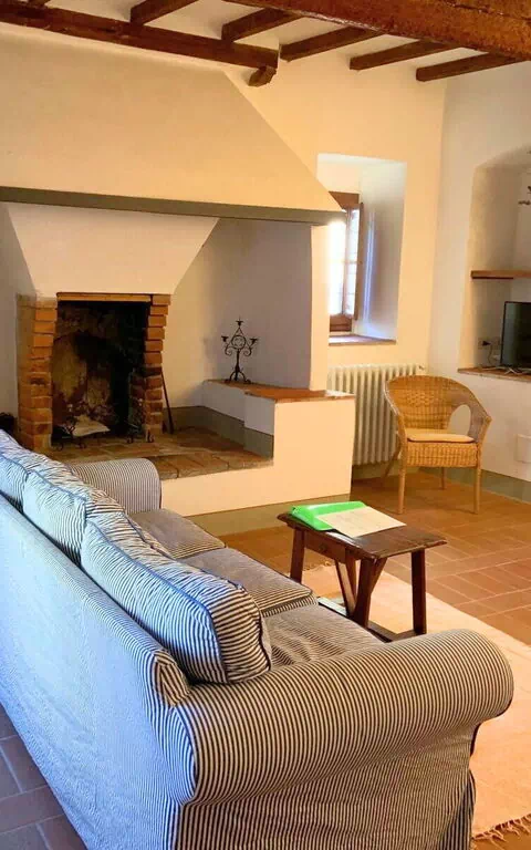 Erdgeschoss: großes Wohnzimmer mit Kamin (nicht in Betrieb).