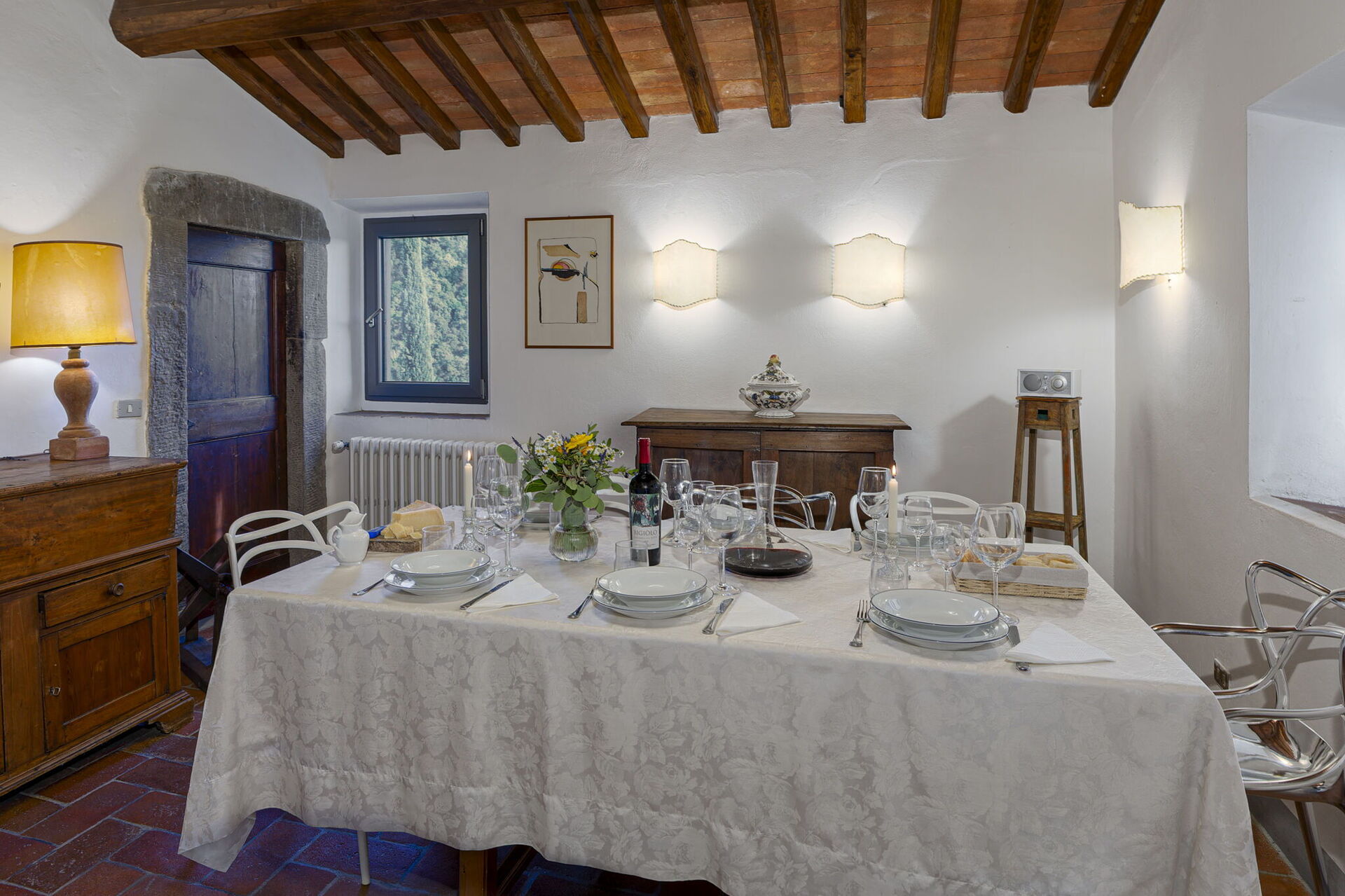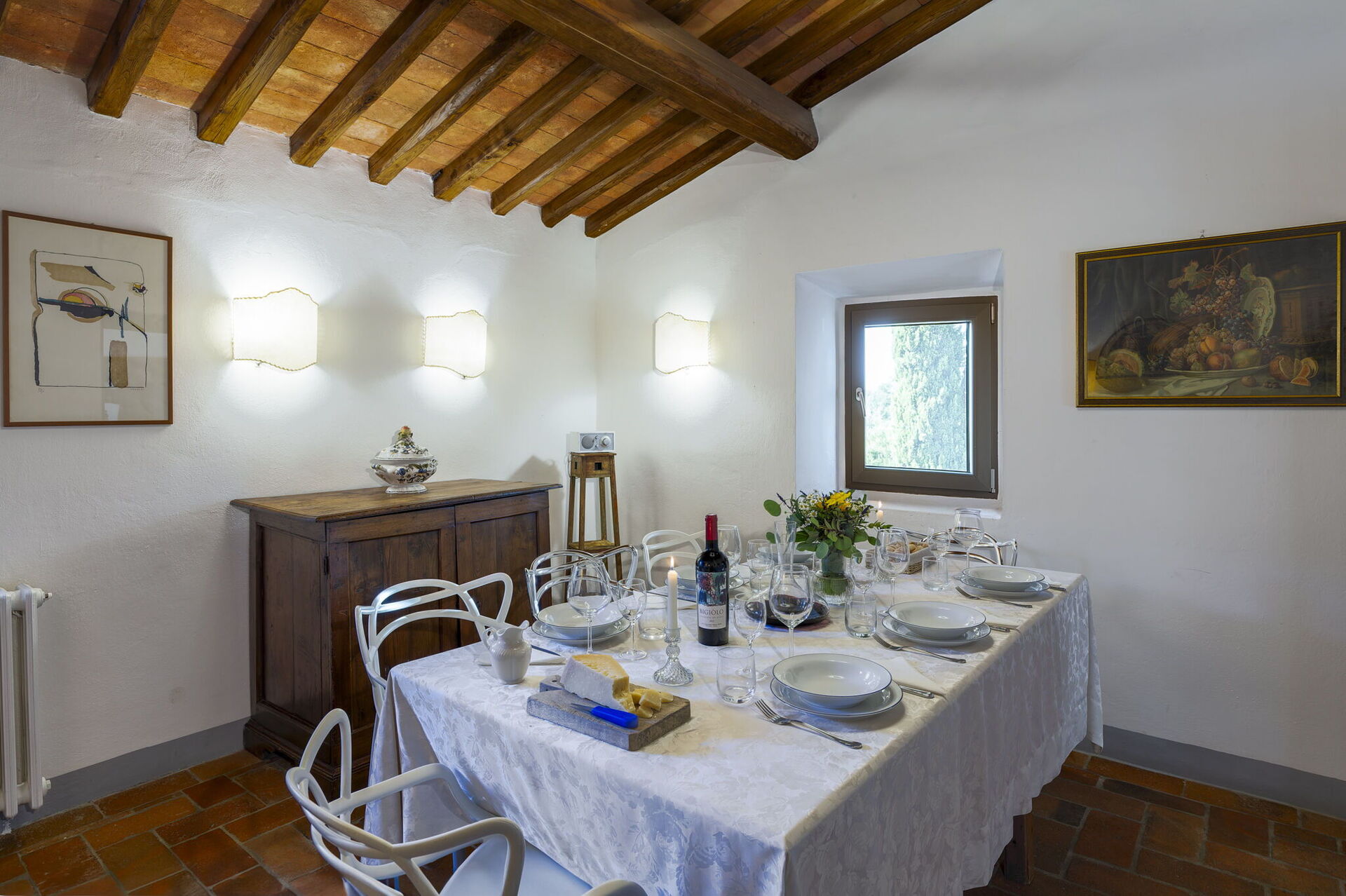 Das Haus ist Teil einer antiken und ganz kleinen Ansammlung von Bauernhöfen wo heute noch die Oliven und Trauben für den weltberühmten „Chianti Classico“ und hochwertiges, kaltgepresstes Olivenöl angebaut werden.