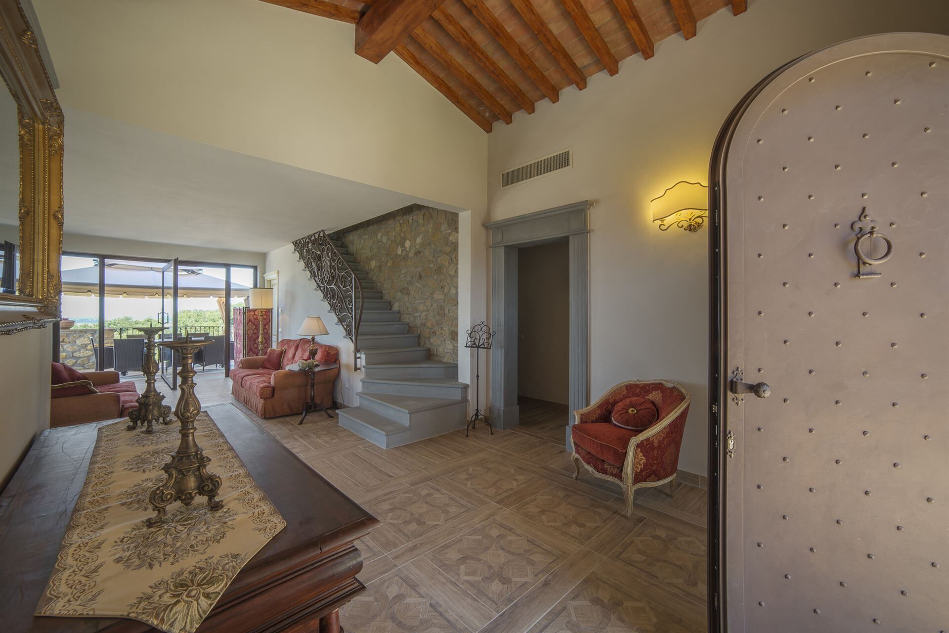 Das Anwesen ist von einem gepflegten Garten umgeben, in dem sich ein Schwimmbad befindet, das den Gästen exklusiv zur Verfügung steht. Eine Panorama-Sonnenterrasse mit Sonnenliegen ist der perfekte Ort, um mit Freunden und der Familie unter der Sonne der Toskana zu entspannen.