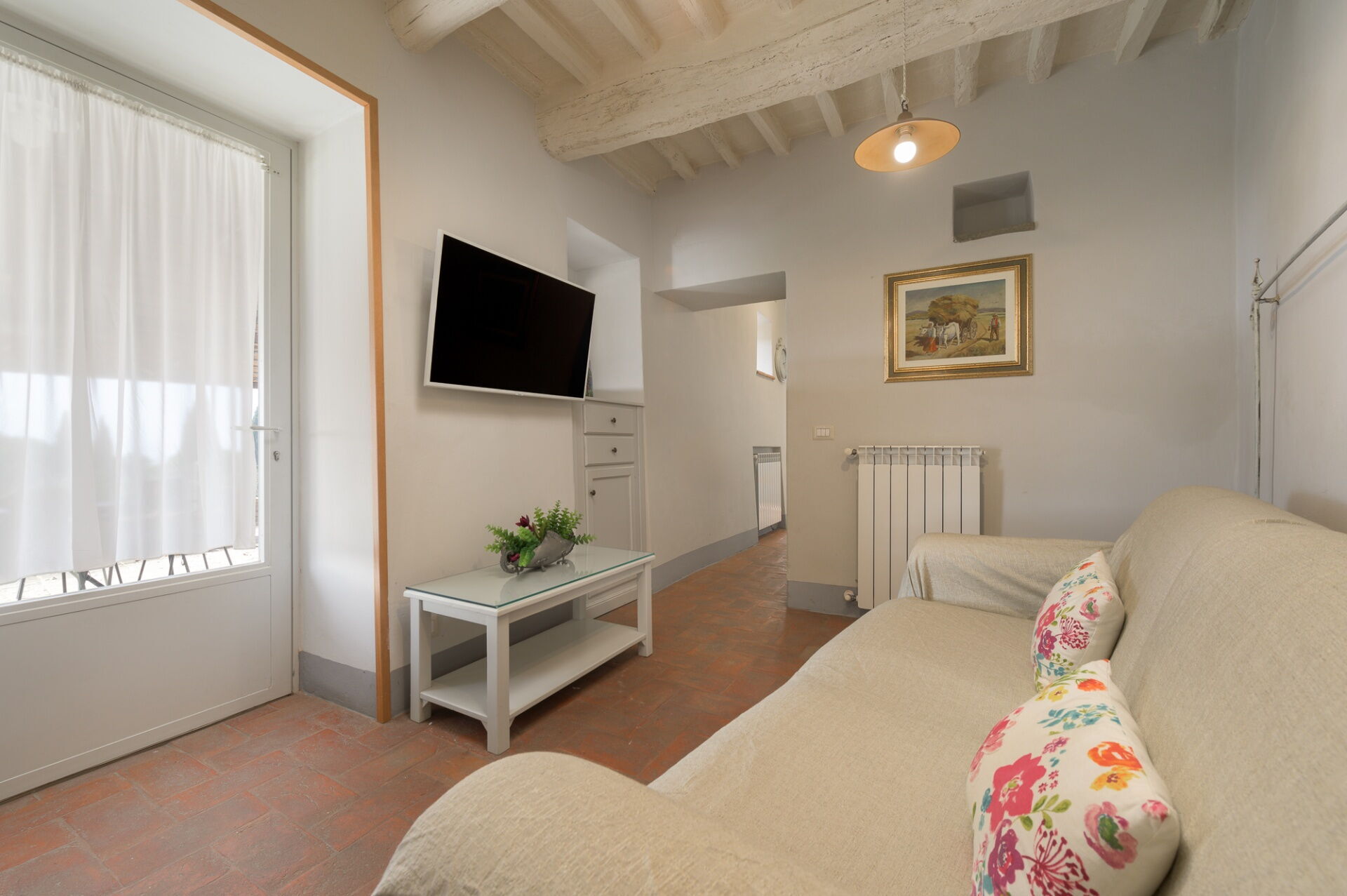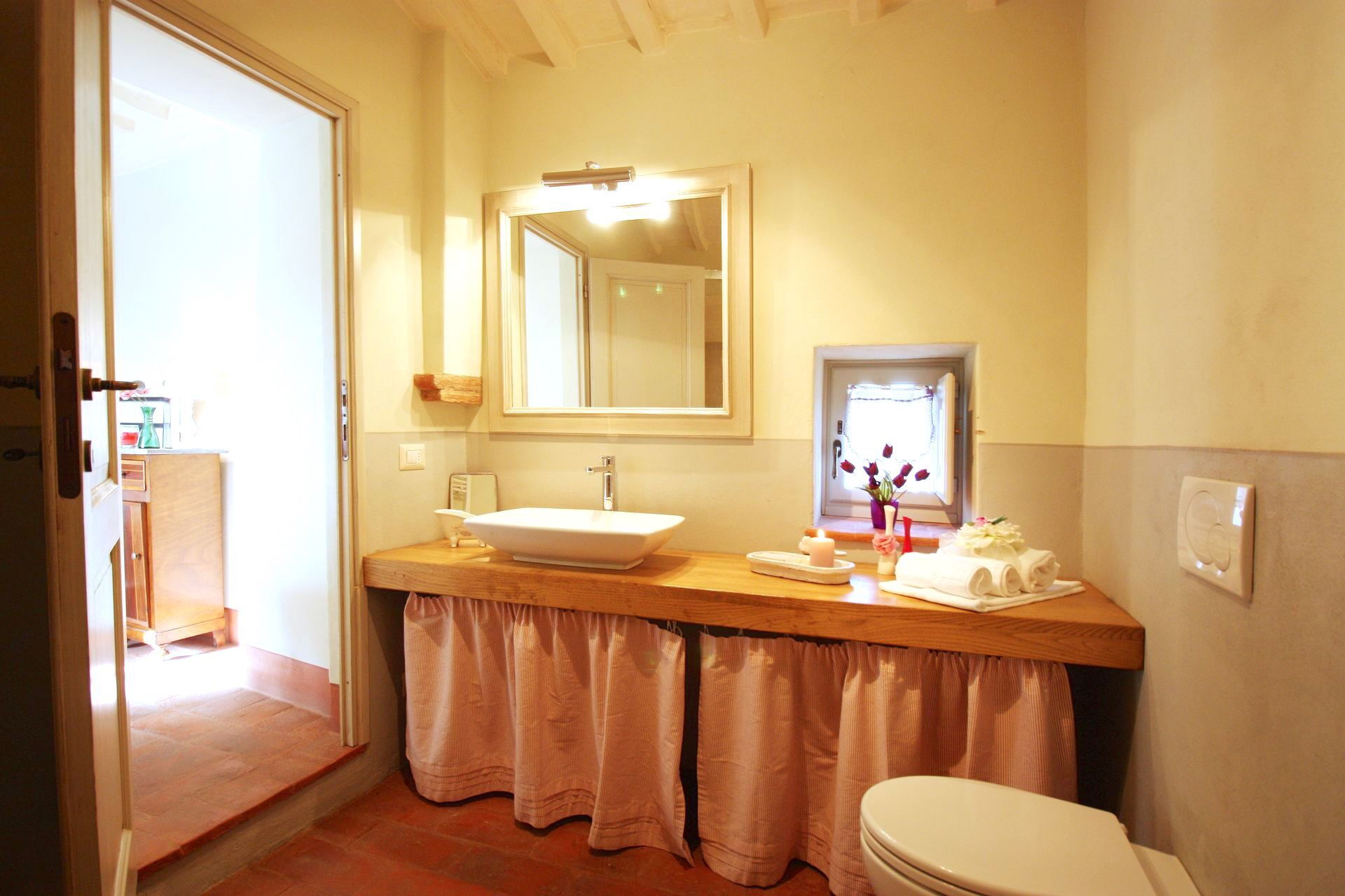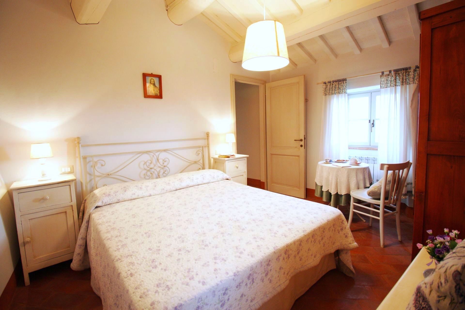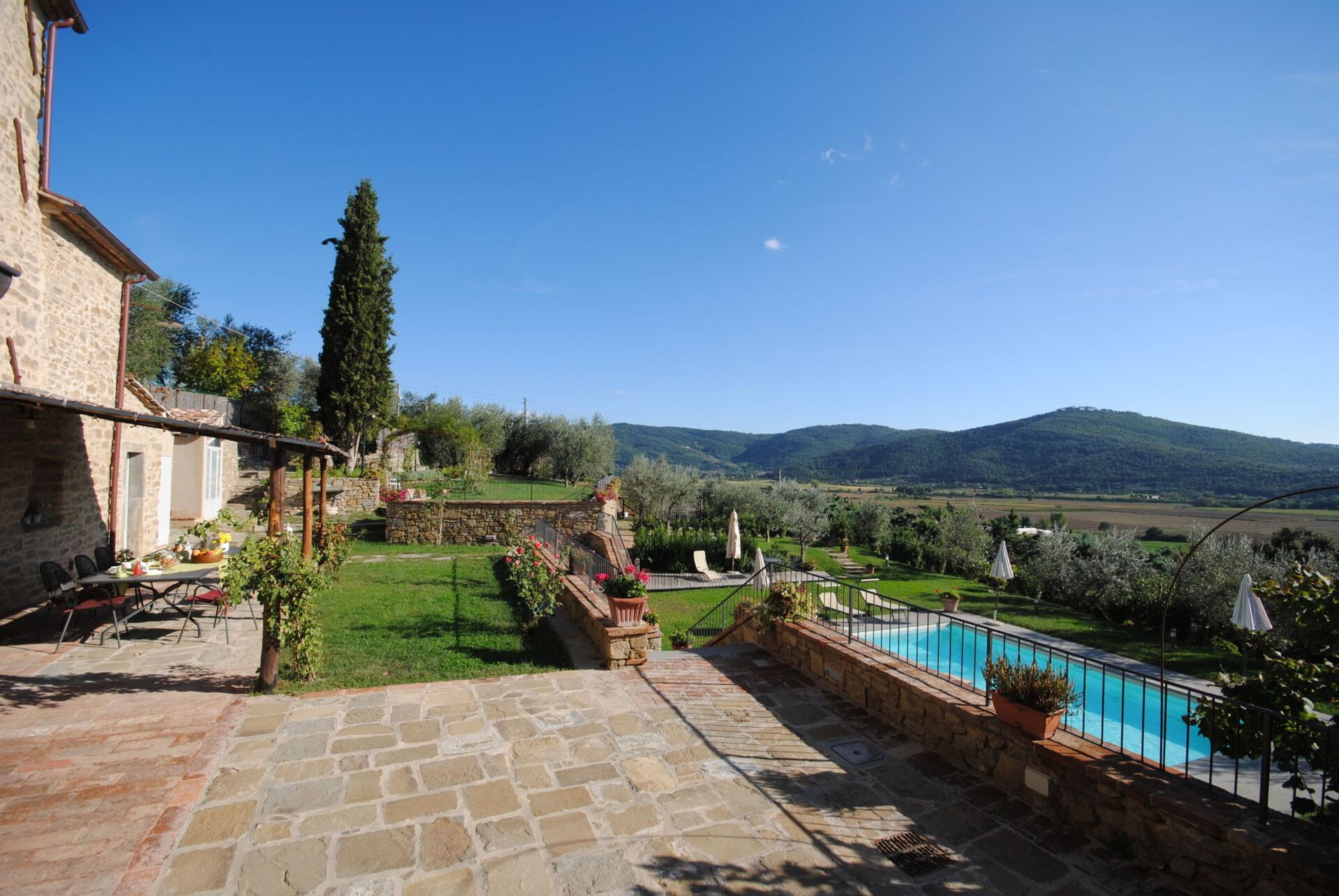 Entfernungen: Camucia (Geschäfte aller Art und Bahnhof) 5 km, Cortona 5 km, Trasimenischer See 20 km, Arezzo 33 km, Montepulciano 33 km, Rapolano Terme (bekannte Thermalbäder) 43 km, Pienza 47 km, Perugia 49 km, Gubbio 65 km, Siena 77 km, Florenz 109 km, Florenz (Flughafen) 131 km.