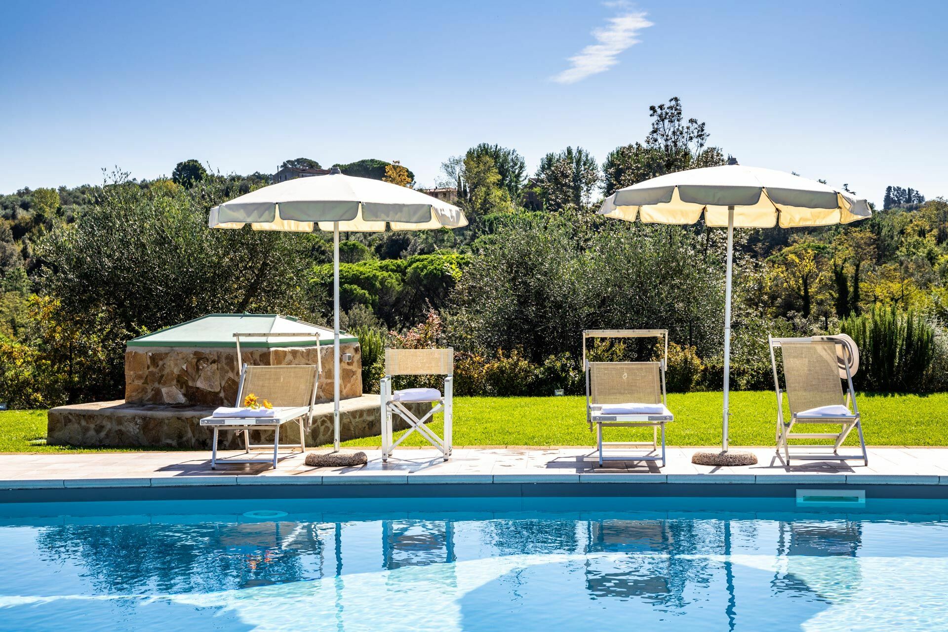 Had a wonderful three- week stay at this beautiful property (three couples). The villa, pool and grounds are large and comfortable. Bedrooms are all air-conditioned. Our hosts, Giulio and Fredericka, were lovely people, very accommodating ...... even arranged an onsite wine tasting for us.