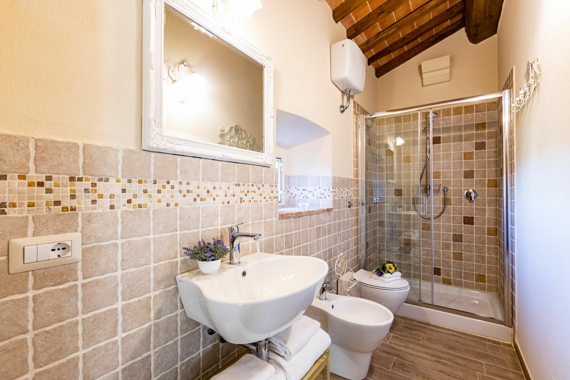 Das Haus ist im typisch rustikalen toskanischen Stil eingerichtet und bietet komfortablen Raum für bis zu 10 Gästen. Es besteht aus einem Haupthaus mit drei Schlafzimmern, einem kleinen Apartment mit einem Schlafzimmer sowie einer Dependance, ebenfalls mit einem Schlafzimmer. Das Schwimmbad liegt etwa 100 Meter vom Haus entfernt und bietet einen herrlichen Blick auf die Hügel und den Ort Montefoscoli.