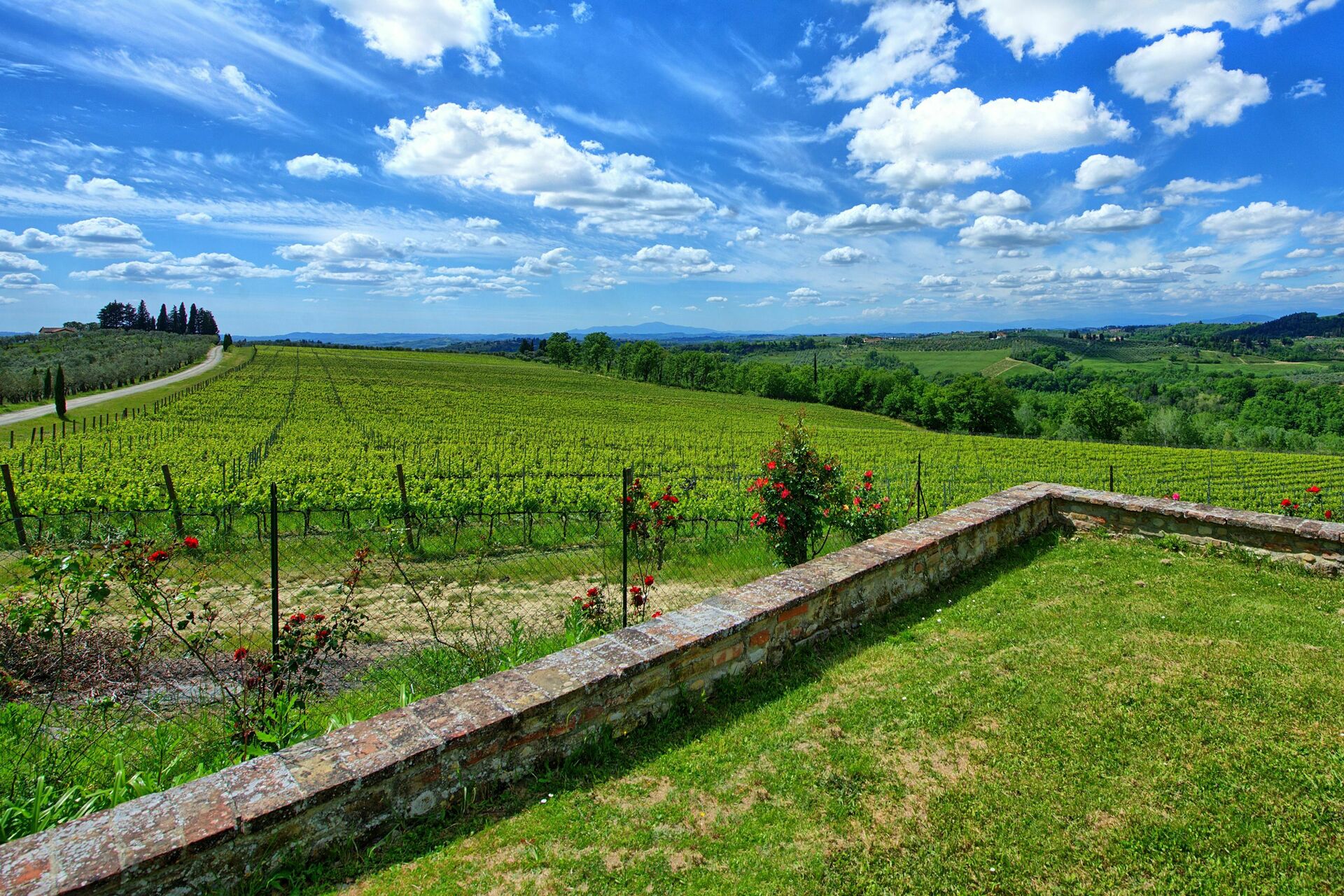 Belle villa au milieu des vignes, avec une très belle vue sur la campagne et les Apennins. Idéalement située : Florence, Sienne et Pise sont à moins d’une heure.