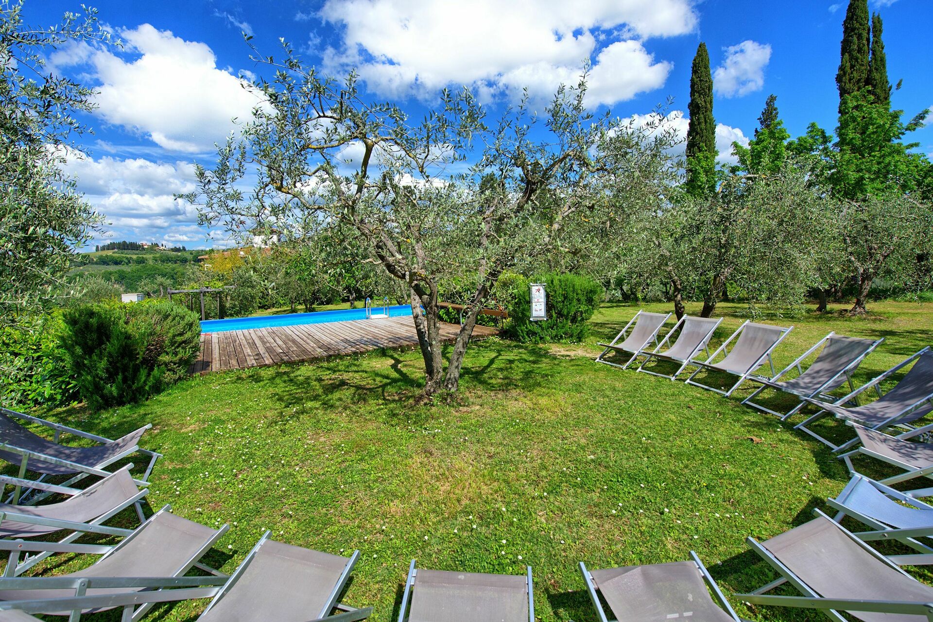 Den Gästen von Maggiano stehen ein großer privater Garten mit Panoramablick und ein Schwimmbad (aufstellbarer Pool) zur exklusiven Nutzung zur Verfügung.