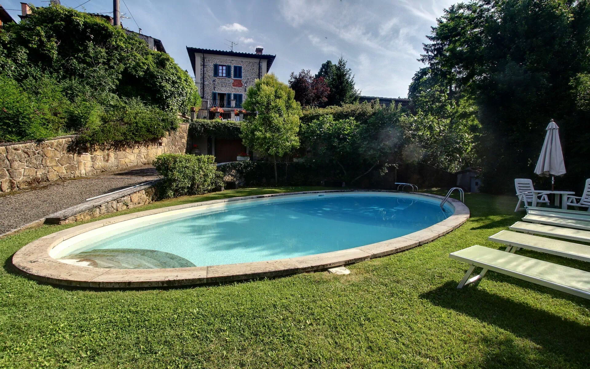Entfernungen: Lucolena (Lebensmittelgeschäfte) wenige Meter von der Villa entfernt, Greve in Chianti (Geschäfte jeder Art) 13 km, Figline Valdarno 14 km, Florenz 35 km, Siena 45 km, San Gimignano 60 km, Arezzo 65 km, Montalcino (Heimat des weltberühmten Weins Brunello di Montalcino) 90 km, Cortona 100 km, Rom 275 km.