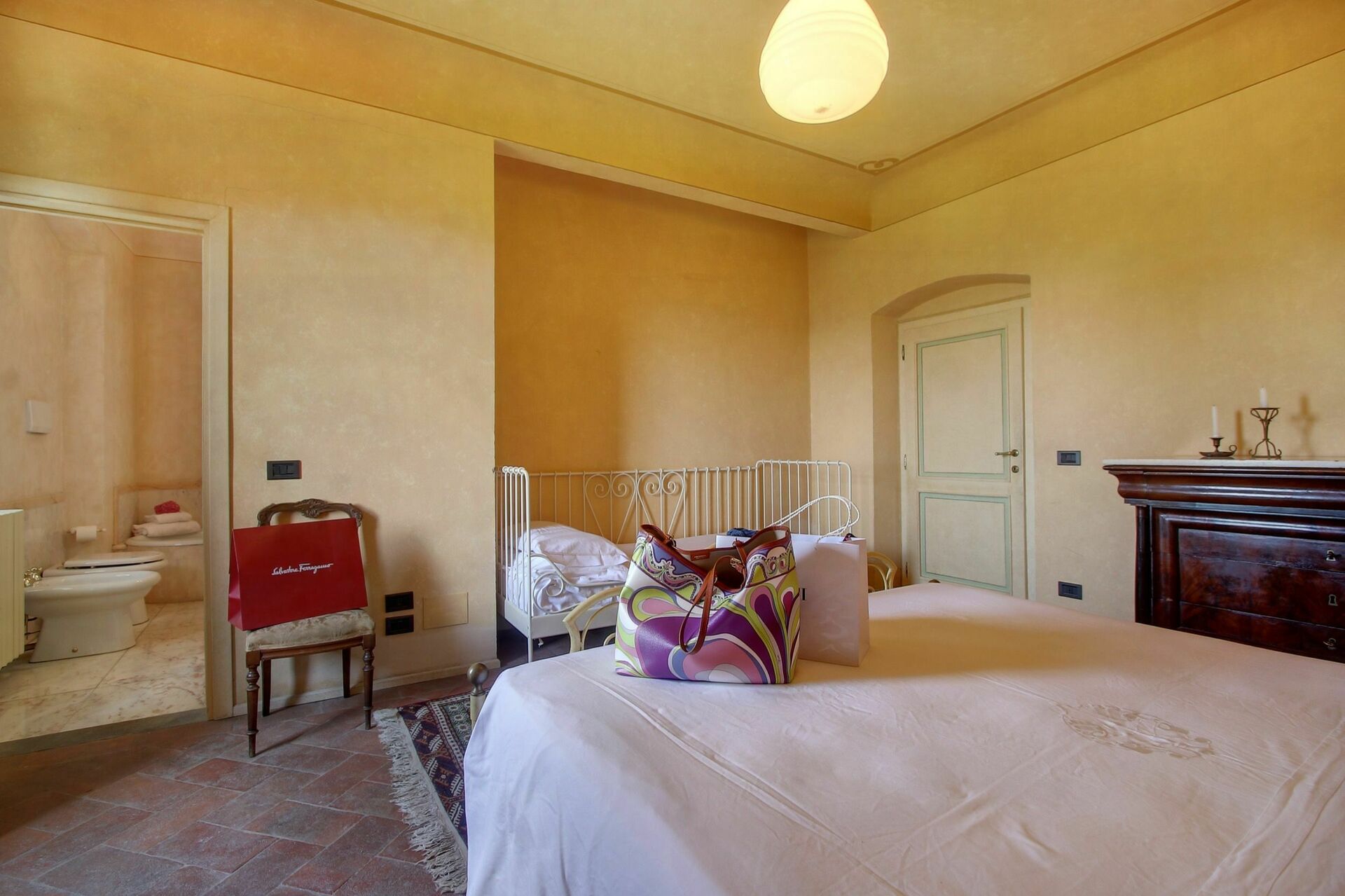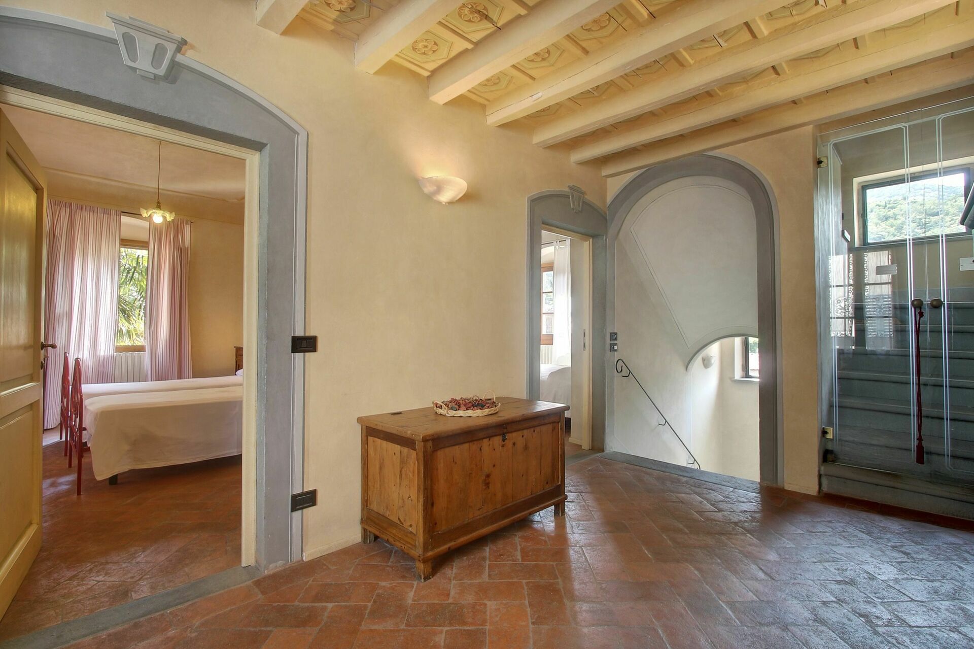 Die Villa ist der ideale Erholungsort für große Familien oder Gruppen von Freunden, die in einem kleinen Dorf auf dem Land entspannen und gleichzeitig die wichtigsten Sehenswürdigkeiten der Toskana schnell und bequem erreichen möchten. Figline Valdarno liegt nur 14 km entfernt und bietet tägliche Zugverbindungen, um bequem nach Florenz und Arezzo zu gelangen, ohne ein Auto nutzen zu müssen. Die Innenräume sind großzügig gestaltet und teilweise mit Balkendecken, Terracottaböden oder Holzböden ausgestattet. Der große Wohnraum verfügt über einen alten Kamin, an dem man auch an kalten Winterabenden eine angenehme Atmosphäre genießen kann.