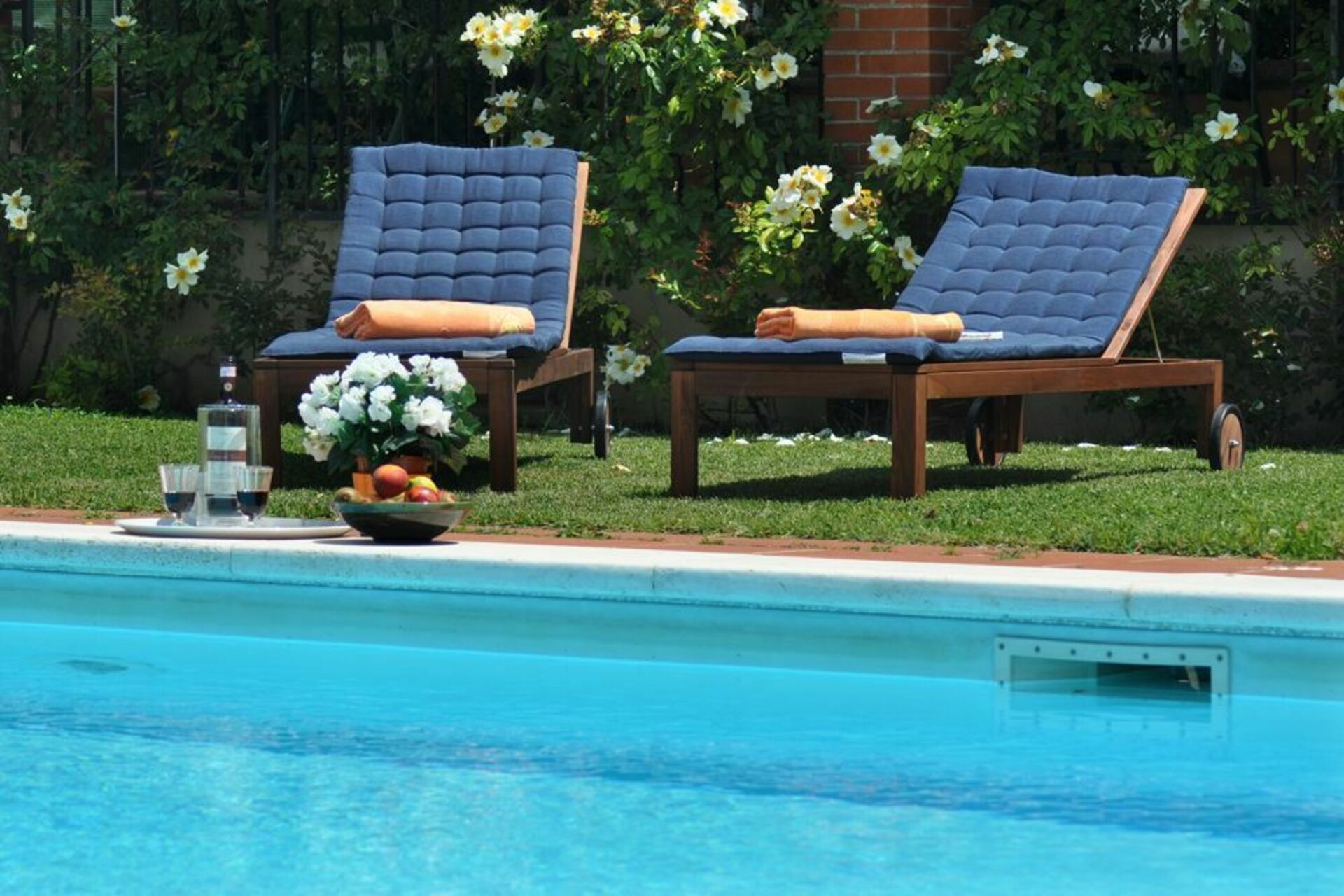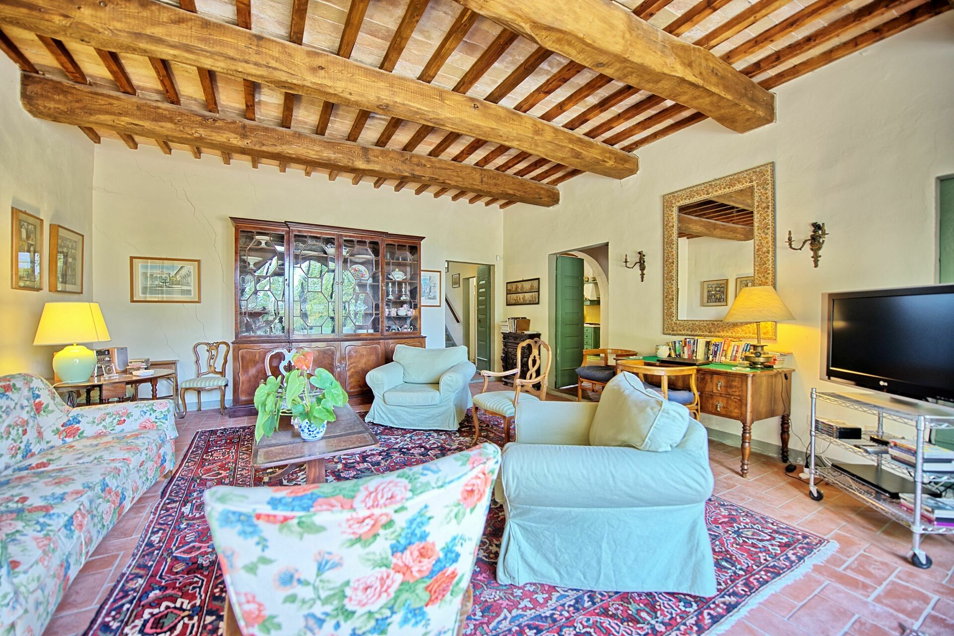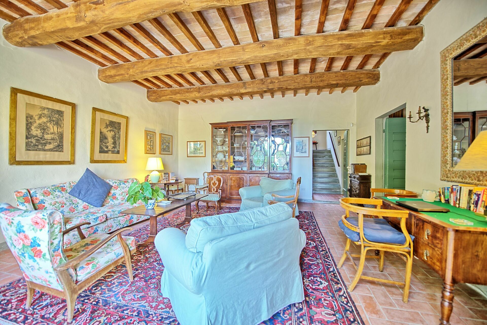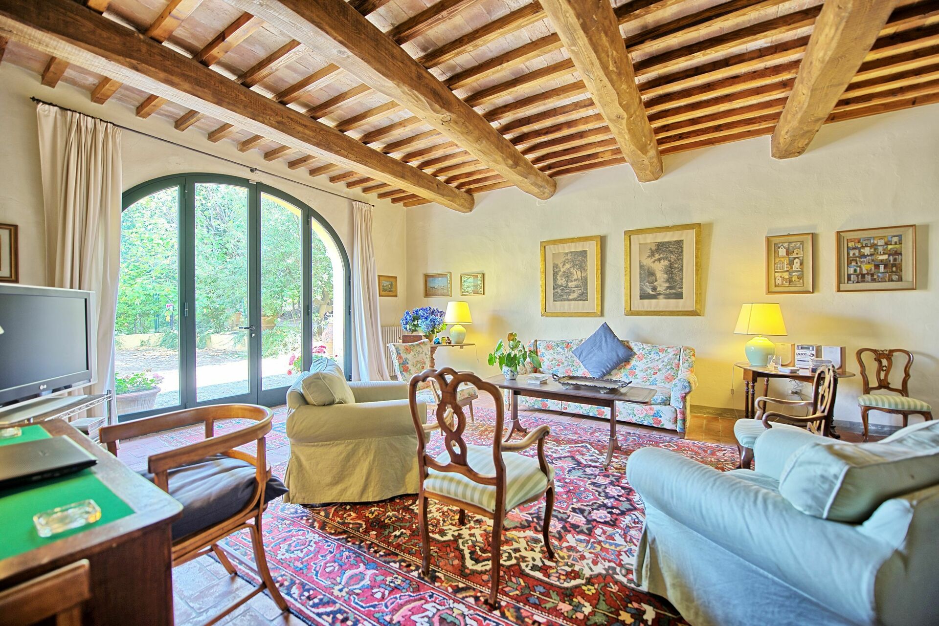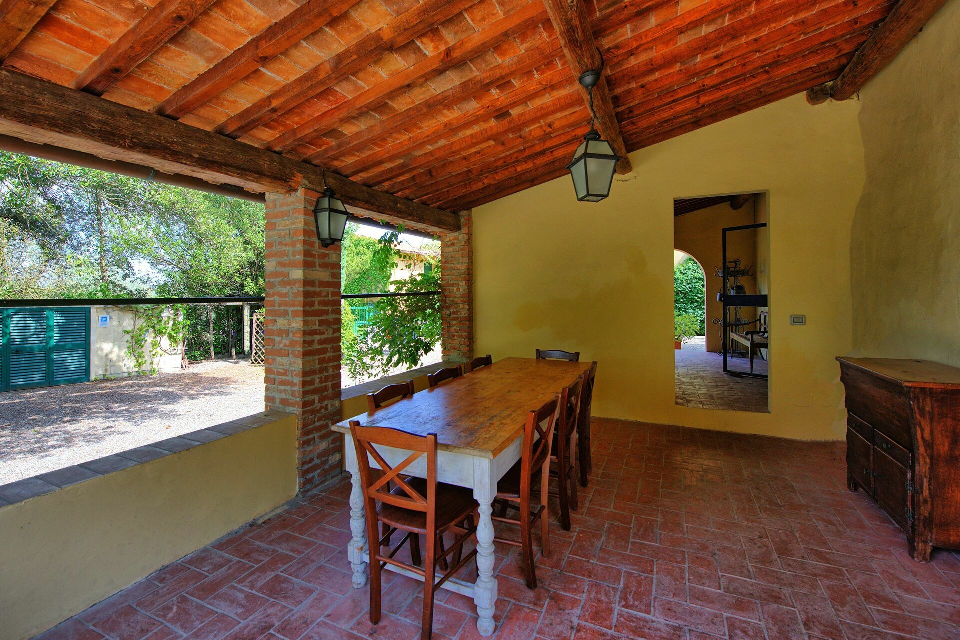 Im Aussenbereich ist das Haus von einem schönen Garten und überdachten Terrassen umgeben, die zum Aufenthalt im Freien ausgestattet sind, wobei man die wunderschöne Aussicht auf die Chianti-Hügel genießen kann. Ein paar Meter vom Haus entfernt können die Gäste ein wunderschönes privates Schwimmbad mit Panoramablick genießen, umgeben von einer Sonnenterrasse mit Liegestühlen und Sonnenschirmen. Der perfekte Ort, um sich an heißen Sommertagen zu entspannen und sich abzukühlen mit der Familie oder einer Gruppe von Freunden.
