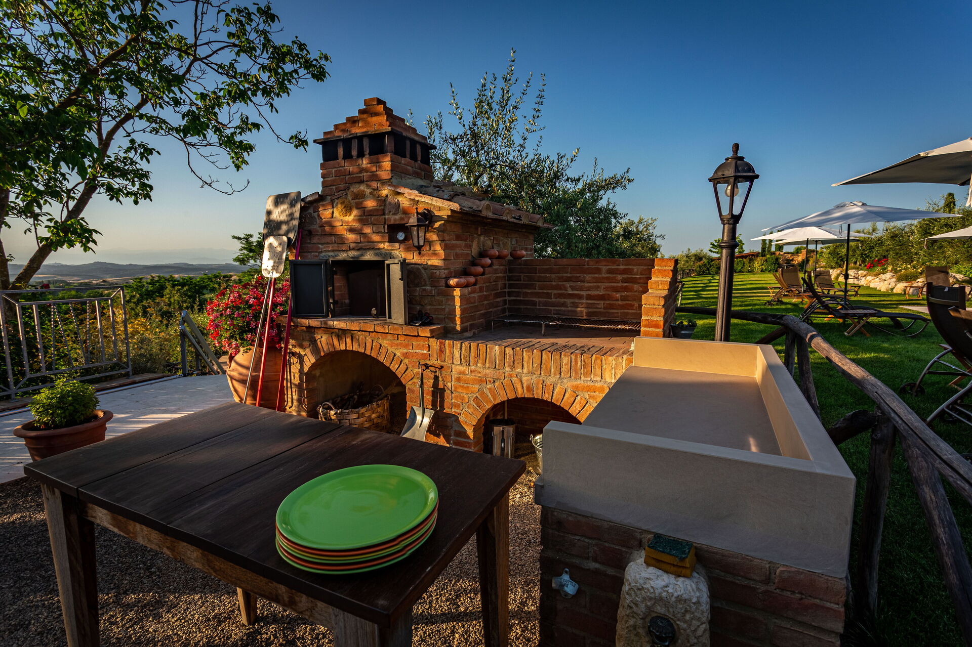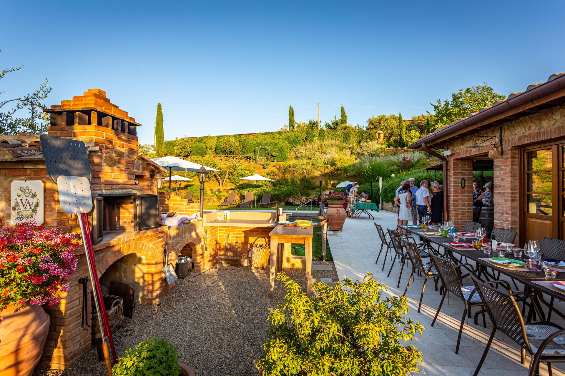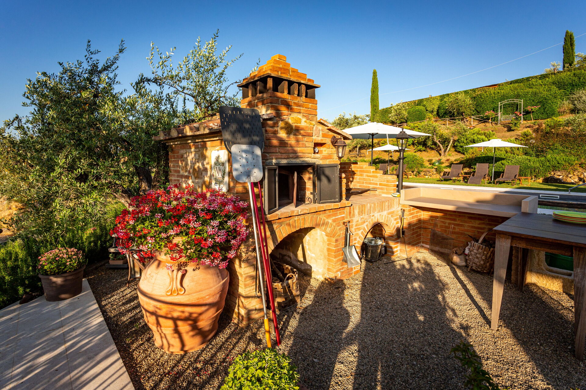 Villa Amadeo bietet seinen Gästen ein einladendes Schwimmbad, das ideale Voraussetzungen für unterhaltsame Momente mit Familie und Freunden schafft, sowie einen gemütlichen Kamin, der eine warme Atmosphäre zaubert. Der große Garten mit Grill und Pizzaofen macht Ihren Aufenthalt in der warmen Jahreszeit unvergesslich.
