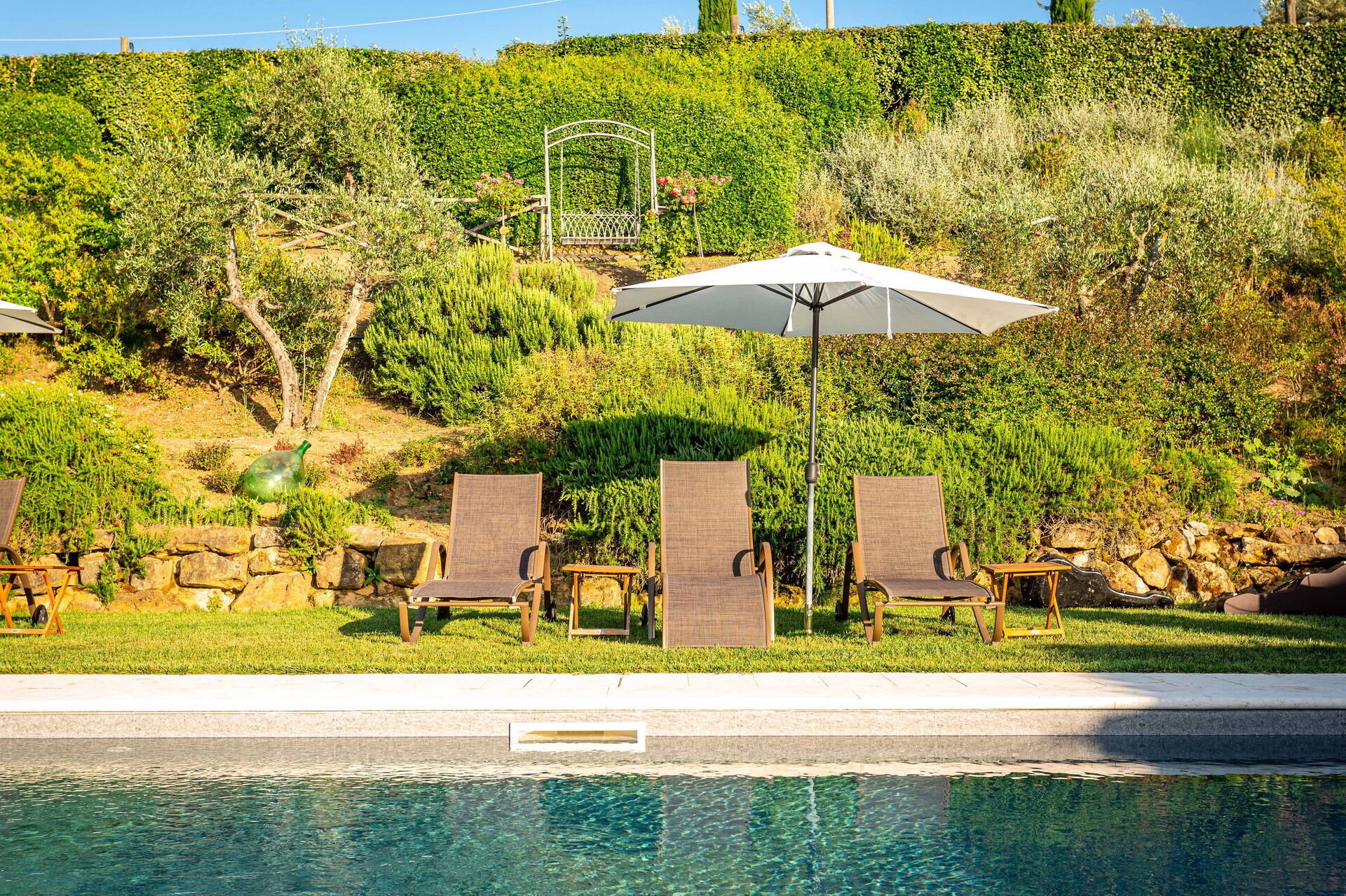 Das Schwimmbad wird vom 1. April bis zum 1. November beheizt und die Wassertemperatur liegt zwischen 26 und 28 Grad. Das Anwesen wird mit einem natürlichen Pestizid behandelt, um Insekten auf umweltfreundliche Weise zu entfernen.