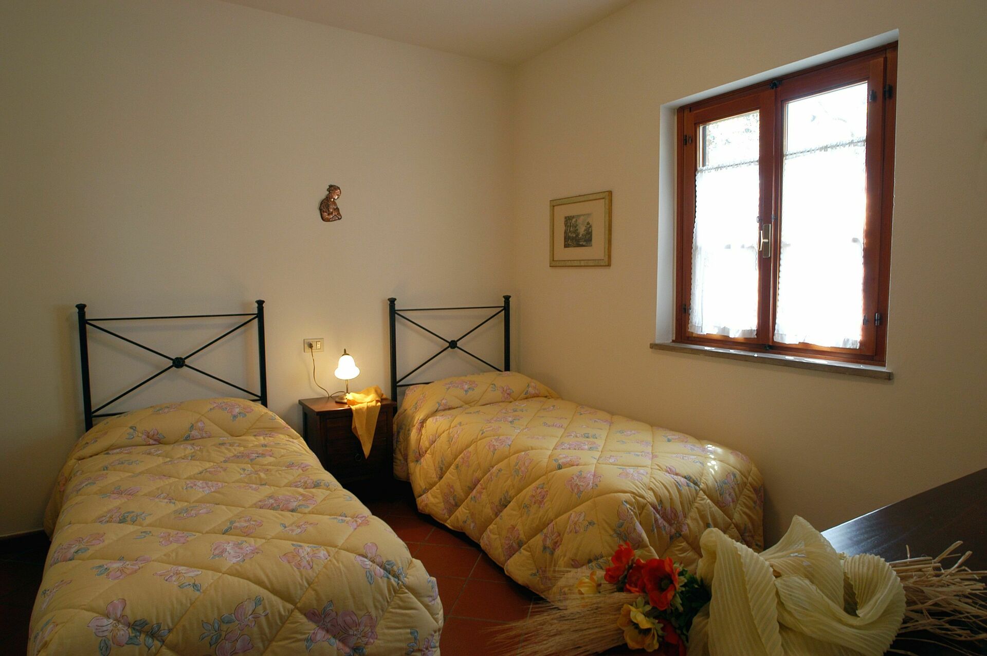 1.Stock: Doppelzimmer mit Ehebett , Zweibettzimmer, Bad mit Dusche.