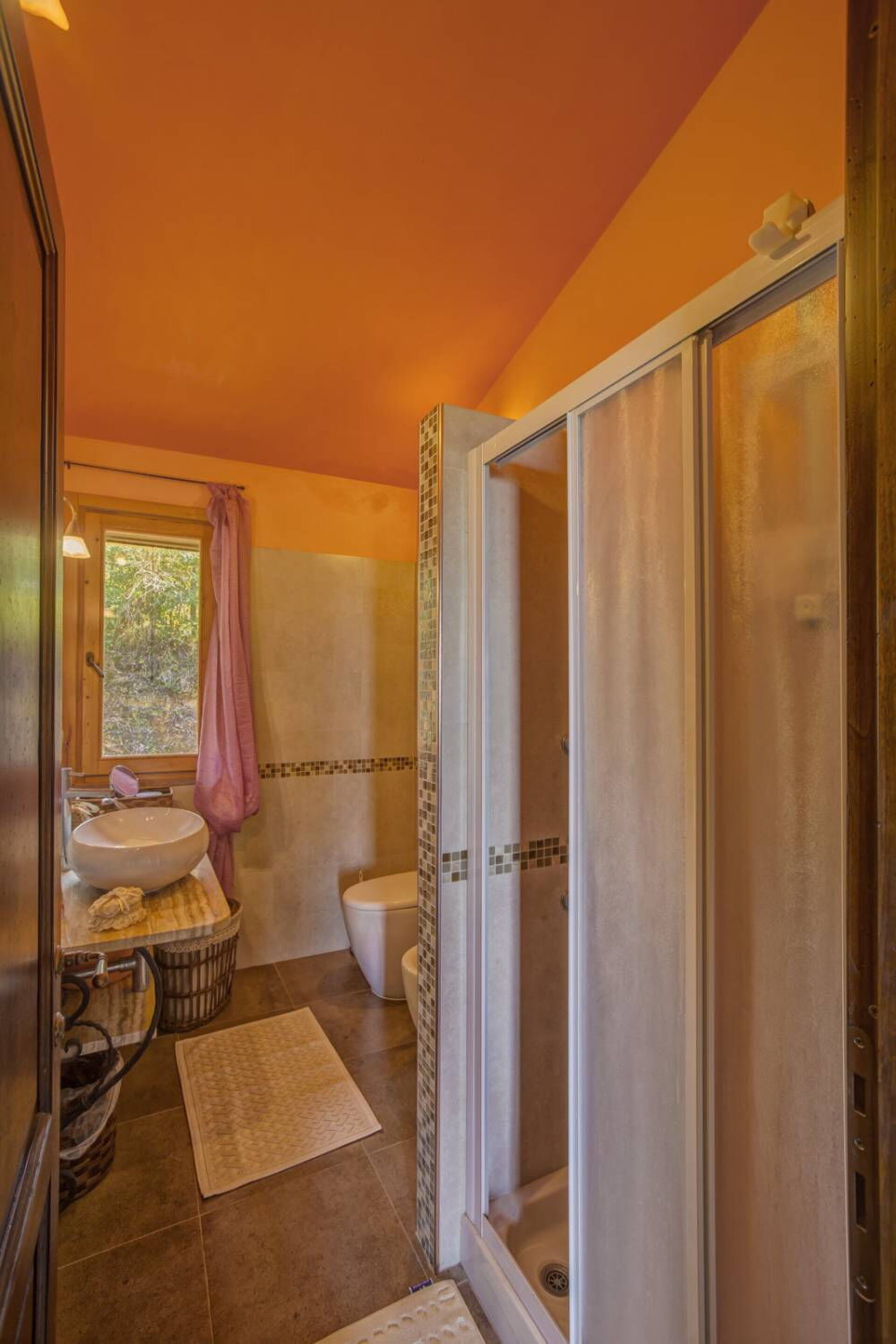 Erster Stock: Wohnzimmer mit Essbereich und Küche mit Kamin (Backofen, Toaster, Geschirrspüler, Espresso- und amerikanische Kaffeemaschine), Schlafzimmer mit Doppelbett, Zweibettzimmer, Badezimmer mit Hydromassage-Dusche. Überdachte Panoramaterrasse von 20 m2, ausgestattet mit Tisch, Stühlen und Liegestühlen.