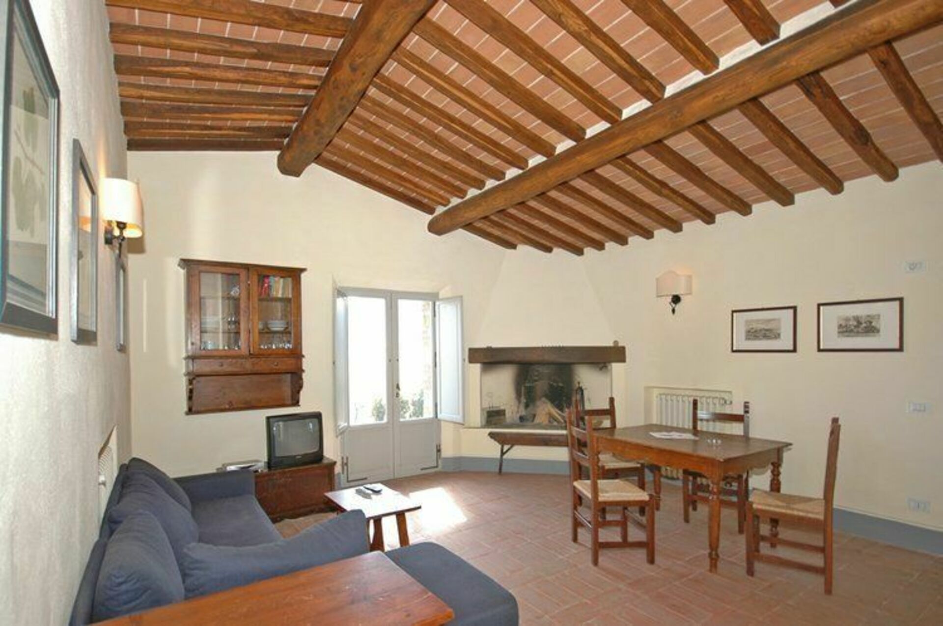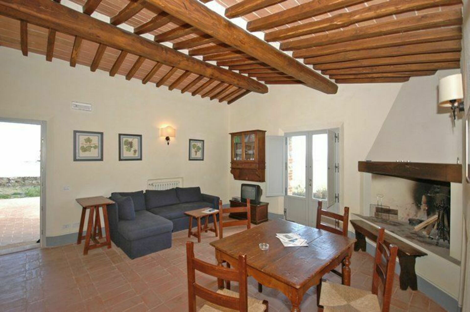 Erdgeschoss:Wohnzimmer (Sat-TV mit Kamin, Kochecke (Ofen, Gefrierfach, Spülmaschine), Essbereich und Zugang zum privaten Garten mit herrlichem Panoramablick auf Montalcino, Doppelzimmer mit Bad mit Badewanne.