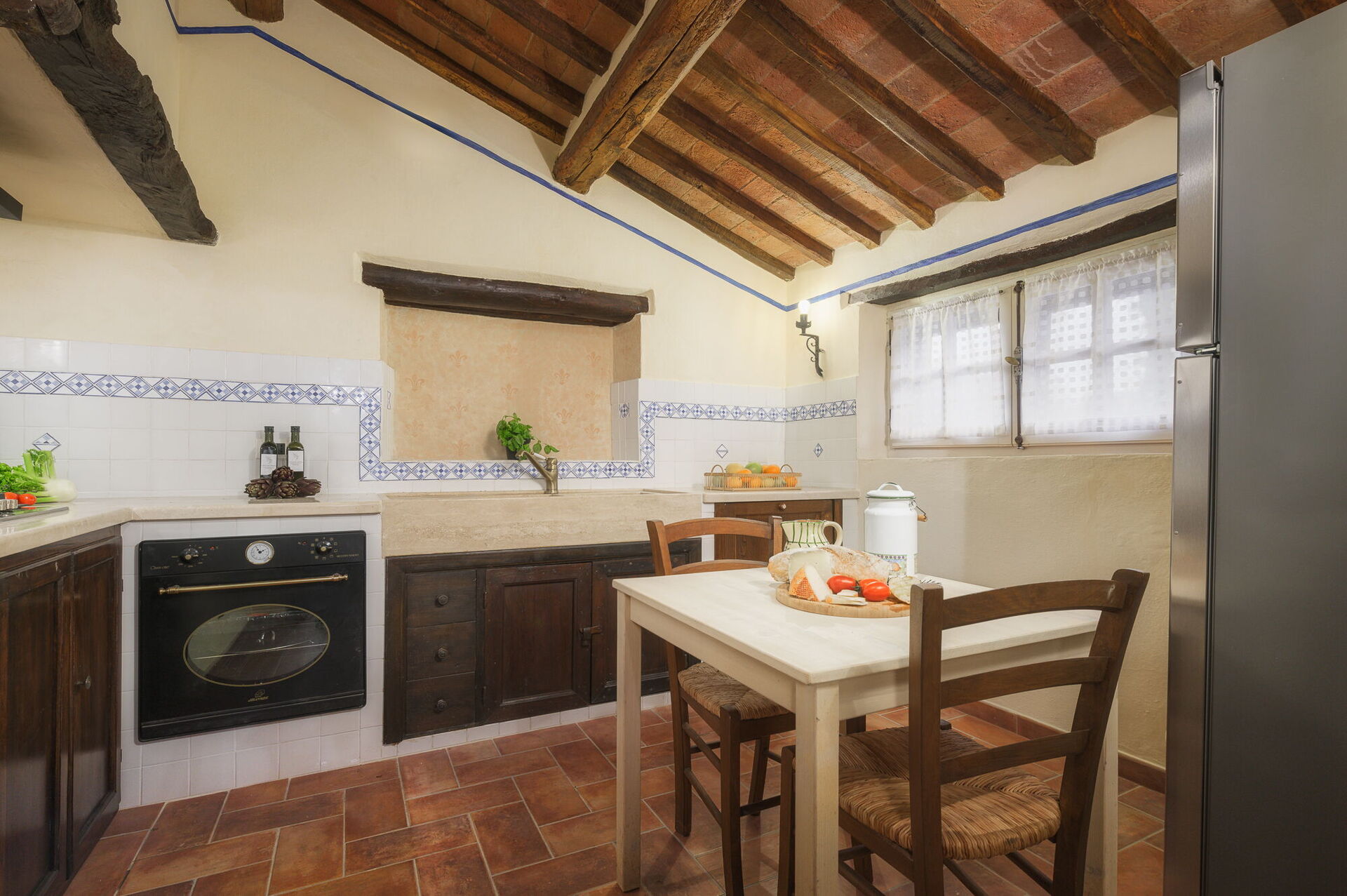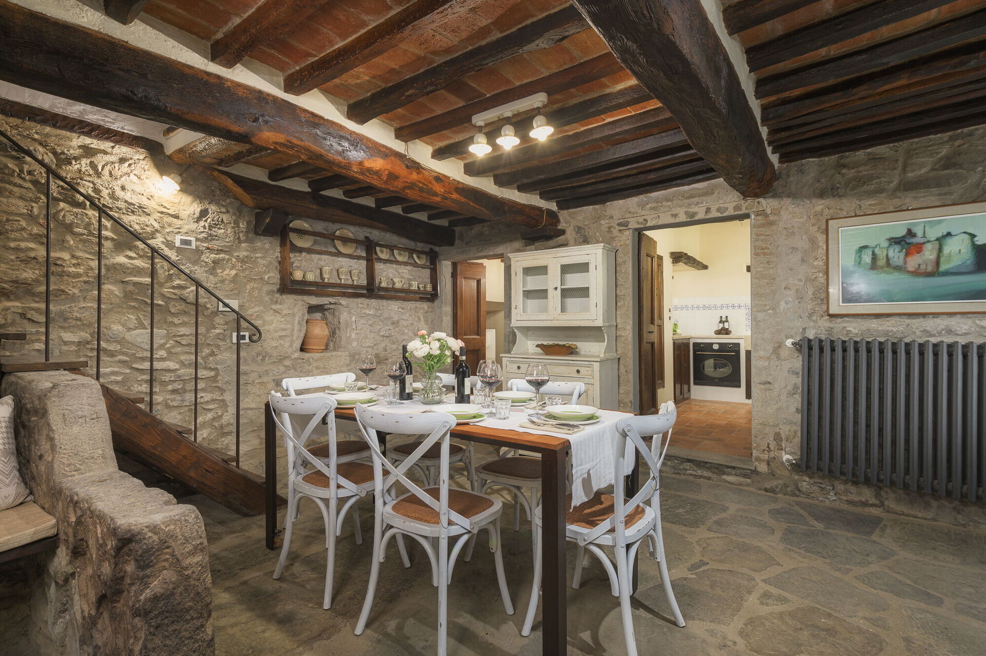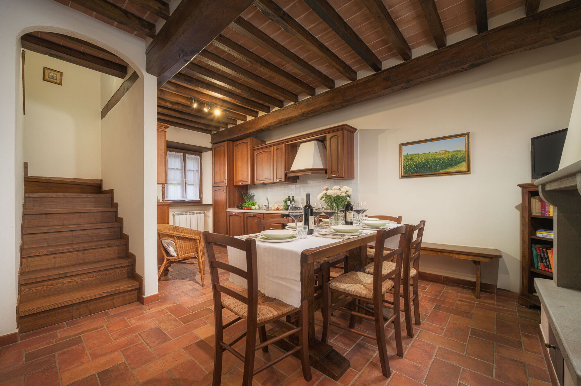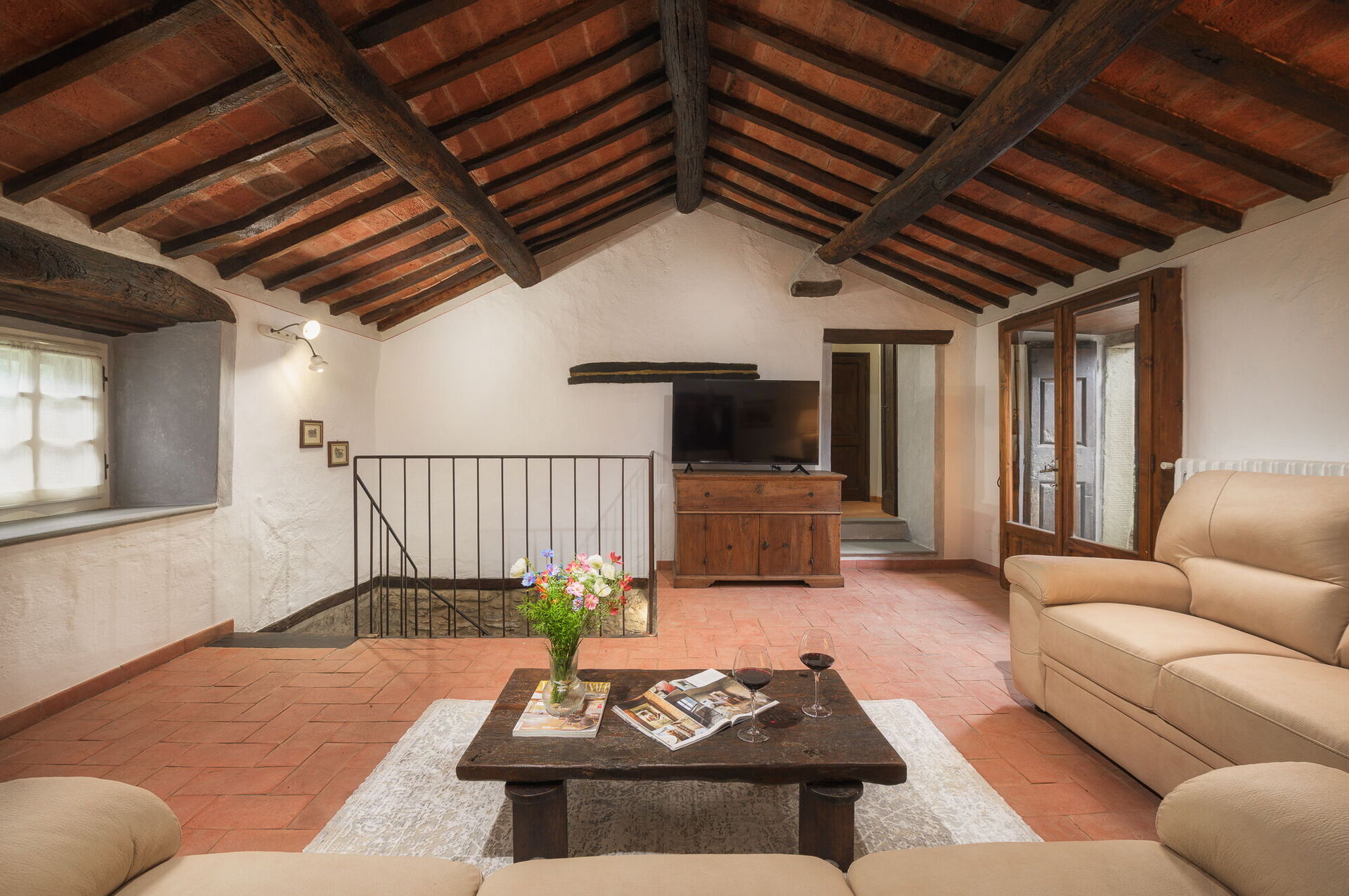 Das Anwesen besteht aus zwei Steinhäusern, die nur wenige Schritte voneinander entfernt liegen und gemeinsam von Freunden oder einer Familien gemietet werden können. Jede Wohneinheit verfügt über drei Schlafzimmer; insgesamt bietet das Anwesen bequem Platz für bis zu 10 Personen in geschmackvoll im typisch toskanischen Stil eingerichteten Zimmern.