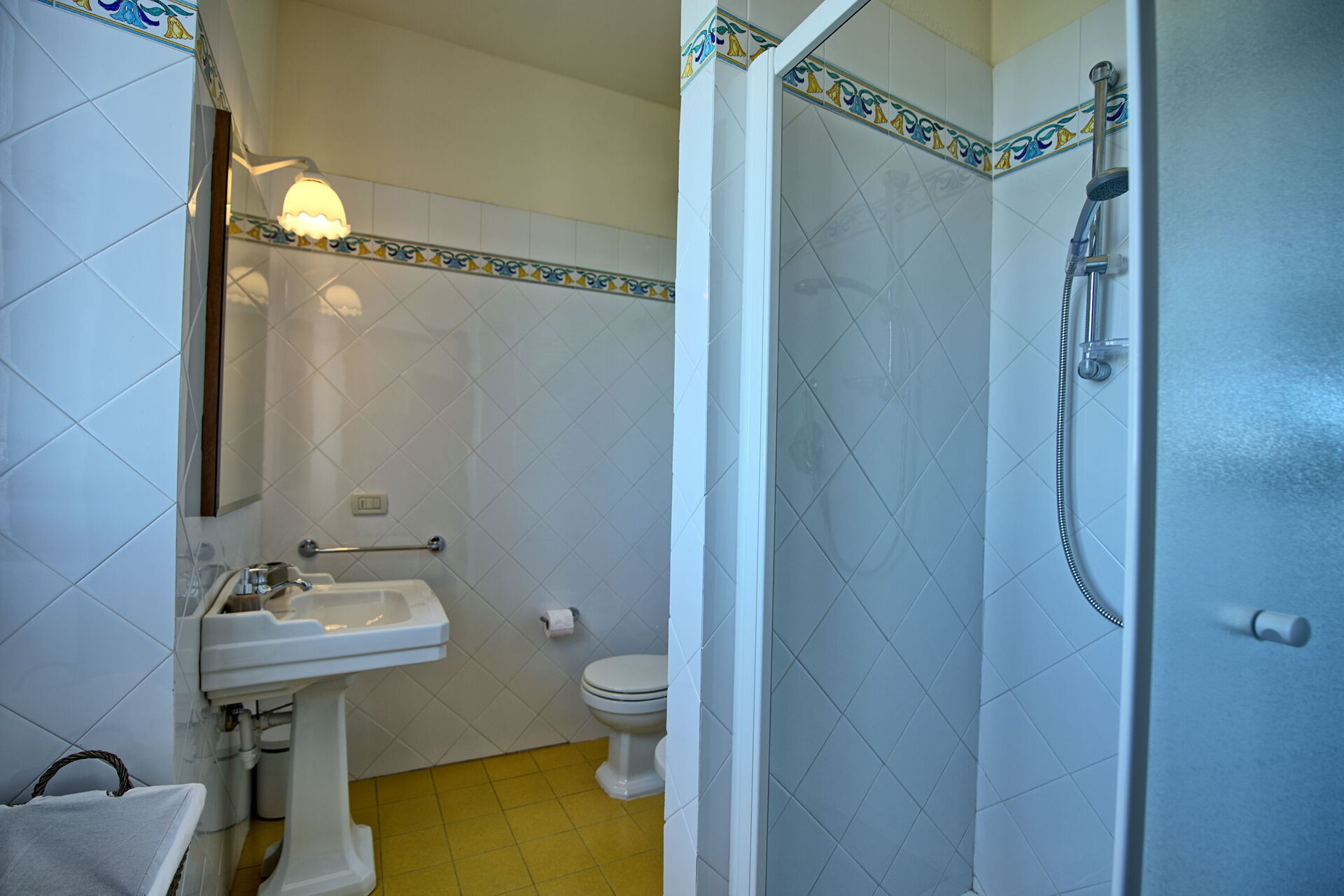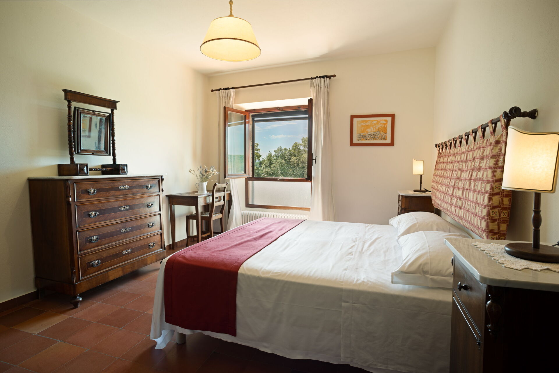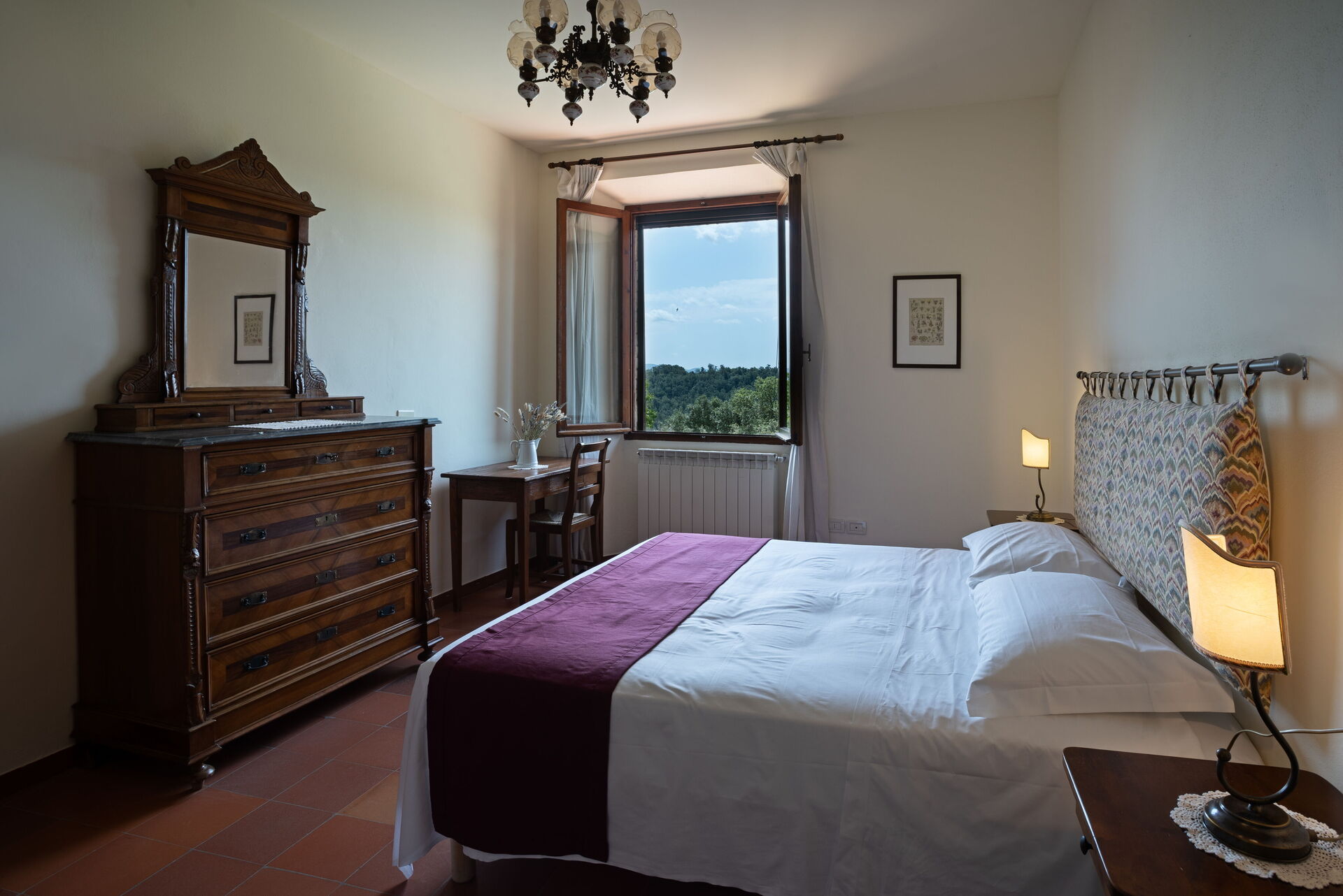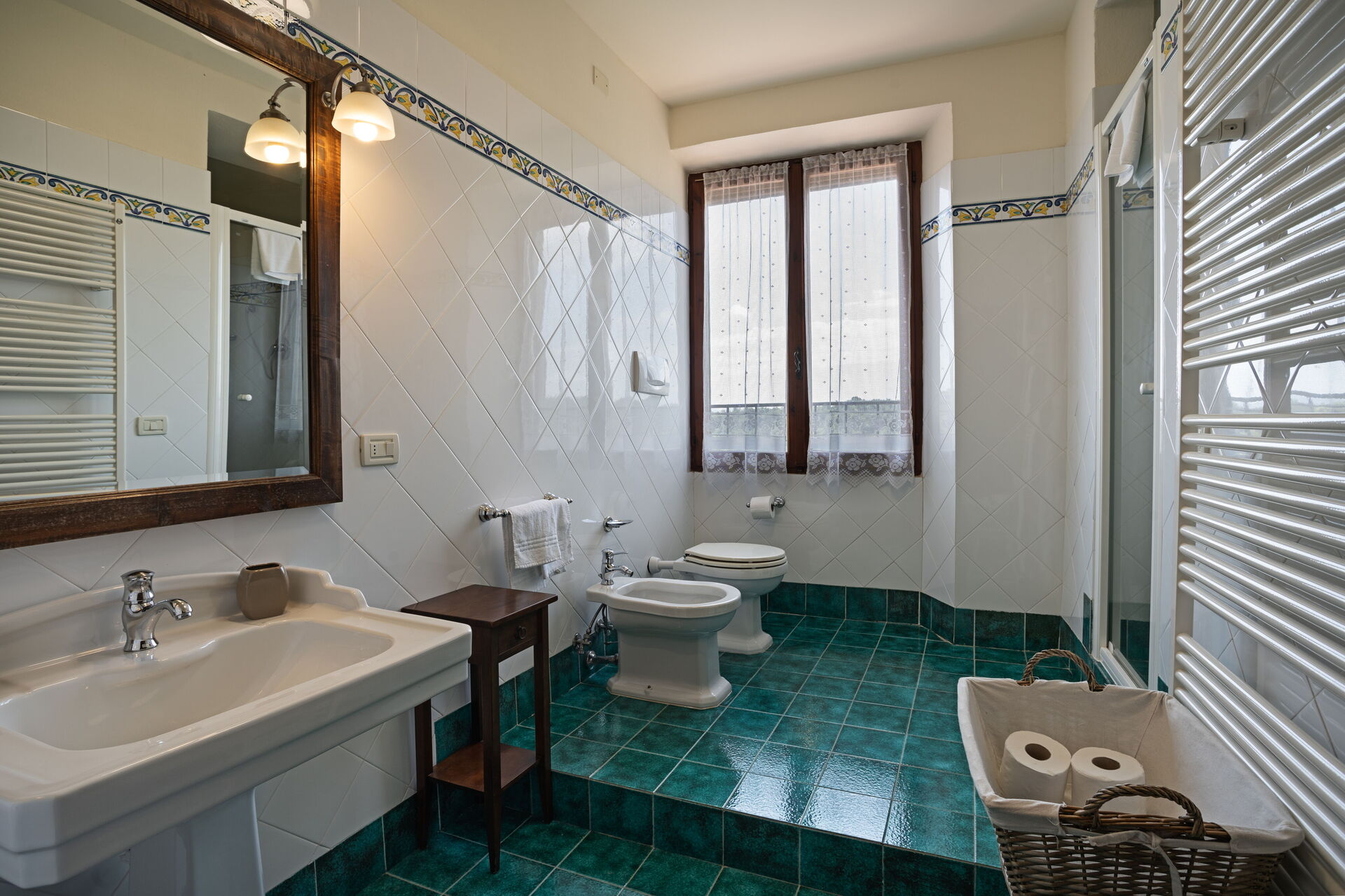 Erster Stock: Doppelzimmer mit Ehebett und privatem Bad mit Dusche, Zweibettzimmer