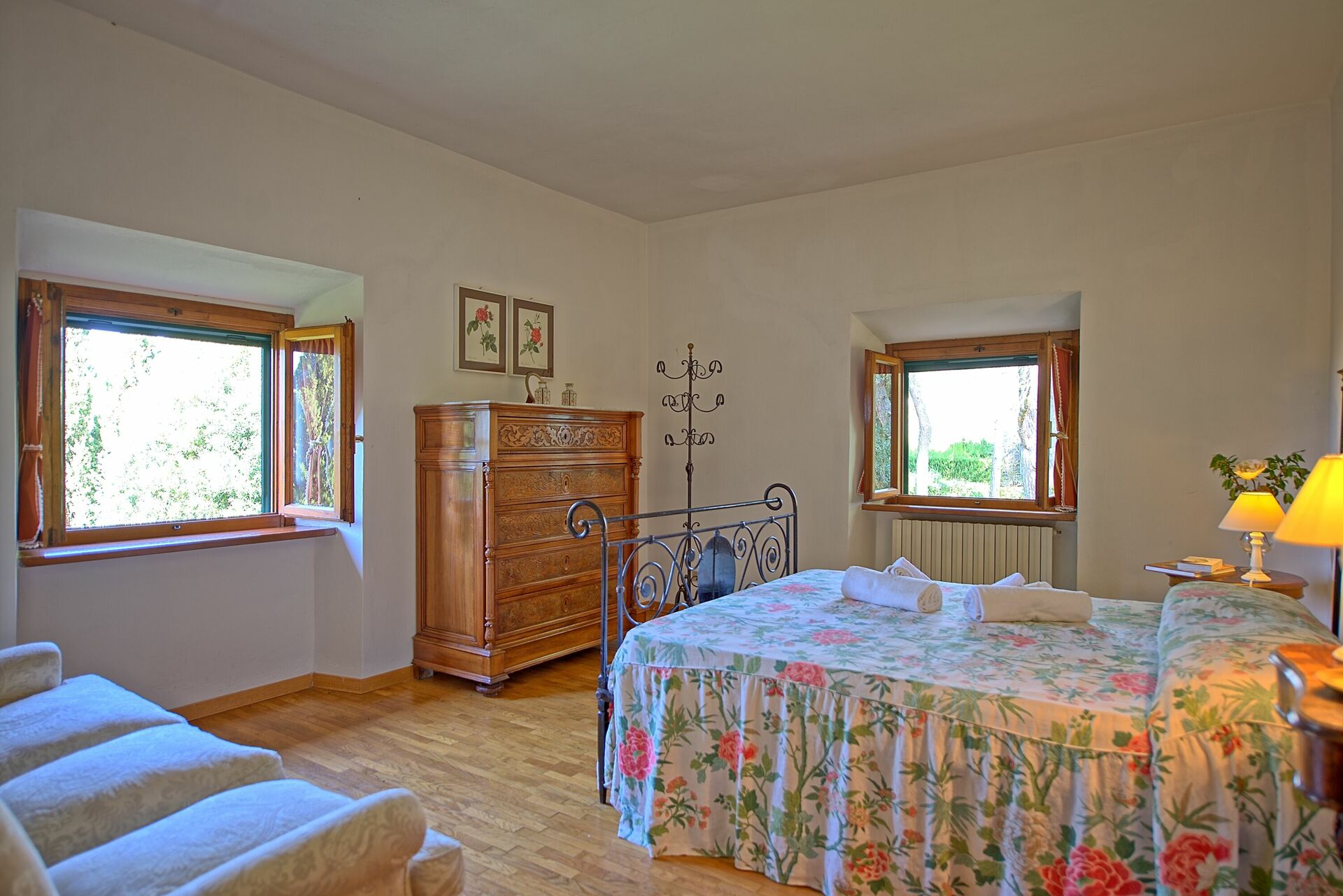 Die Villa Sorbaiano eignet sich perfekt für einen erholsamen Urlaub in der Toskana mit Familie und Freunden: Dank ihrer 10 Zimmer bietet sie bequem Platz für bis zu 20 Personen. Diese große Villa zur Miete befindet sich in einem renommierten landwirtschaftlichen Unternehmen (270 Hektar) mit Öl- und Weinproduktion und bietet ihren Gästen große Innen- und Außenbereiche. Eine große Panoramaterrasse, die für Mahlzeiten im Freien ausgestattet ist, und ein Swimmingpool sind ausschließlich den Gästen vorbehalten.