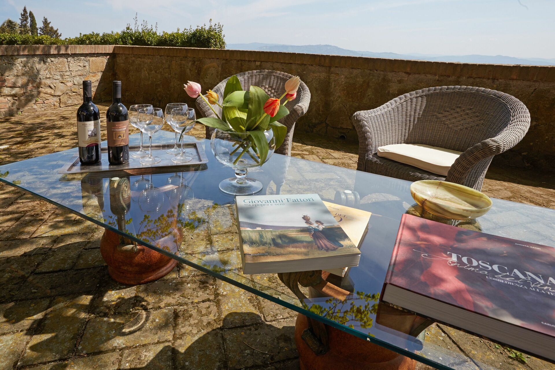 Die Einrichtung der Villa ist im rustikalen toskanischen Stil gehalten und einige Zimmer weisen noch die edlen Merkmale des 19. Jahrhunderts auf, die in den Fresken an einigen Wänden und Decken sichtbar sind.