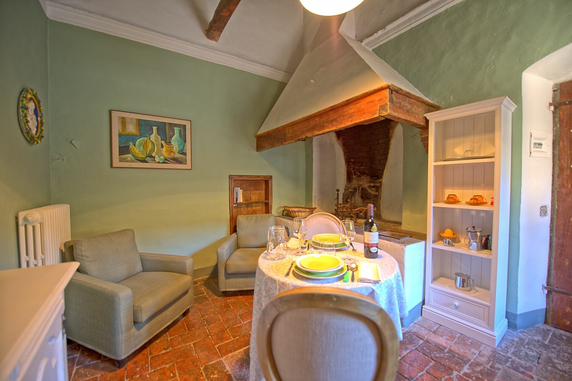 Gentilezza, disponibilità, location stupenda. Il nostro appartamento era dotato di uno splendido camino e di un lavandino in pietra . I bellissimi pavimenti in cotto toscano d’epoca, l’arredamento in stile shabby, ogni particolare curato per rendere calda e confortevole l’atmosfera. La loggia privata, a cui si accedeva da una scala interna alla camera da letto, con vista sul cortile interno era davvero suggestiva. Il bagno moderno, funzionale. L’unica pecca, se dovessi trovare un difetto, è l’eccesso di calcare lasciato sul soffione della doccia. Abbiamo anche cenato al “Ristorantino”, cibo buono decisamente. Un posto incantevole.