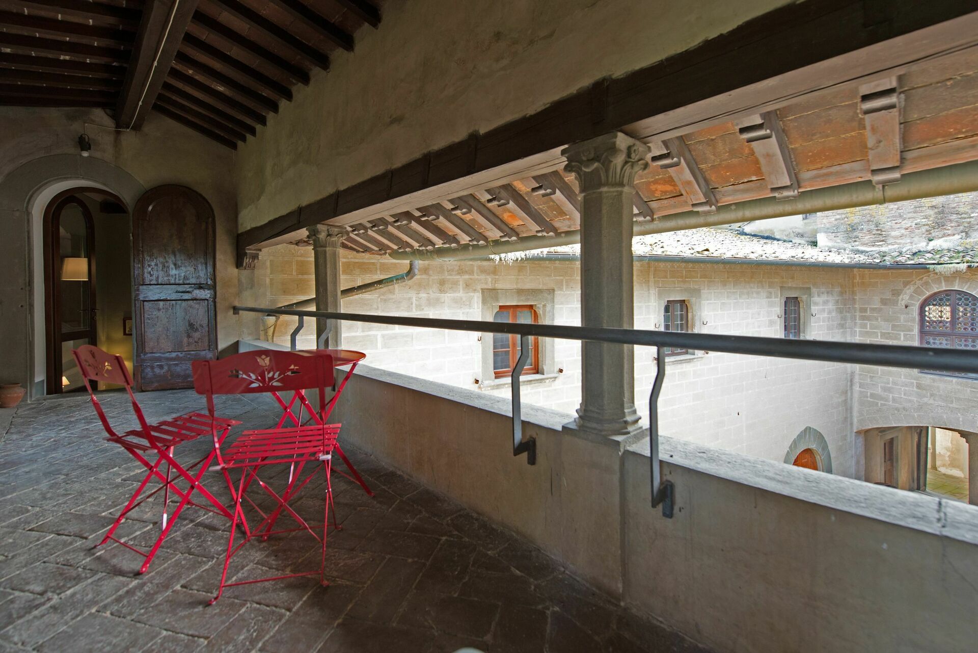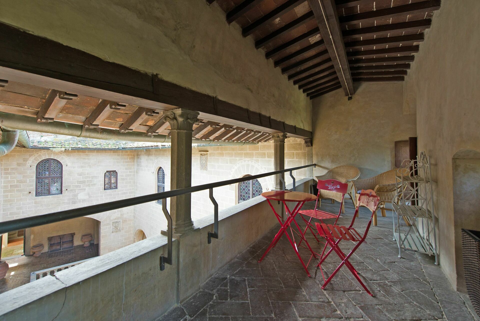 Hübsche Terrasse mit Blick auf den mittelalterlichen Hof.