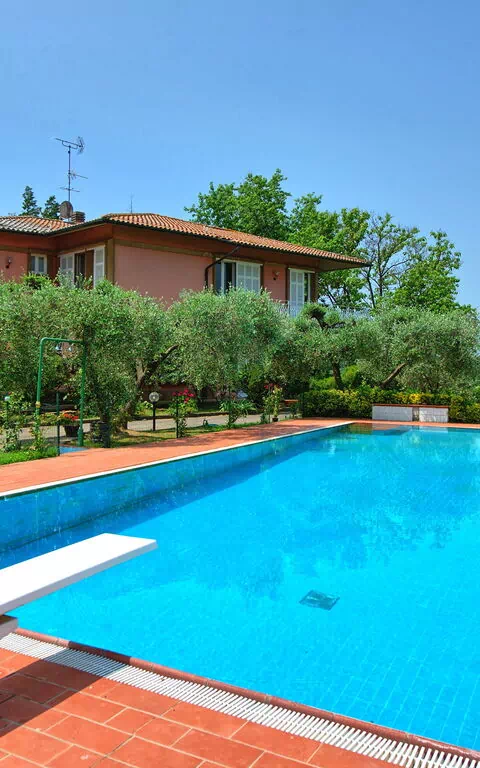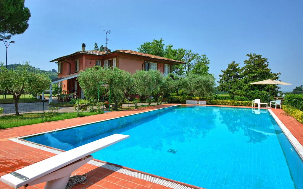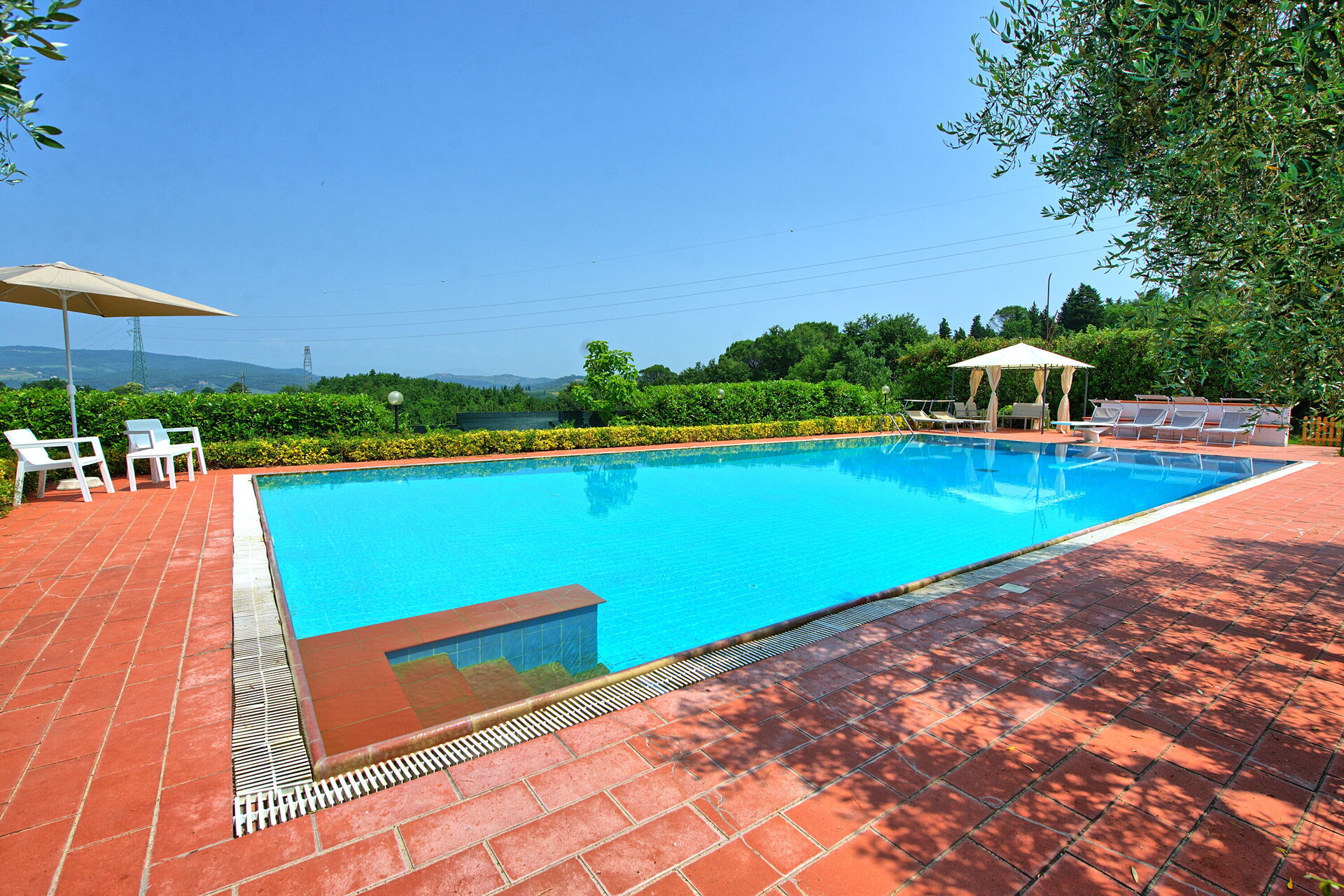 Diese wunderschöne Villa zur Miete für einen Urlaub in der Toskana bietet den Komfort eines Panorama-Schwimmbades, dessen Nutzung ausschließlich den Gästen vorbehalten ist. Die Gäste können entspannte Stunden mit einem eindrucksvollen Blick auf Olivenbäume und Weinberge in der Ruhe der toskanischen Landschaft verbringen. Das Anwesen wurde so ausgestattet, dass jedermann auf seine Kosten kommt: In der Villa Adriana befindet sich ein Platz für Fußball und Tennis mit Nachtbeleuchtung sowie ein Heimtrainer. Ein Grillplatz und eine Veranda mit Tisch und Stühlen runden den Außenbereich ab und eignen sich ideal für Mittag- und Abendessen im Freien. Die Villa