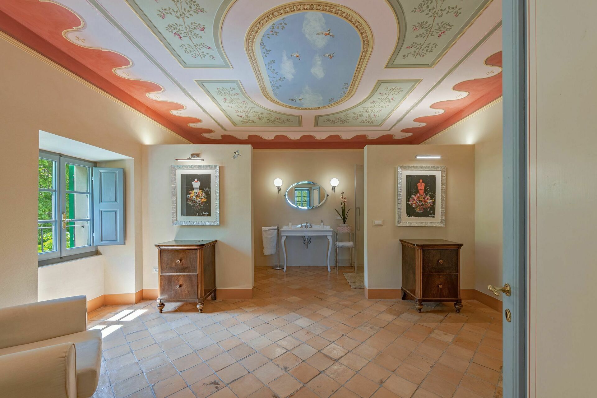 1902 wurde der Palazzo Rosadi erweitert, da die Familie sich vergrößert hatte. Ein Künstler der Region, Giangio aus Monterchi, wurde engagiert, um die meisten Schlafzimmer und Flure zu dekorieren.