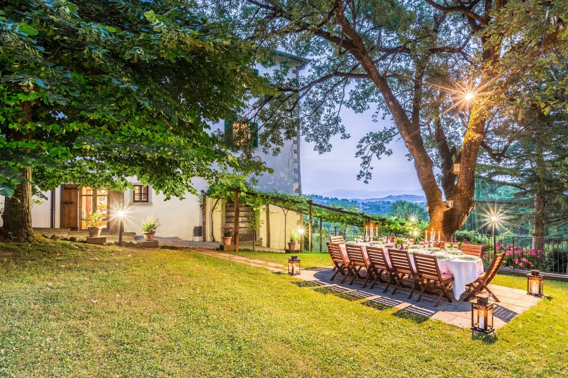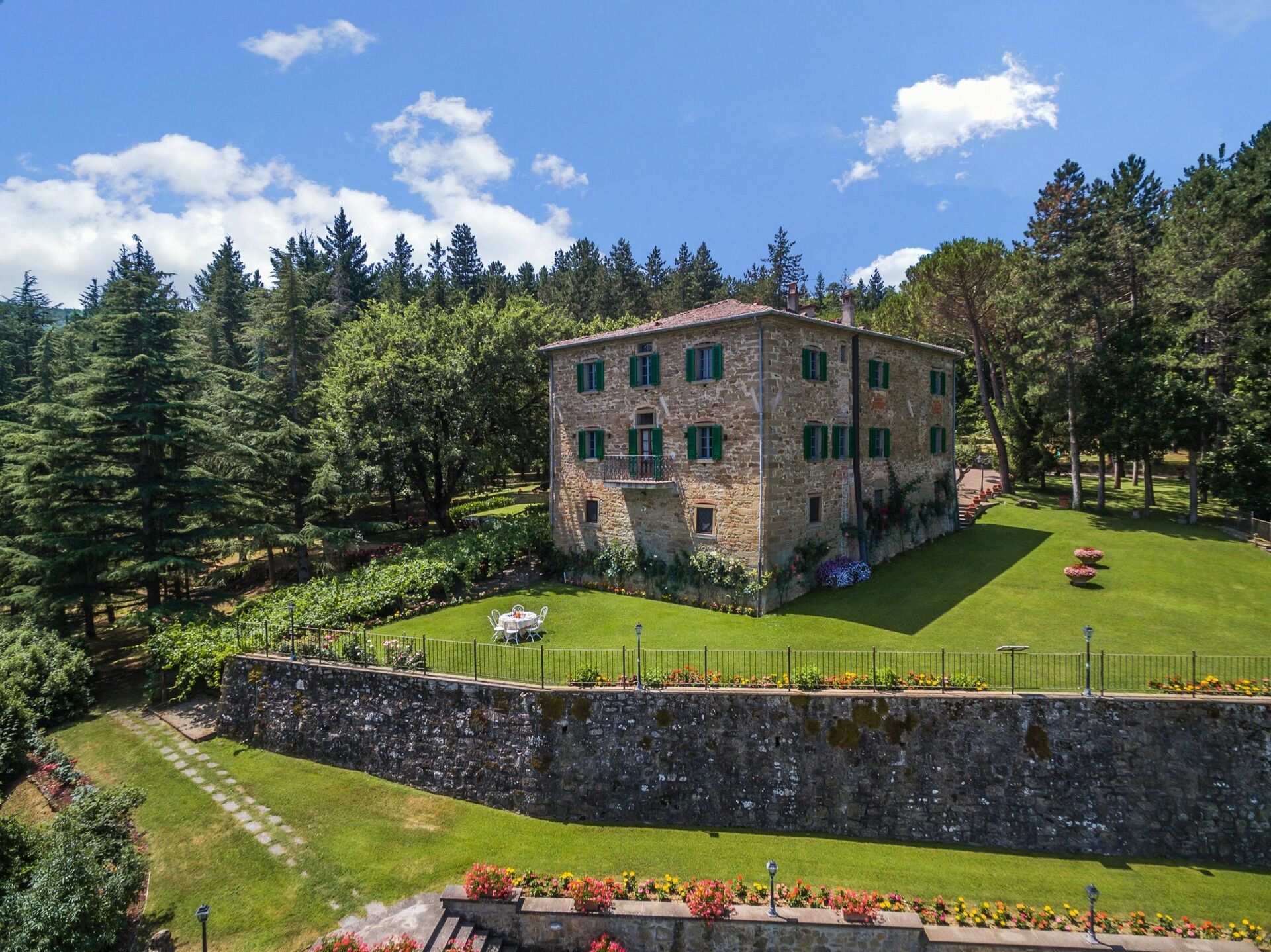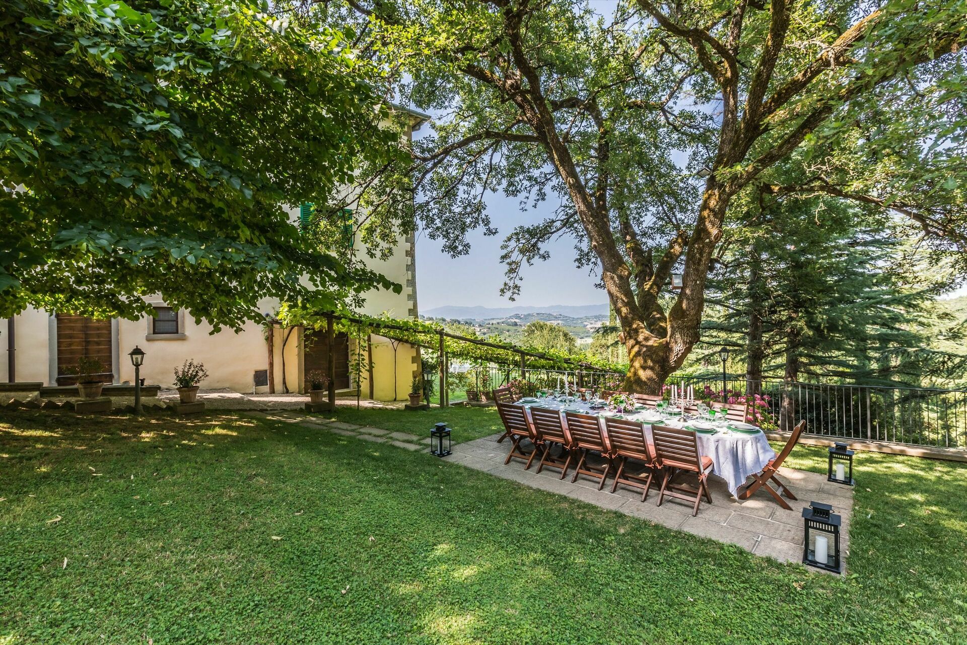 Auf natürlich grünen Pfaden kann man in den üppigen Wäldern spazieren oder joggen gehen und das weitläufige Anwesen (25 ha), das das Ferienlandhaus mit privatem Schwimmbad in der Toskana umgibt, durchstreifen.