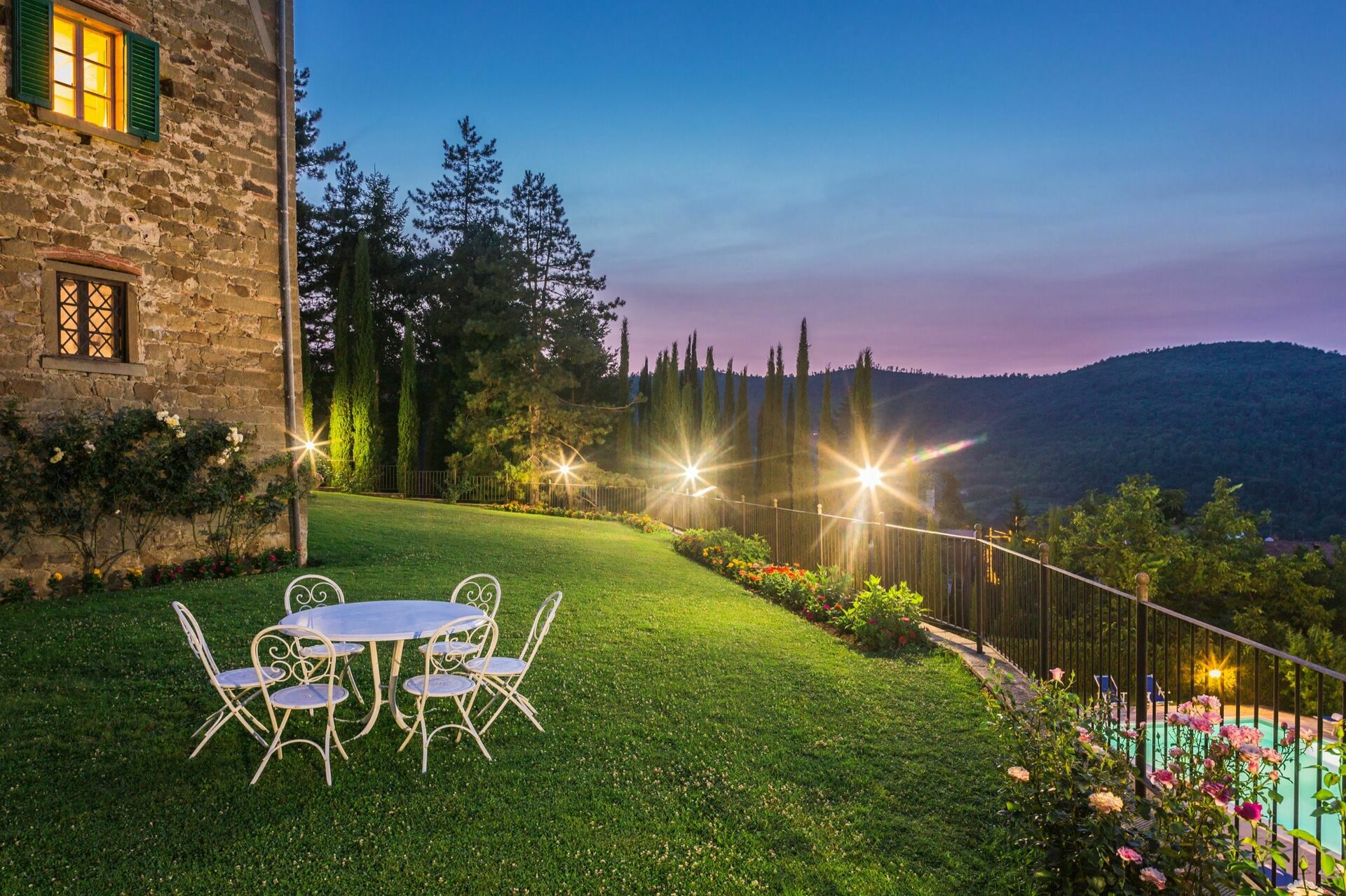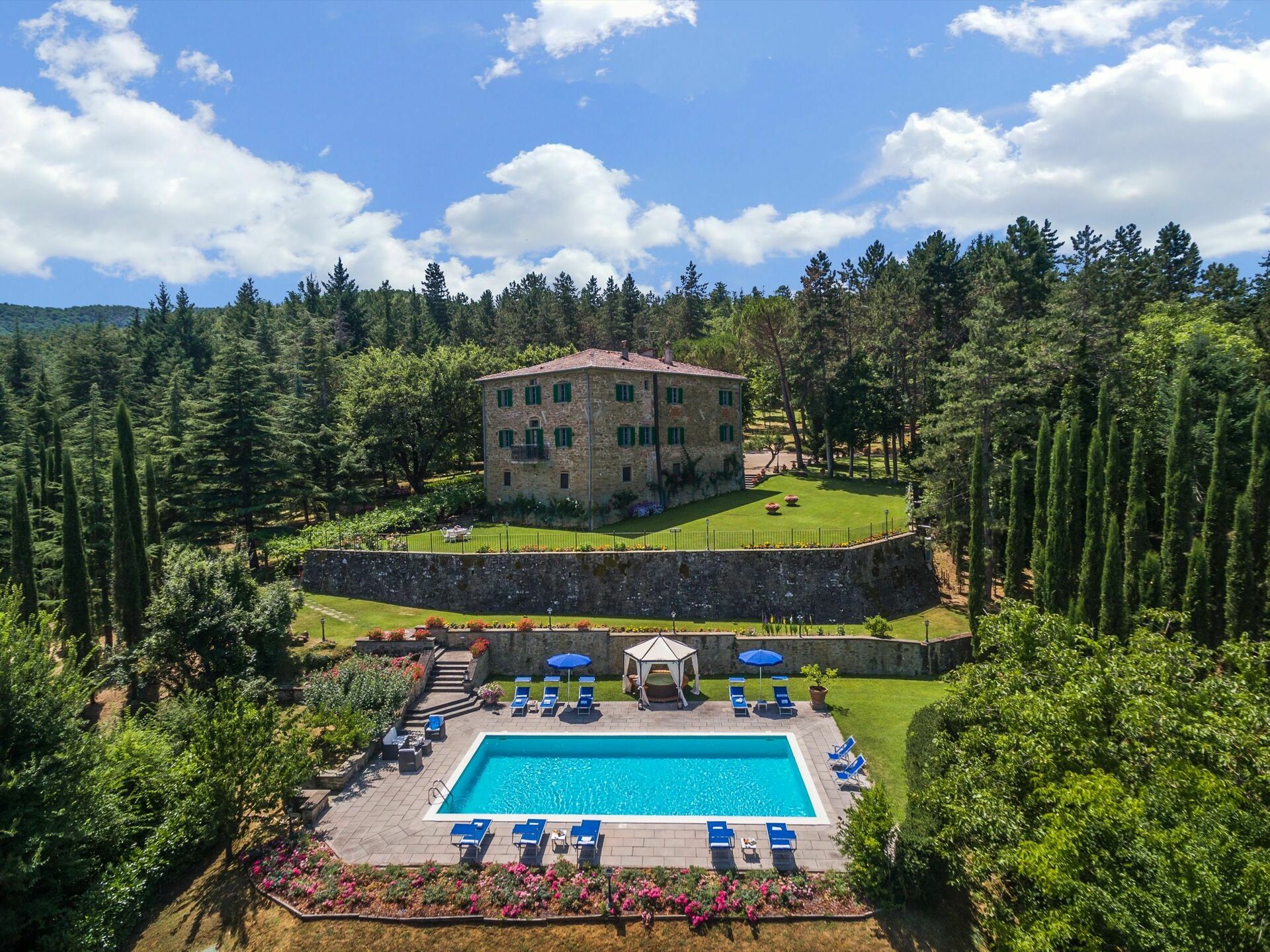 Das luxuriöse Ferien- Landhaus mit privatem Schwimmbad ist herrlich gelegen in der Nähe des Dörfchens Monterchi (bei Arezzo) und bietet 6 sehr schön ausgestattete Schlafzimmer, teilweise mit Wand-und Deckenmalerei, 7 luxeriöse Bäder, einen grossen Garten mit einem großen und wunderschönen Schwimmbad (12 x 6m; geöffnet vom 1. Mai bis 30. September), das den ganzen Tag in der Sonne liegt und sich gut erwärmt und von dem aus man einen traumhaften Blick geniessen kann (auf Anfrage kann die Öffnung des Schwimmbads vorgezogen- und verlängert werden).