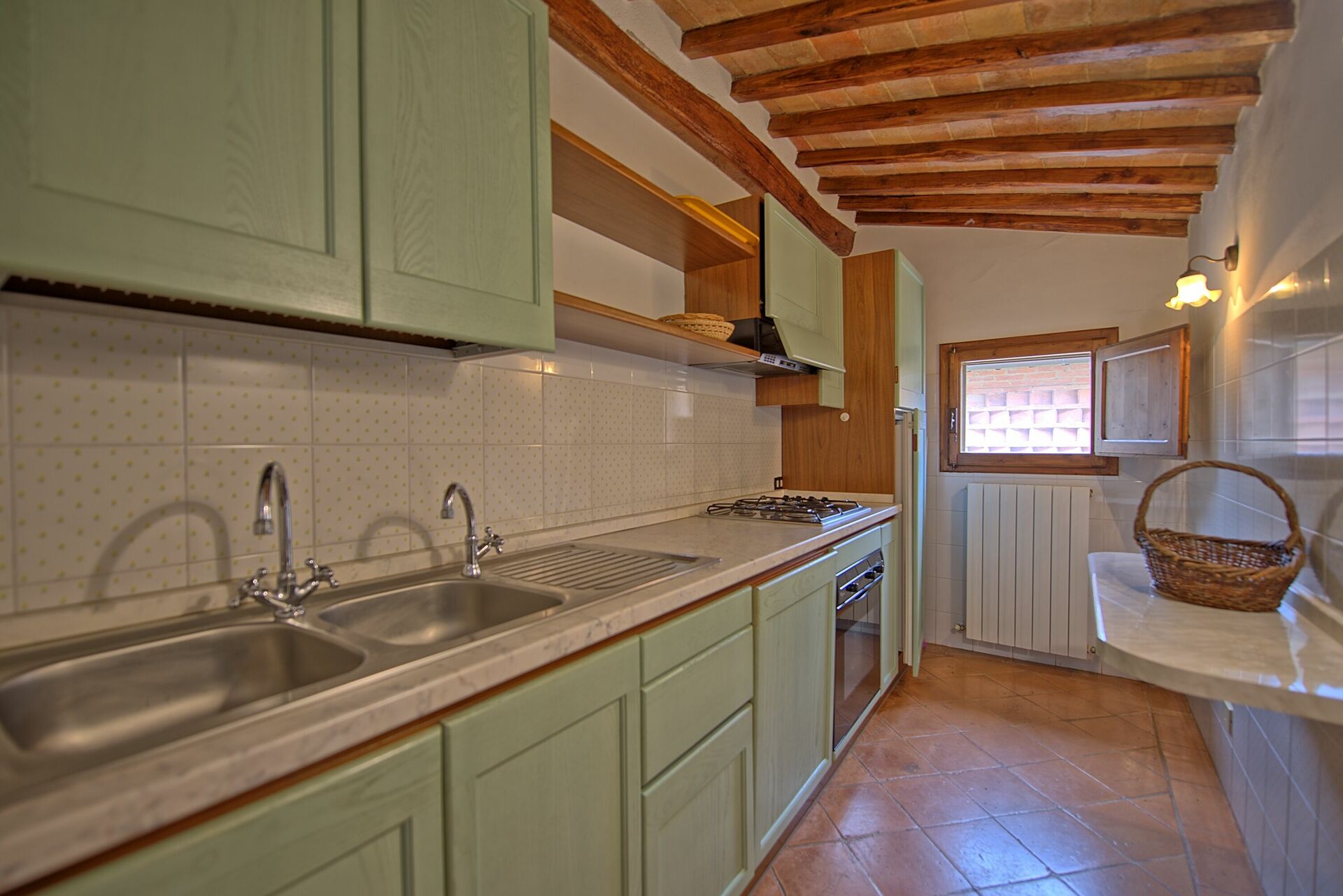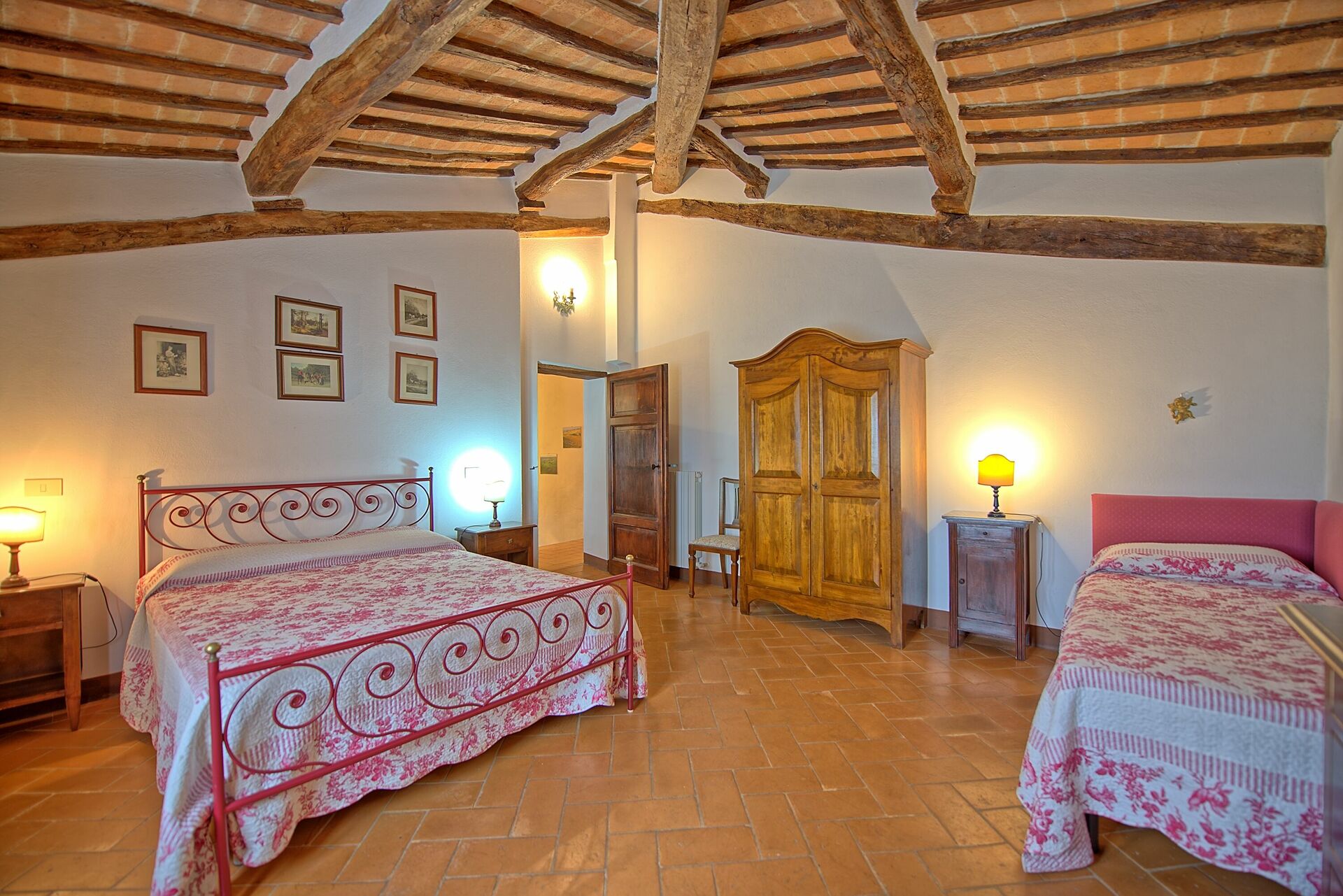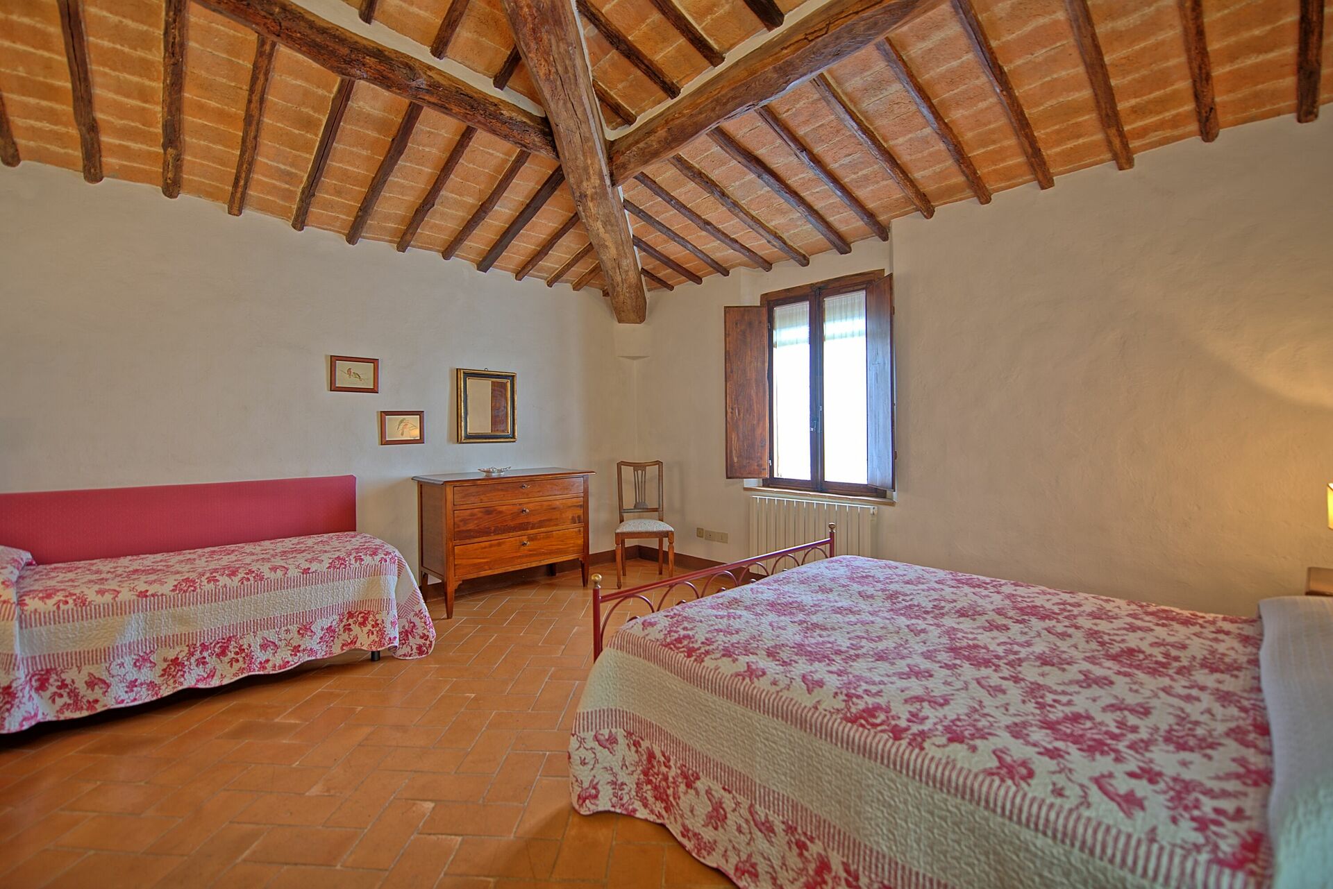 1.Stock:Doppelzimmer mit kleinem, privaten Bad mit Dusche, Doppelzimmer mit Einzelbett, Bad mit Dusche. San Donnino 1 und San Donnino 5 können miteinander verbunden werden.