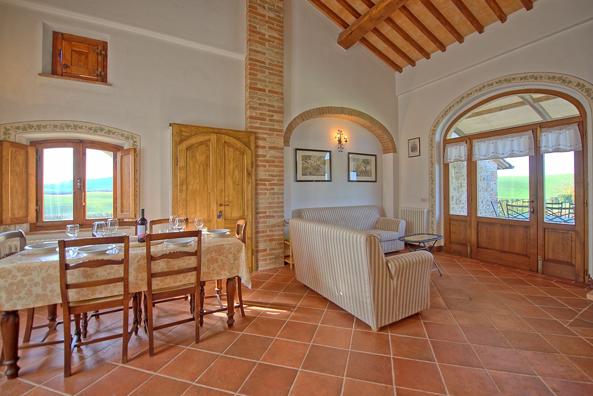 Schöne Ferienwohnung inmitten typischer Toskanalandschaft mit Fernblick auf Siena.