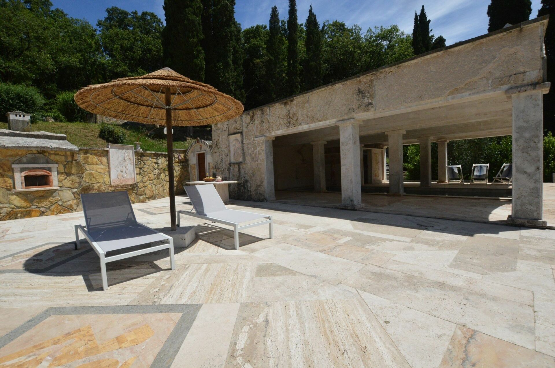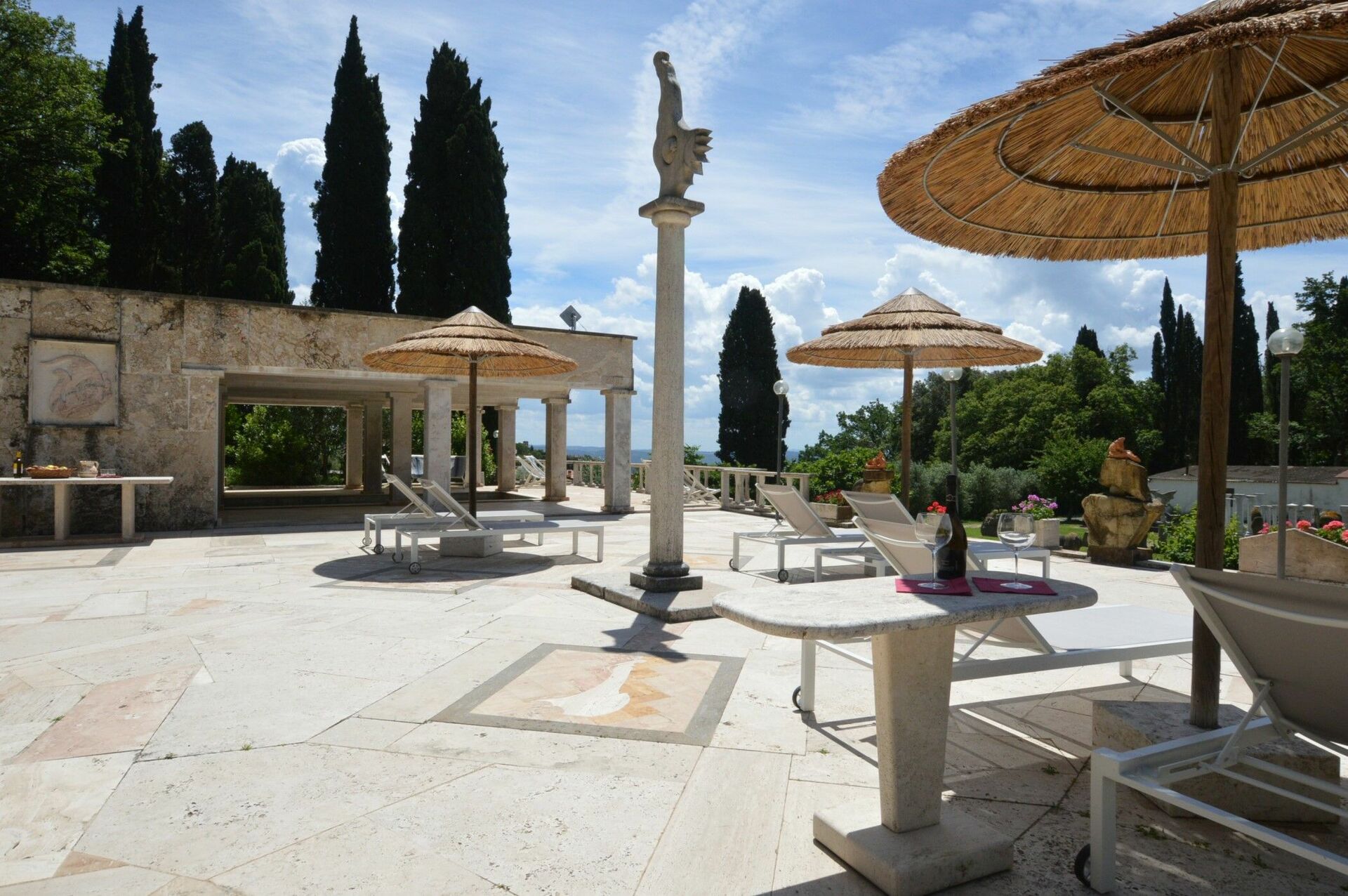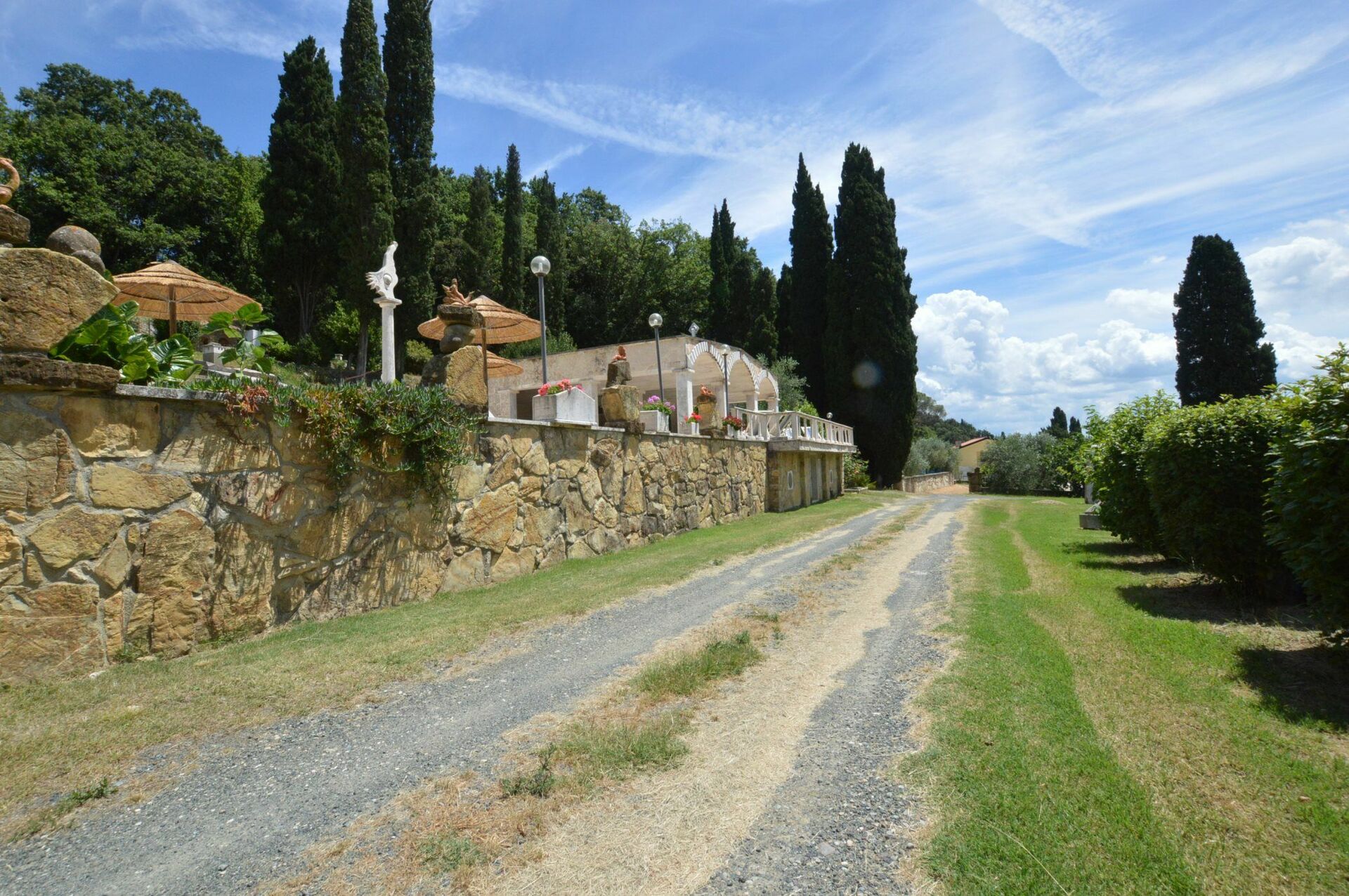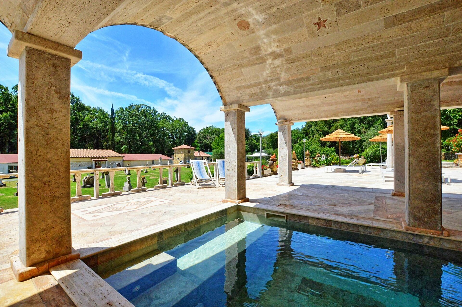 Die Anlage besteht aus acht individuellen Wohneinheiten, die sich auf einem 10 Hektar großen Anwesen im Besitz eines renommierten italienischen Bildhauers von internationalem Ruhm befinden. Im Park sind zahlreiche seiner Werke zu sehen und seine Werkstattbefindet sich auch dort. Der Eigentümer bewohnt die Hauptvilla des Anwesens.