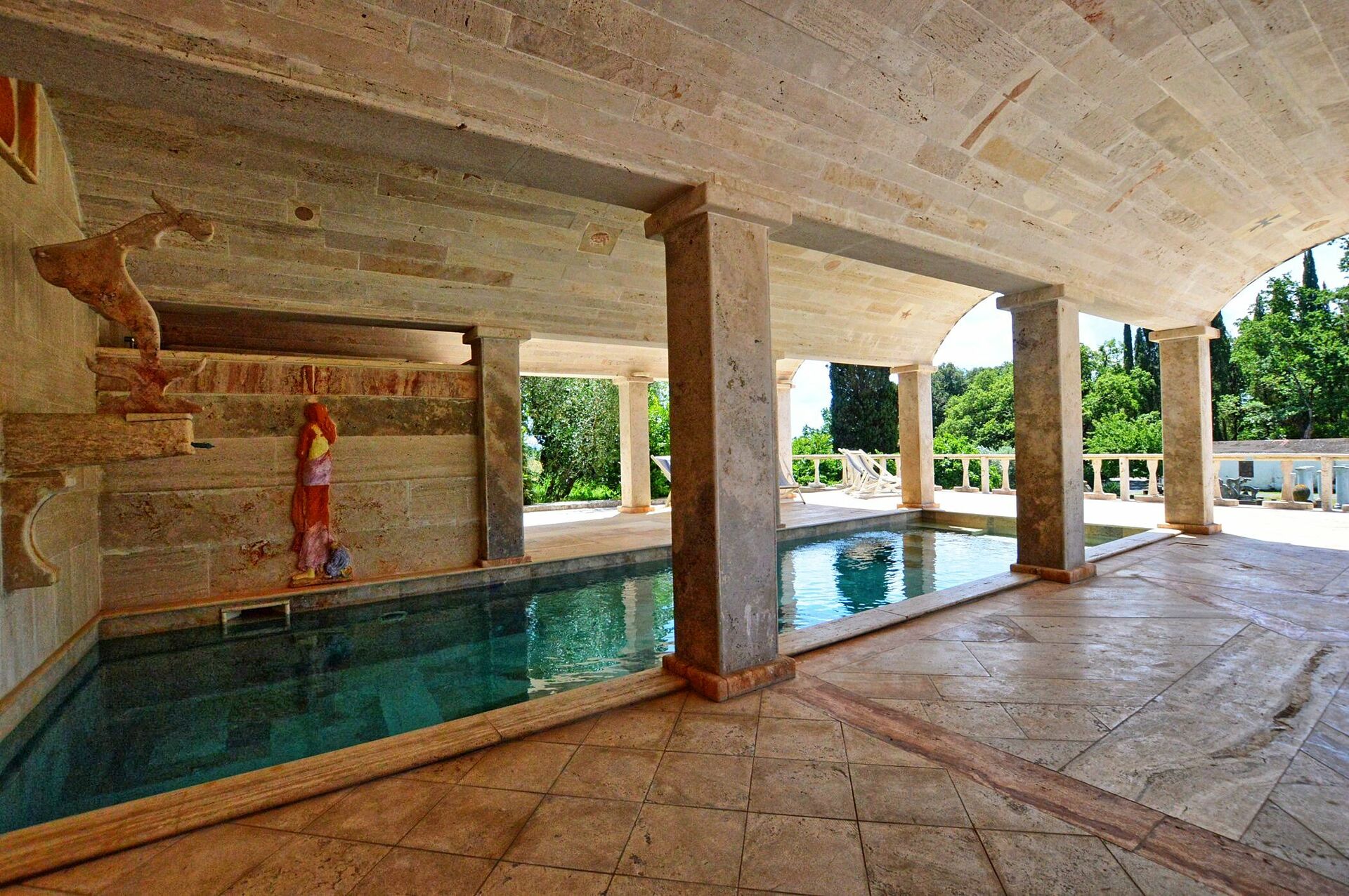 Die Renovierung und Einrichtung aller acht Wohneinheiten wurde persönlich vom Bildhauer überwacht, der seine Werke und sein Lieblingsmaterial Travertin verwendete. Die Bäder, Küchen, Treppen und Fußböden sind aus Travertin gefertigt.