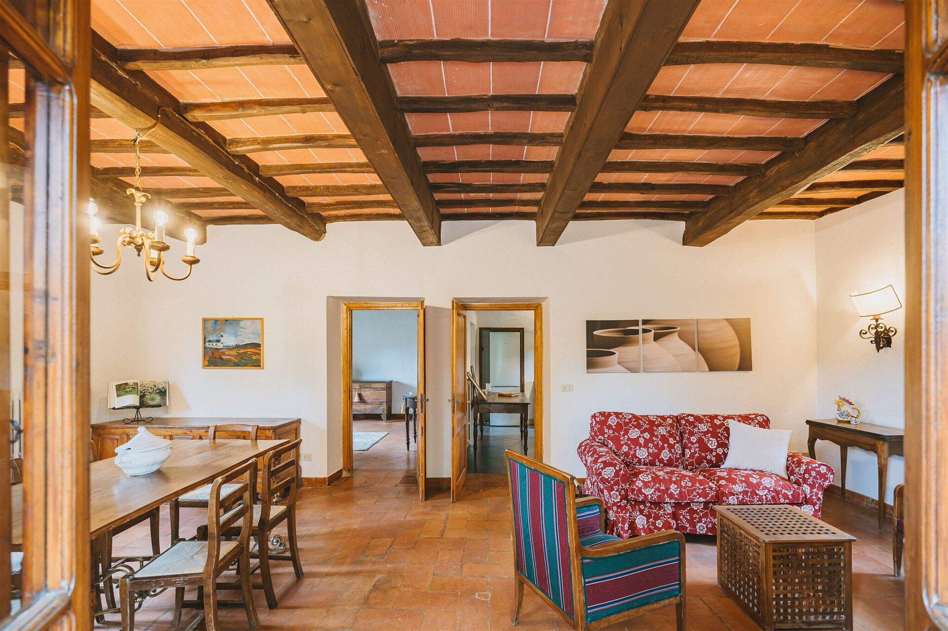 Erdgeschoss: Wohnzimmer mit Essbereich und Kamin, Küche (Herd, Backofen, Gefrierschrank, Kühlschrank, Geschirrspüler, Mikrowelle, Kaffeemaschine), Badezimmer mit Dusche, zweites Wohnzimmer. Obergeschoss: 3 Doppelzimmer, 2 Badezimmer mit Dusche. Alle Schlafzimmer verfügen über Klimaanlage und Moskitonetze.