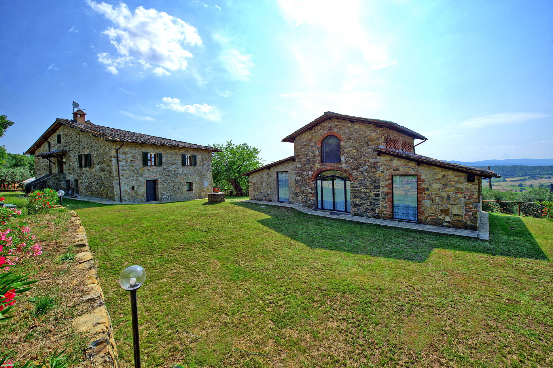 Dieses typisch toskanische Landhaus mit sechs Schlafzimmern und vier Badezimmern liegt auf den Hügeln des Chianti, oberhalb von Arezzo. Es bietet einen atemberaubenden Blick auf die umliegenden Wälder, Felder und Weingüter.