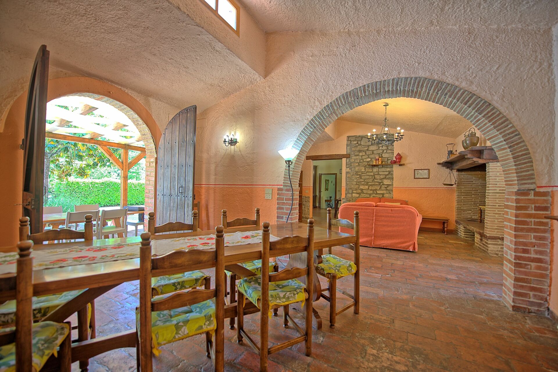 Mit seinen 5 Schlafzimmern bietet das Haus bequem Platz für bis zu 9 Personen und dank der großen Außenbereiche mit Schwimmbad, Garten und Tennisplatz ist viel Freude und Unterhaltung garantiert. Nur 150 m vom Haus entfernt befindet sich eine Bar und Pizzeria.