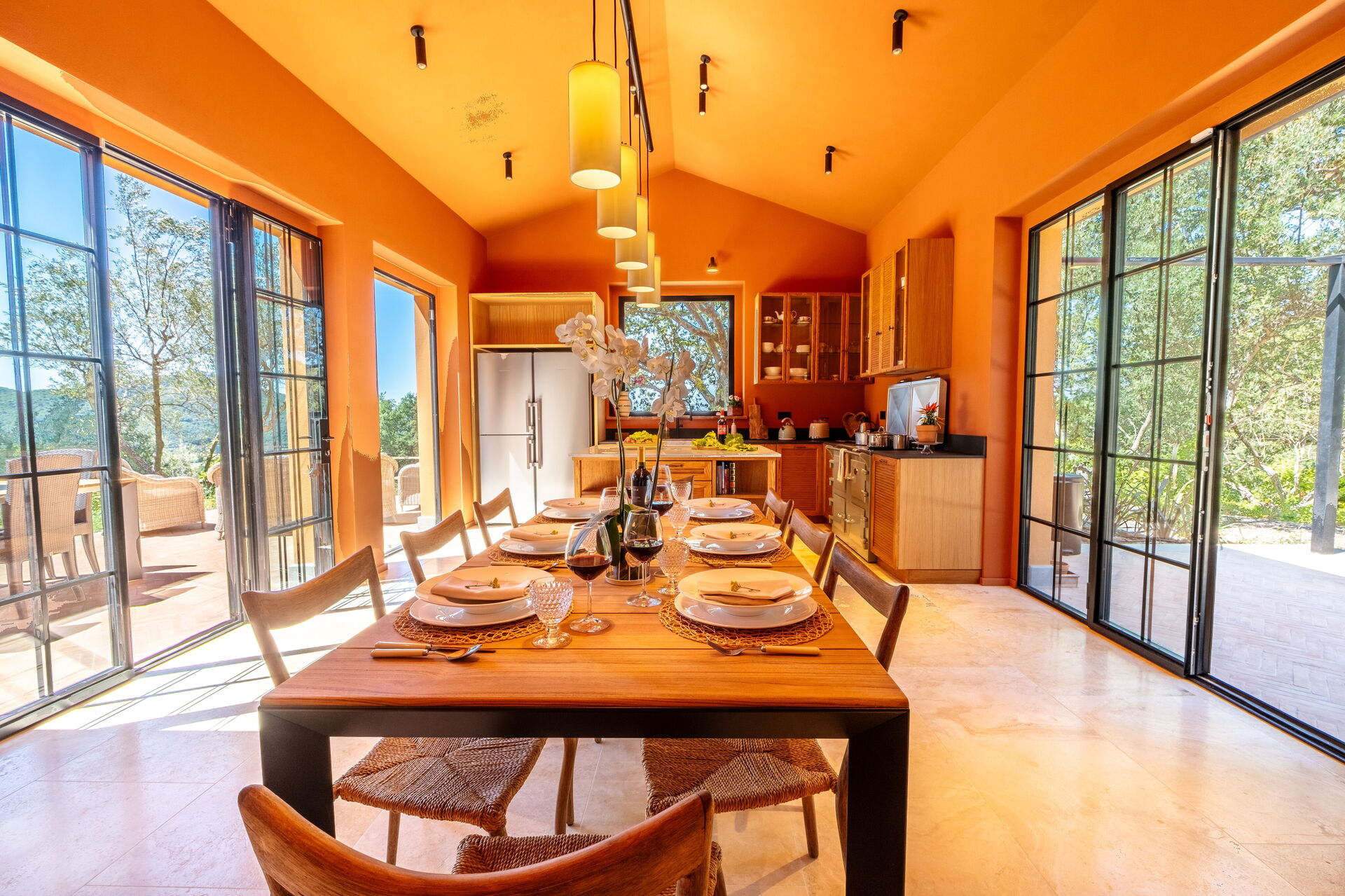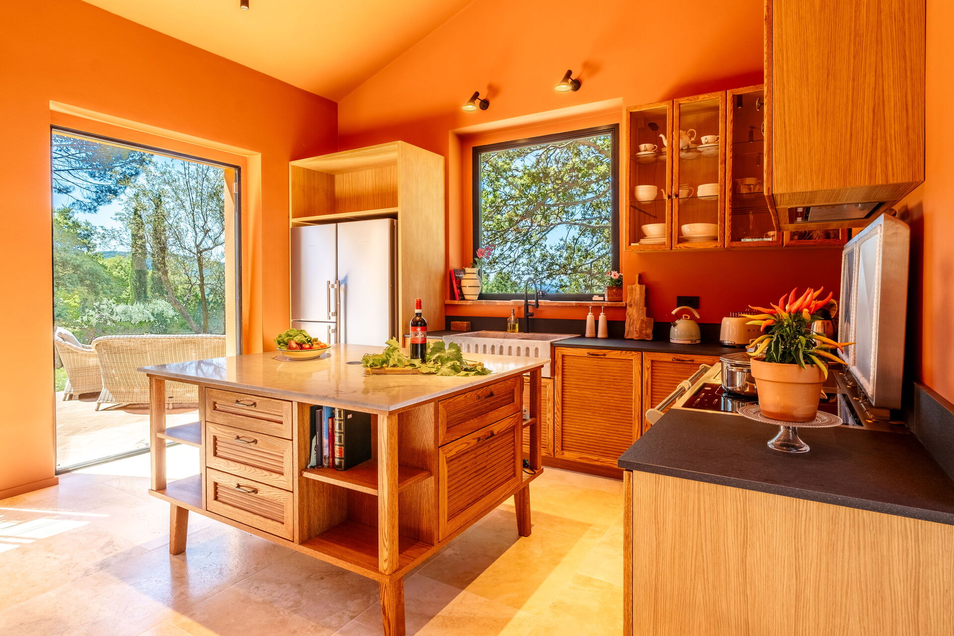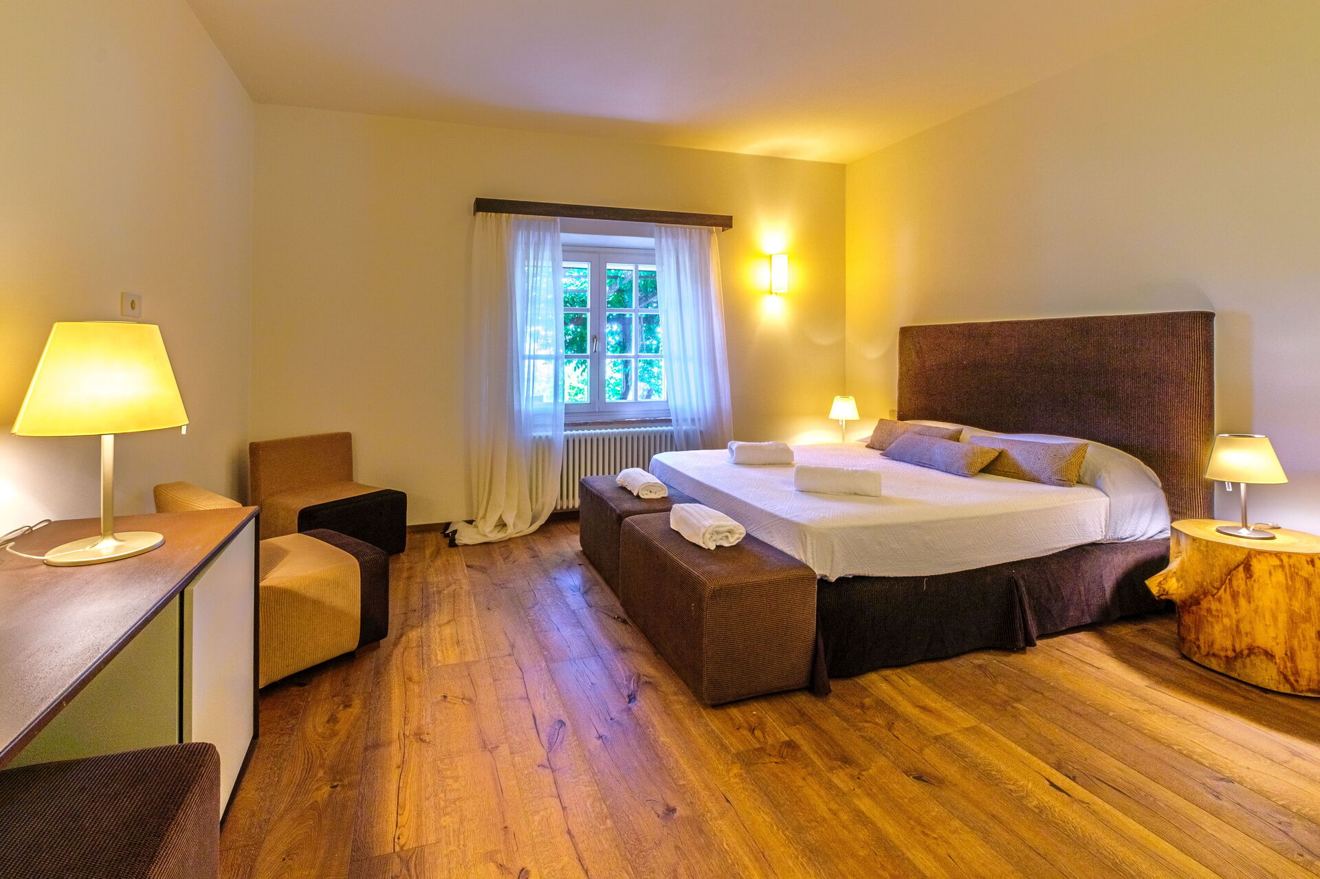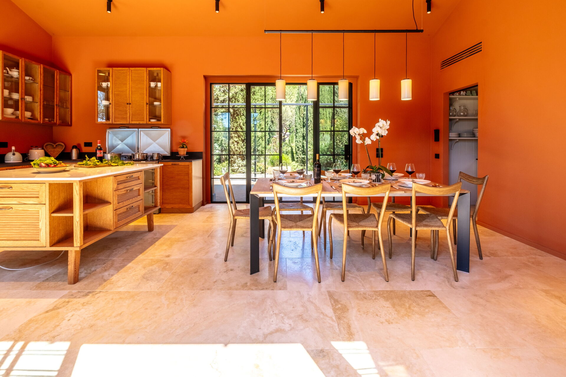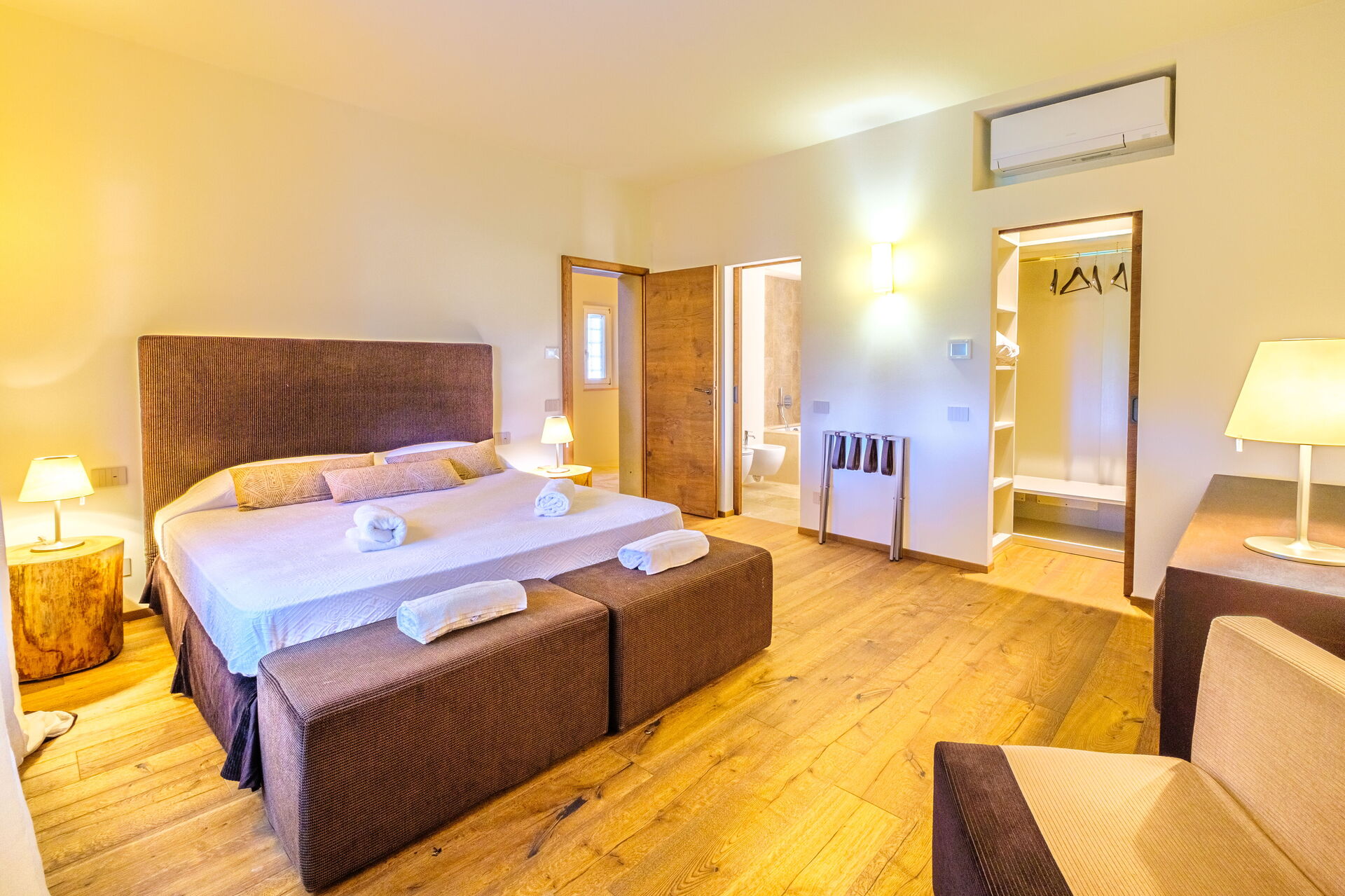 Erdgeschoss: großes Wohnzimmer mit Kamin (Smart-TV), helles Esszimmer und Küche (Induktionskochfeld, Backofen, Kühlschrank, Gefrierschrank, Spülmaschine, Weinkühlschrank, Toaster, Espressomaschine, Filterkaffeemaschine), Waschküche (Waschmaschine, Trockner und Bügeleisen), Doppelzimmer (auf Anfrage in 2 Einzelbetten umwandelbar: Bettengröße: 90x195 cm, Klimaanlage) mit privatem Badezimmer mit Dusche; Doppelzimmer (Kingsize-Bett: Bettengröße: 180x200 cm, Klimaanlage) mit privatem Badezimmer mit Dusche, Zugang zum Garten; Doppelzimmer (Kingsize-Bett: Bettengröße: 180x200 cm, Klimaanlage) mit privatem Badezimmer mit Dusche, Doppelzimmer (Kingsize-Bett: Bettengröße: 180x200 cm, Klimaanlage) mit begehbarem Kleiderschrank, privatem Badezimmer mit Dusche und Badewanne, Doppelzimmer (Kingsize-Bett: Bettengröße: 180x200 cm, Klimaanlage) mit privatem Badezimmer mit Dusche (ohne Bidet, ohne Fenster), Zugang zum Garten.