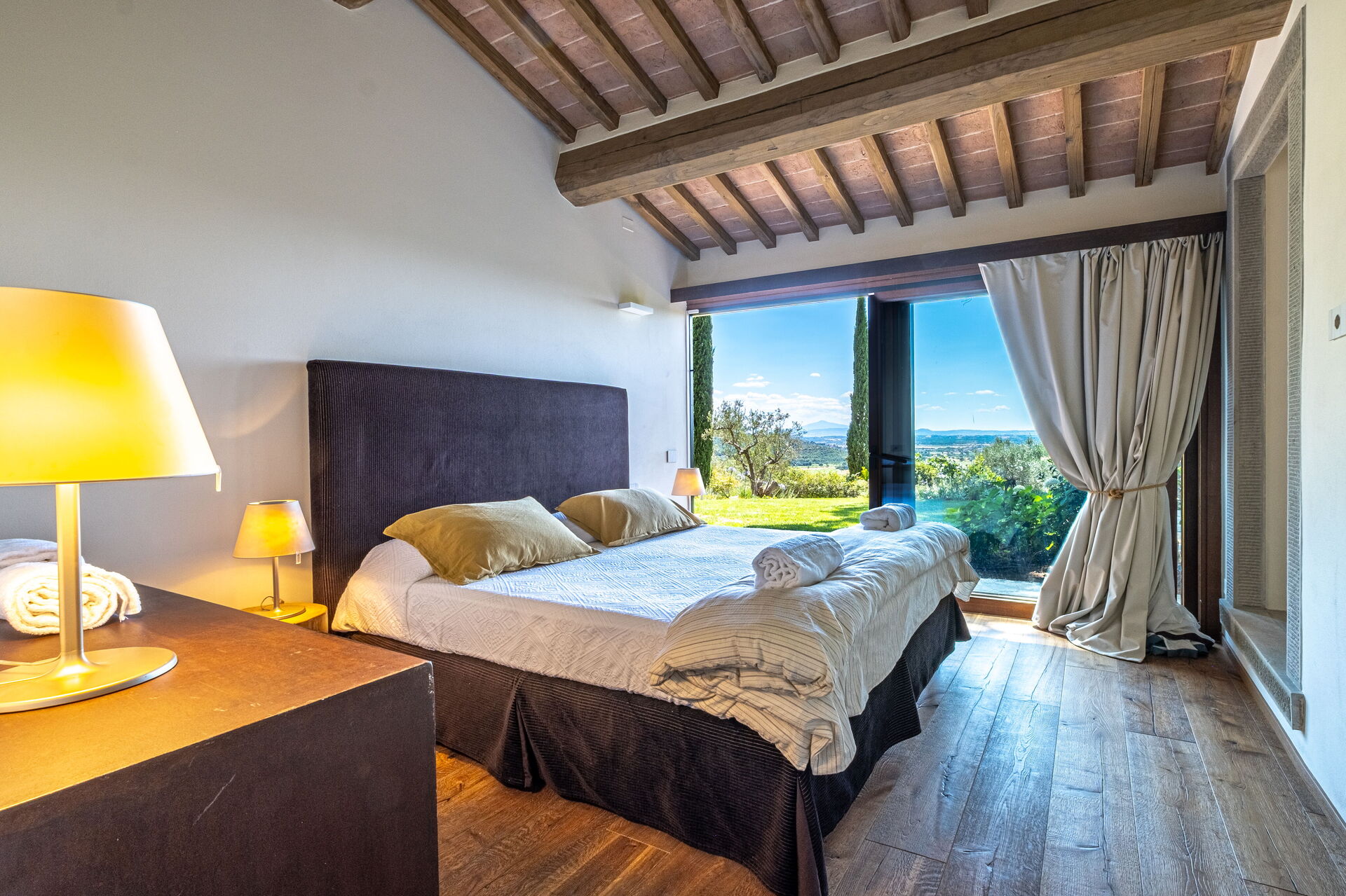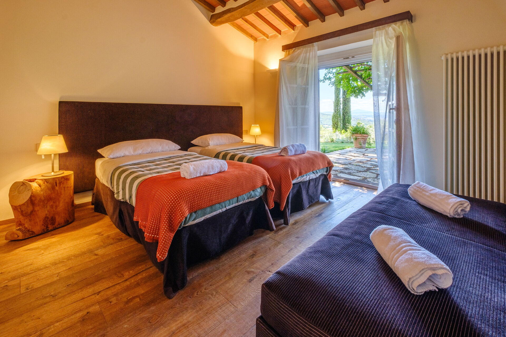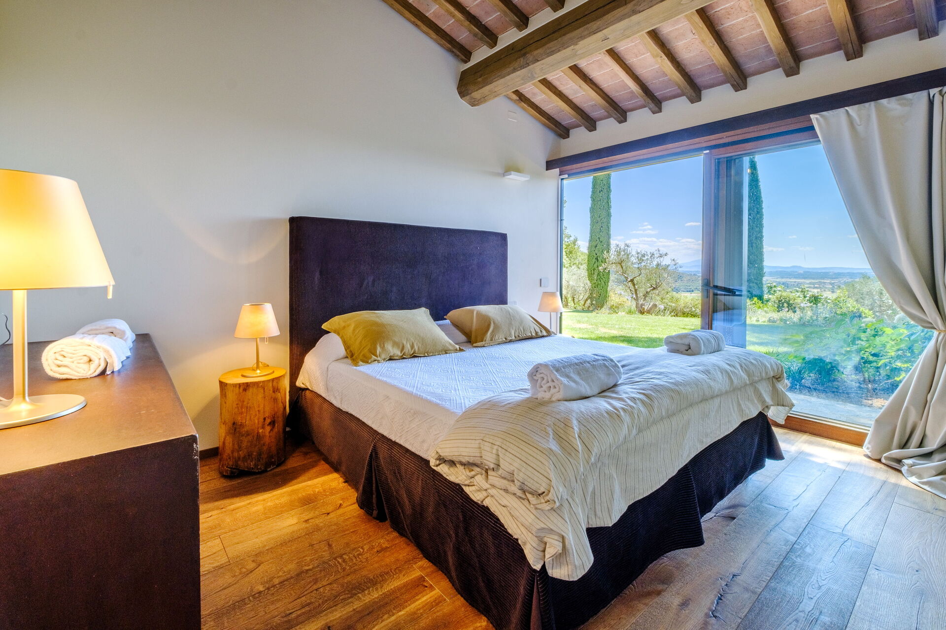 Dieses exklusive Anwesen ist geschmackvoll und elegant eingerichtet; es ist komfortabel und mit modernem Komfort ausgestattet, wobei die ursprünglichen architektonischen Merkmale toskanischer Bauernhäuser (Sichtbalken, Verwendung von Holz und lokalem Stein) respektiert wurden. Die Villa Roseto erstreckt sich über eine einzige Ebene, verfügt über 5 Schlafzimmer und kann bequem 10 Personen beherbergen; gemütliche Gemeinschaftsbereiche ermöglichen Ihnen einen angenehmen und unvergesslichen Aufenthalt in der Nähe von Cortona in Gesellschaft von Freunden und Familie.
