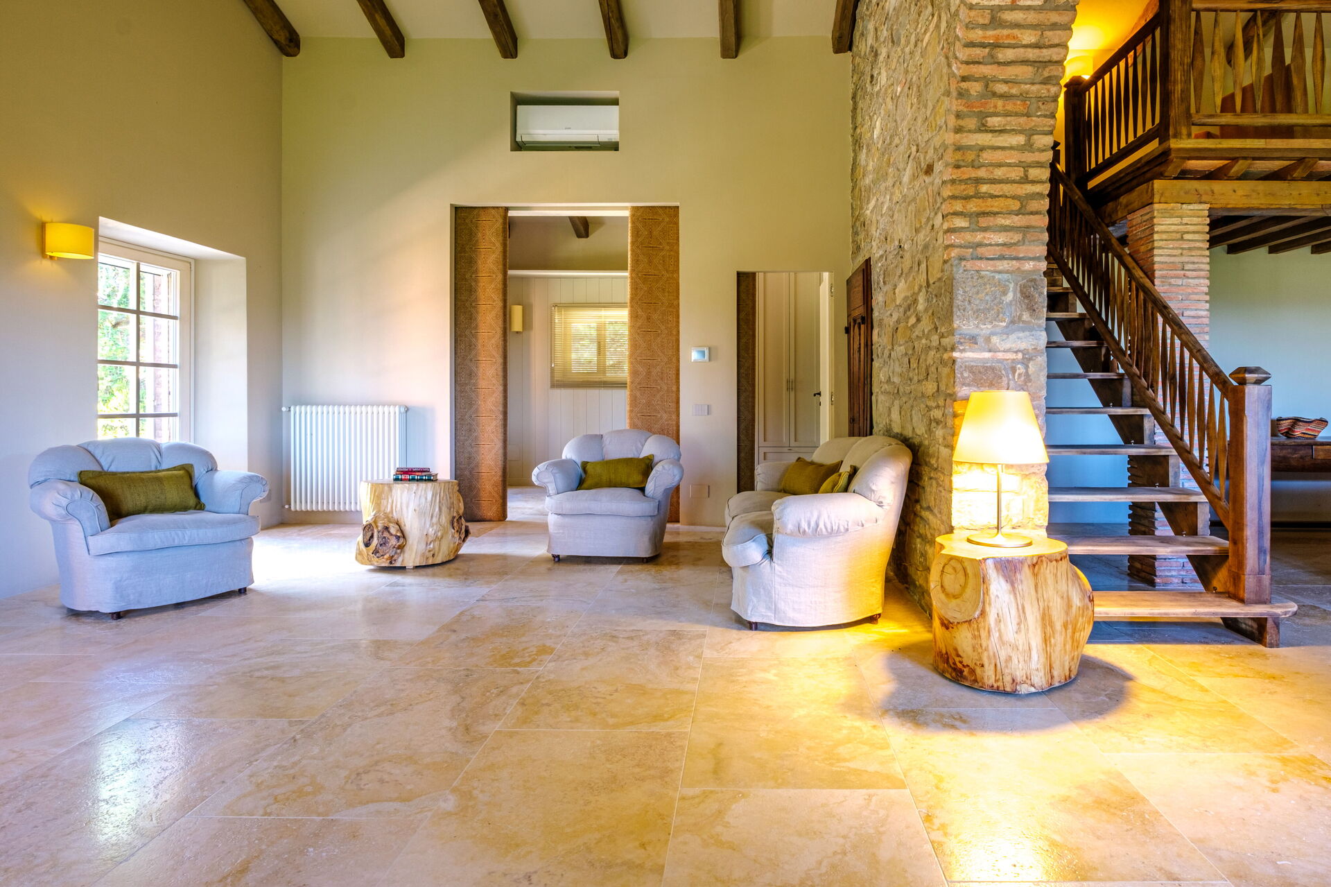 Im Obergeschoss der Villa befinden sich Räume, die leer bleiben und während der Mietsaison nicht zugänglich sind.