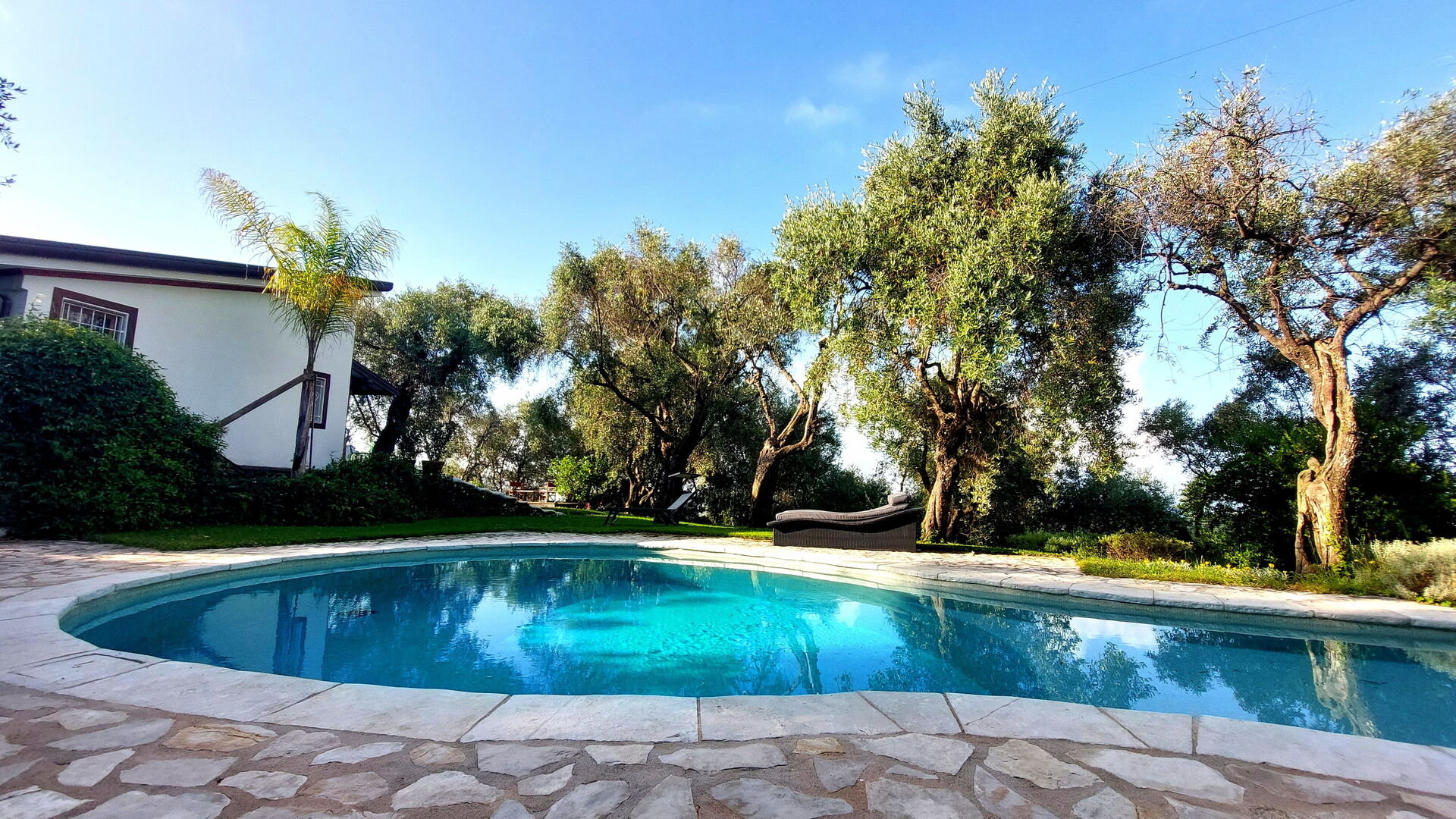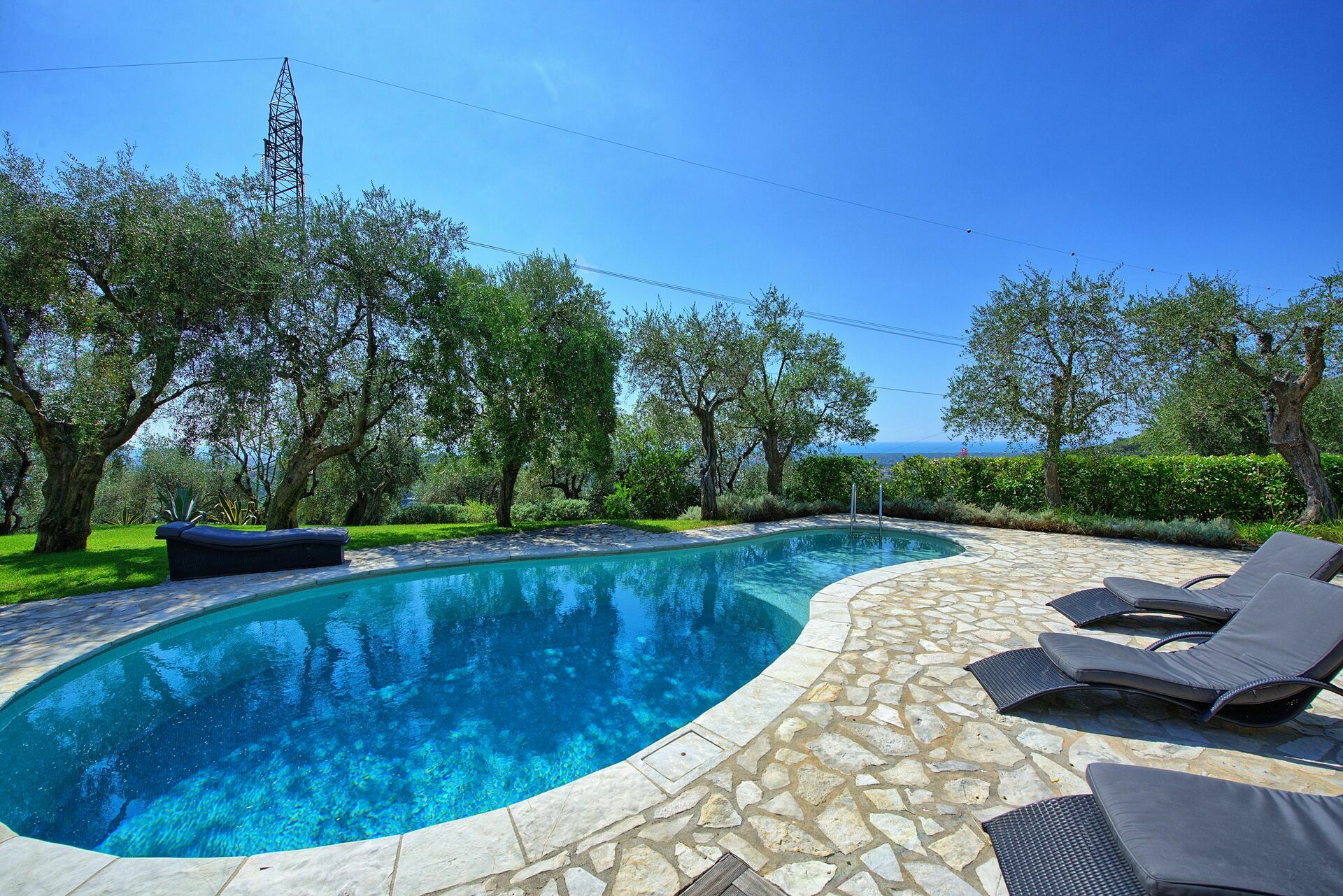 [English translation] very nice situated villa on hill with olive grove and fantastic views. Lovely pool and beautiful garden.