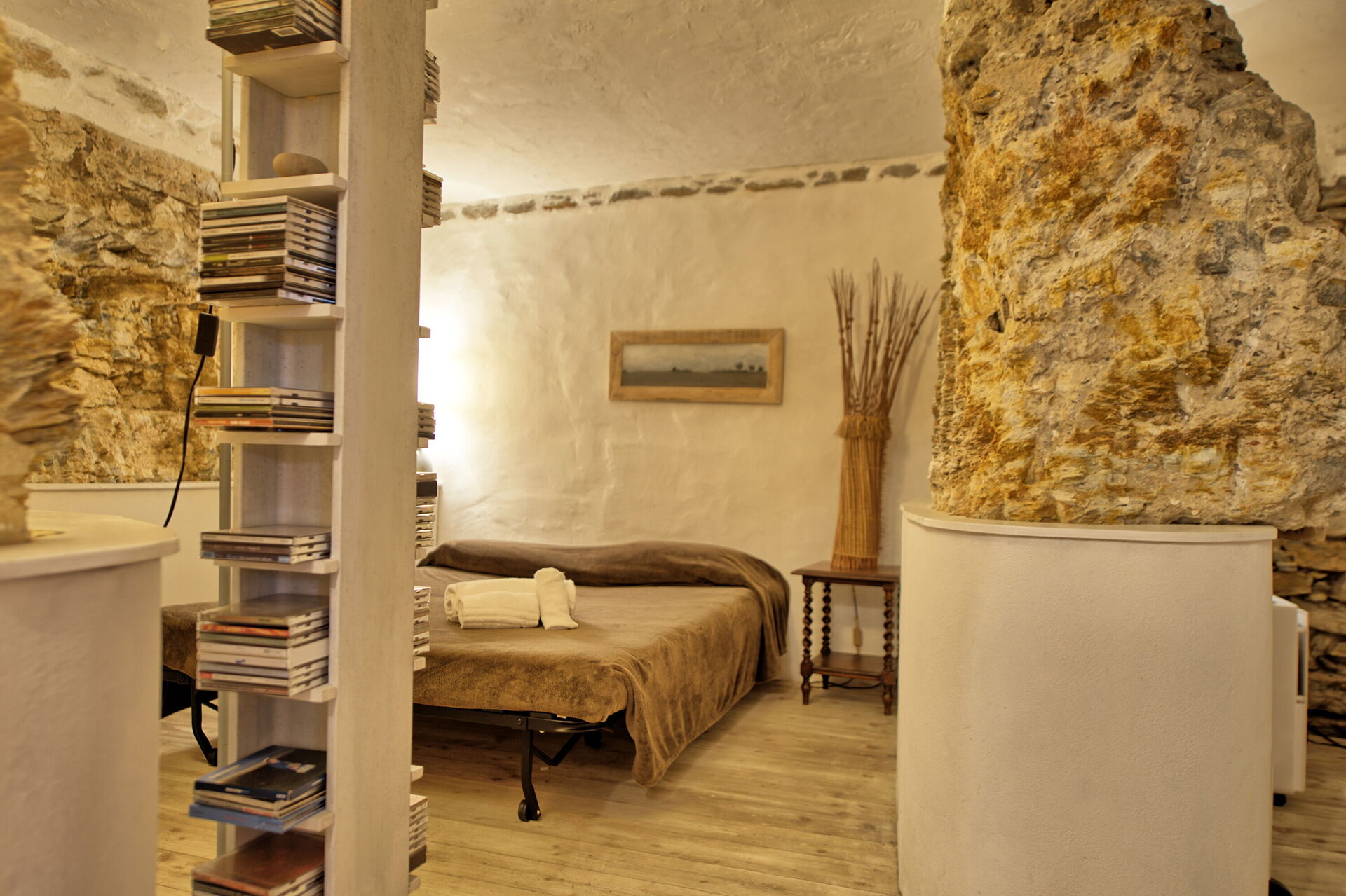 Kellergeschoss: Große ausgestattete Küche (Ofen, Gefrierschrank, Spülmaschine, Mikrowelle, Toaster) mit Kamin und Essbereich (TV-sat.), Doppelzimmer mit Klimaanlage (warme und kalte Luft) und privatem Bad mit Dusche, Schlafzimmer mit Doppelbettcouch in Stein gebaut (nur für Kinder geeignet.)