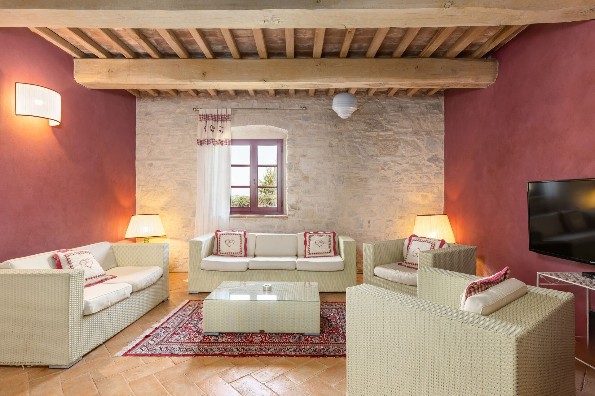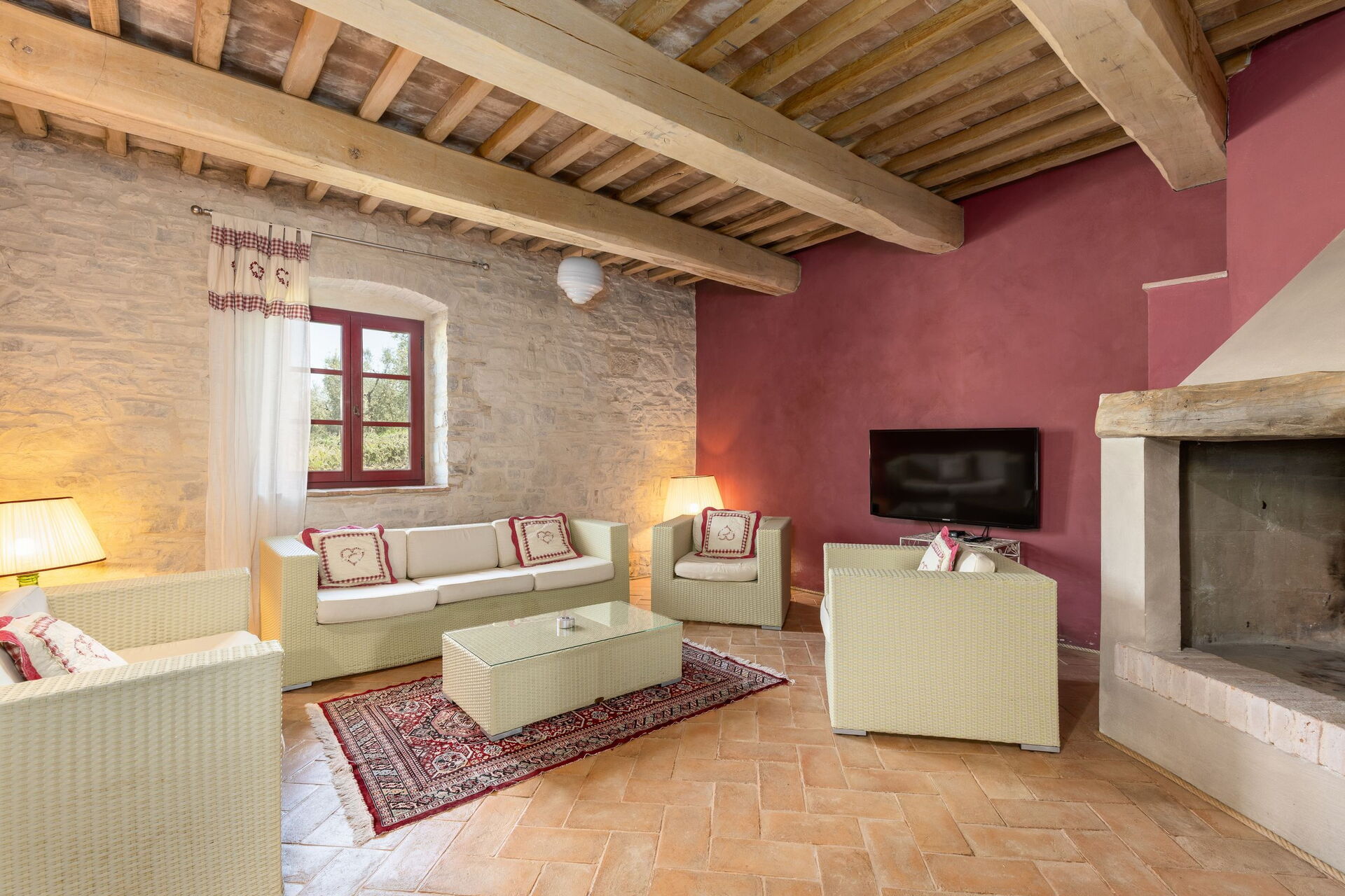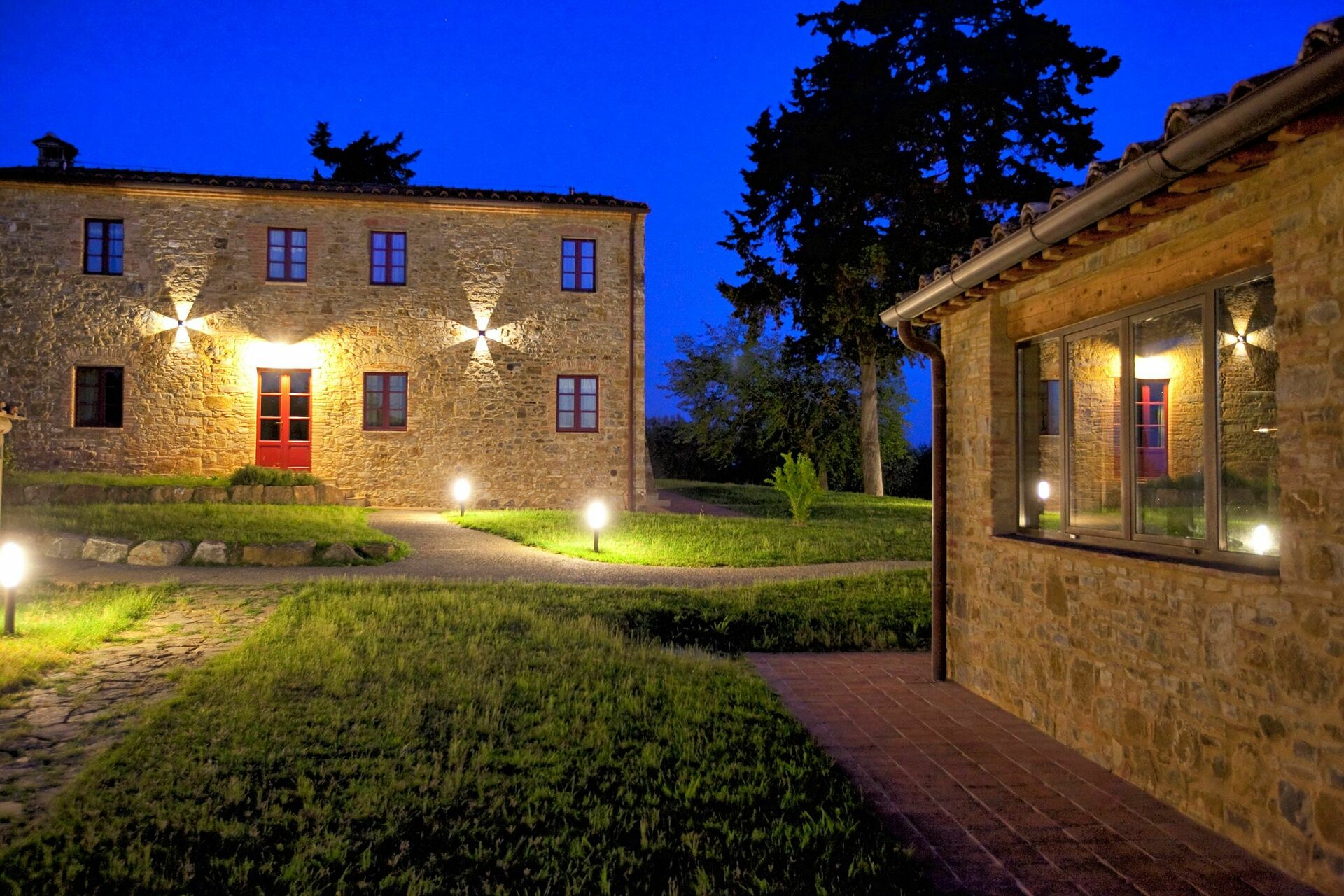 Die Villa bietet jeden Komfort und besteht aus dem Haupthaus sowie einer Dependance, die insgesamt bis zu 12 Personen beherbergen kann. Das Anwesen ist von mehreren Hektar landwirtschaftlicher Fläche umgeben, die mit Weinreben und Olivenhainen bepflanzt sind. Die Besitzer produzieren ihren eigenen Wein und Olivenöl, und den Gästen wird eine Verkostung angeboten.