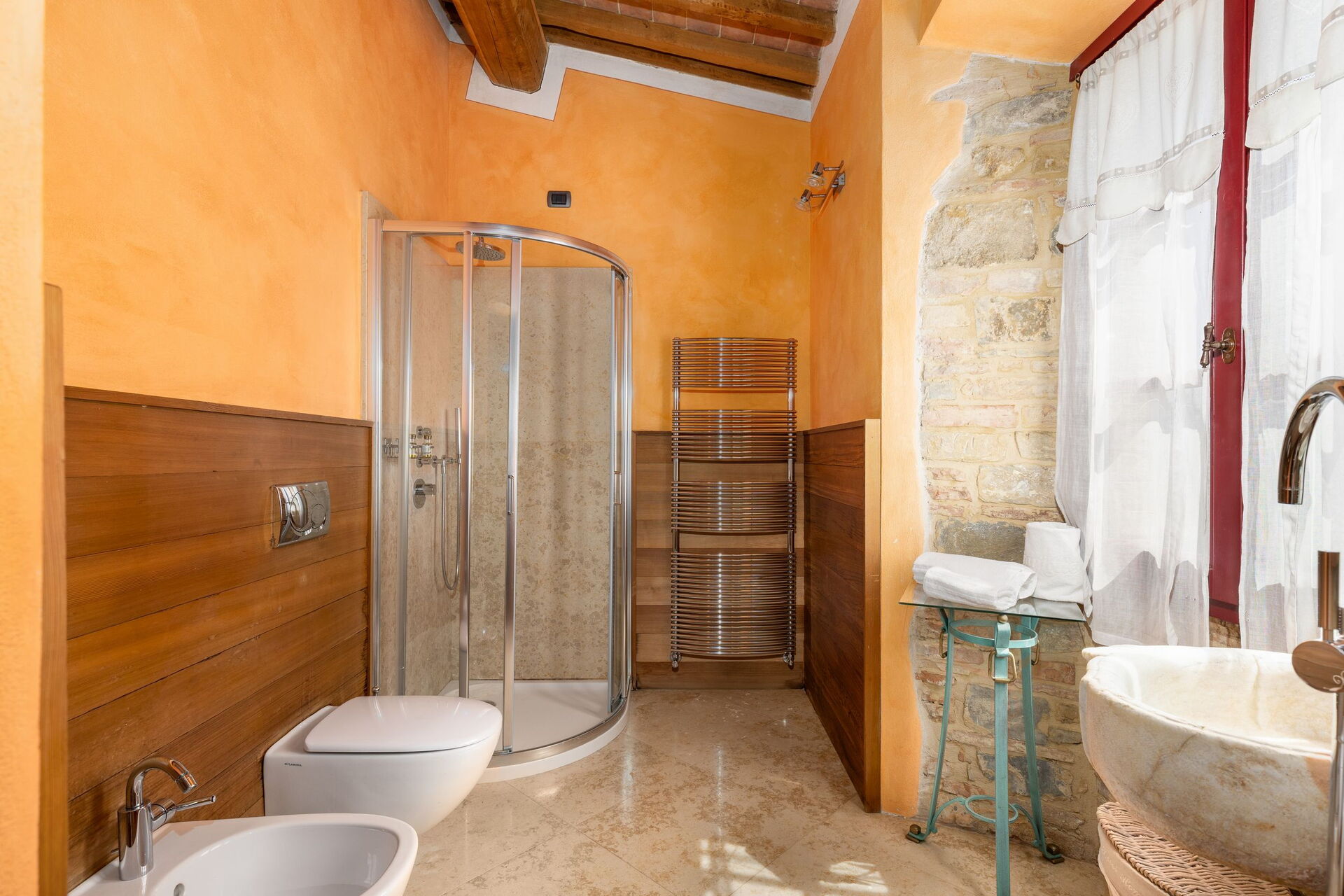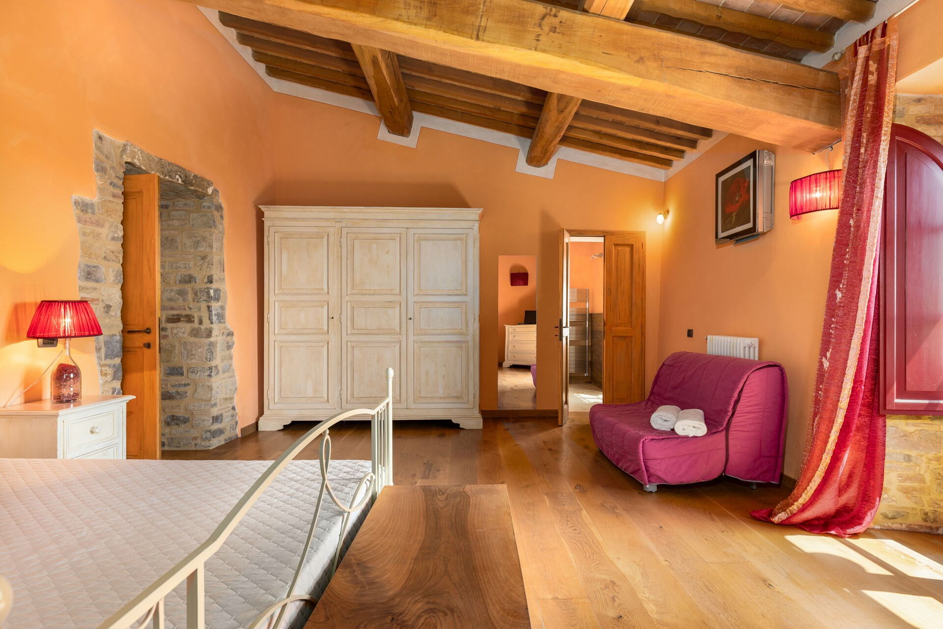 Magnificent place, magnificent host. The pool is amazing with a spectacular view. We cooked for ourselves every night and enjoyed long meals with wine from their own vineyard at the outdoor dining table. Very roomy, clean, and well-appointed. If you are ready to be Under the Tuscan Sun in real style, this is the place!